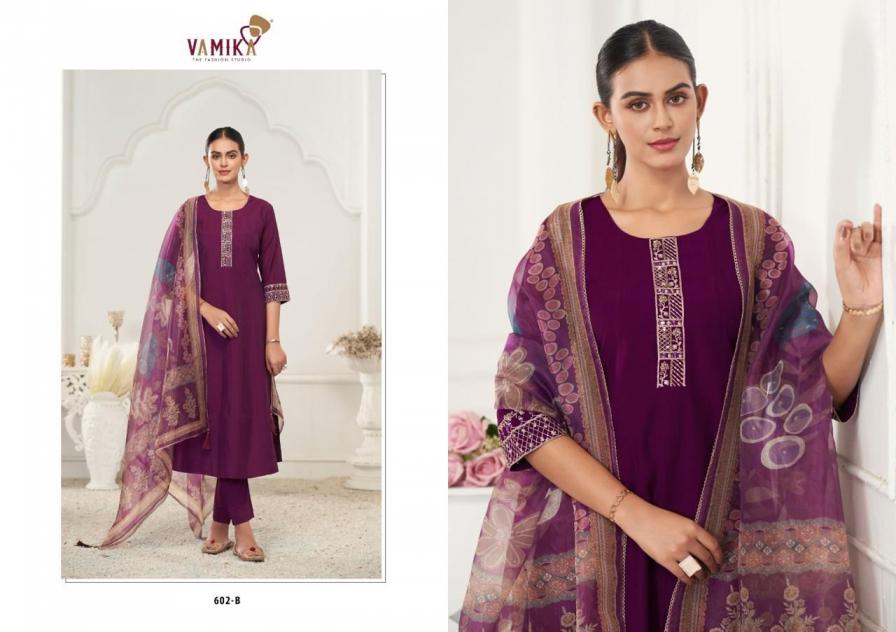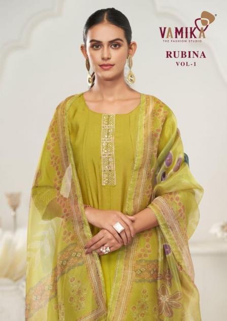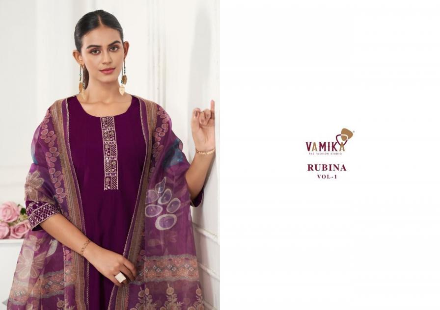 Looking for RUBINA VOL 1 BY VAMIKA READYMADE VISCOSE ROMAN SILK SUITS Full Catalouge at Best Price? Buy Now RUBINA VOL 1 BY VAMIKA READYMADE VISCOSE ROMAN SILK SUITS at Wholesale Rate of Rs 4780 with Total 4 Pcs from authroized dealer and supplier of Vamika Brand. Cost of Each piece is just only Rs 1195 which is very low and affordable price to resale the product in your retail store. rrgandhi is Surat based Wholesale Supplier & Dealer of Vamika Brand. Click on Brand name to Know more about Brand's products.