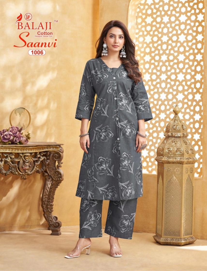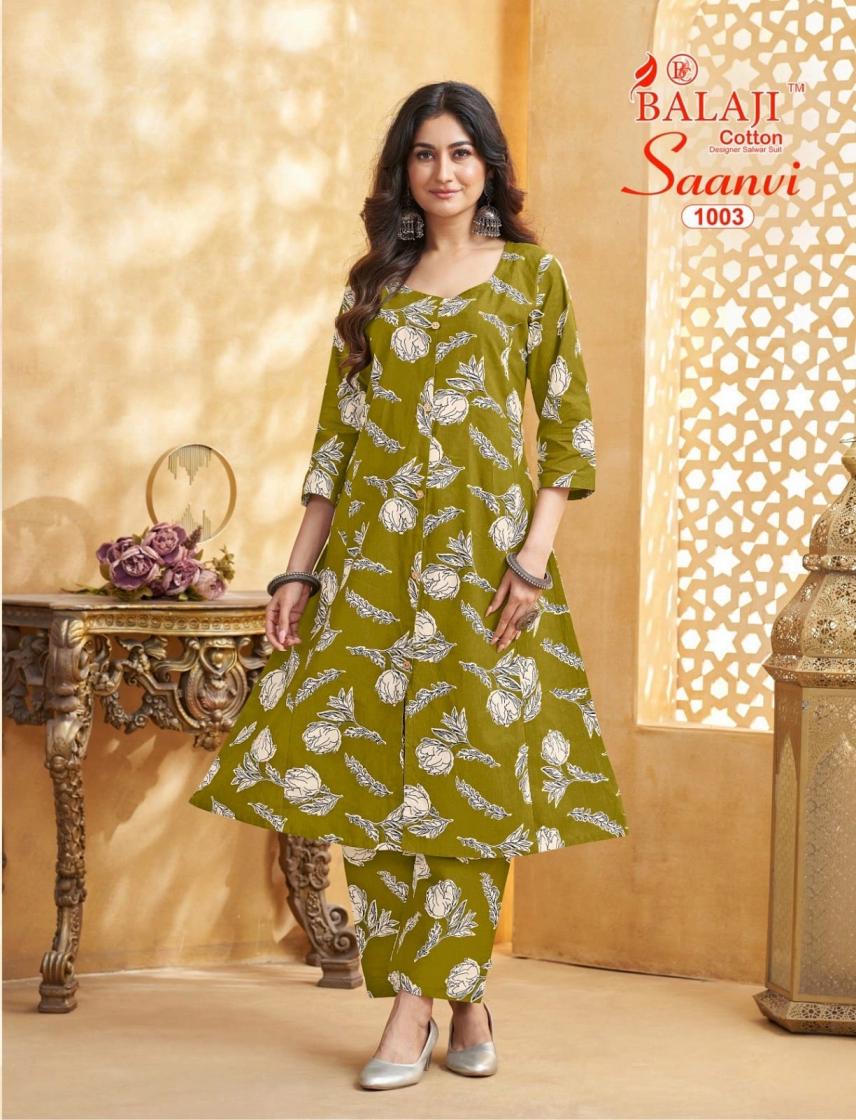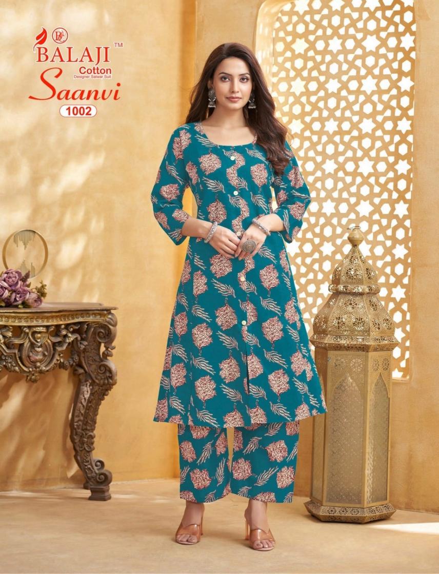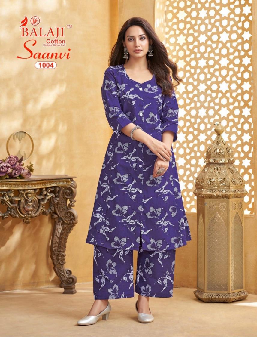 Looking for SAANVI BY BALAJI COTTON READYMADE A-LINE COTTON CO-ORD SETS Full Catalouge at Best Price? Buy Now SAANVI BY BALAJI COTTON READYMADE A-LINE COTTON CO-ORD SETS at Wholesale Rate of Rs 3400 with Total 8 Pcs from authroized dealer and supplier of Balaji Cotton Brand. Cost of Each piece is just only Rs 425 which is very low and affordable price to resale the product in your retail store. rrgandhi is Surat based Wholesale Supplier & Dealer of Balaji Cotton Brand. Click on Brand name to Know more about Brand's products.