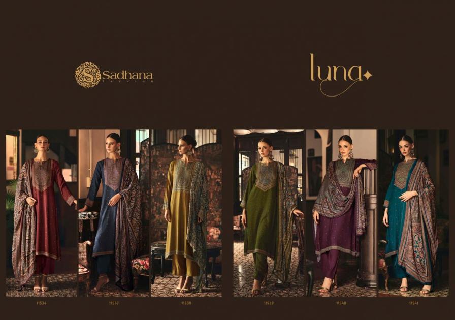 Looking for SADHANA FASHION LUNA VISCOSE PASHMINA WINTER LADIES SUIT Full Catalouge at Best Price? Buy Now SADHANA FASHION LUNA VISCOSE PASHMINA WINTER LADIES SUIT at Wholesale Rate of Rs 7950 with Total 6 Pcs from authroized dealer and supplier of Sadhana Fashion Brand. Cost of Each piece is just only Rs 1325 which is very low and affordable price to resale the product in your retail store. rrgandhi is Surat based Wholesale Supplier & Dealer of Sadhana Fashion Brand. Click on Brand name to Know more about Brand's products.