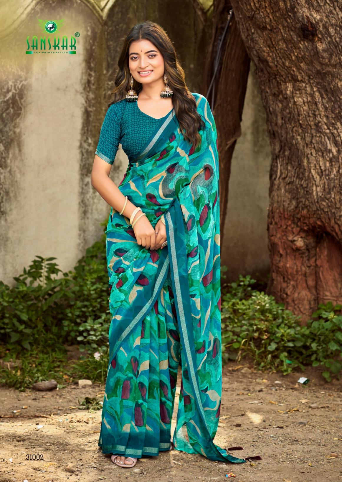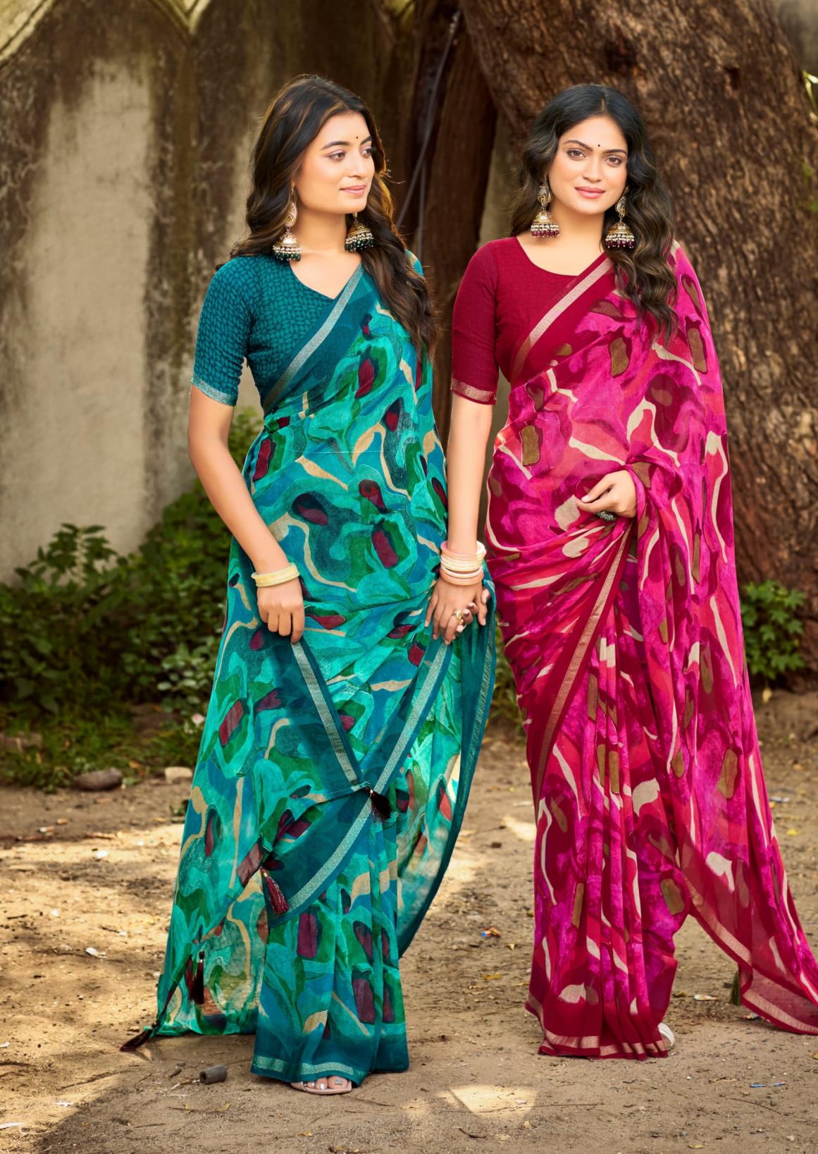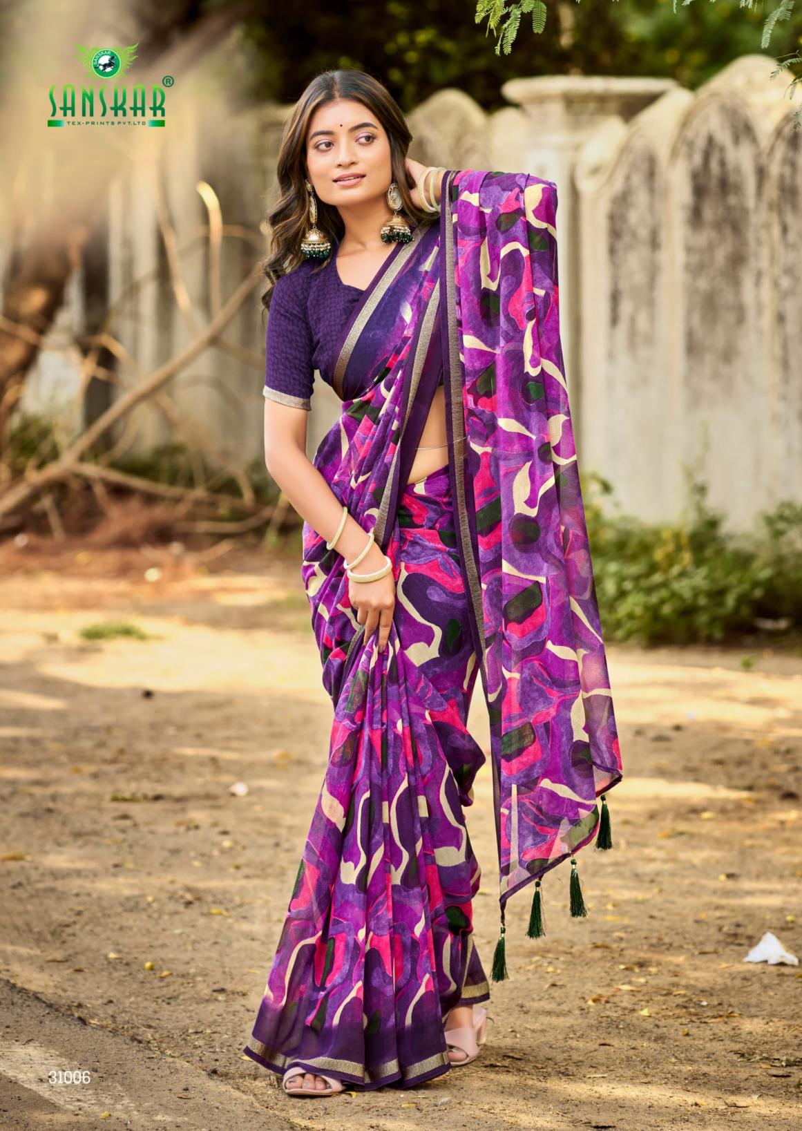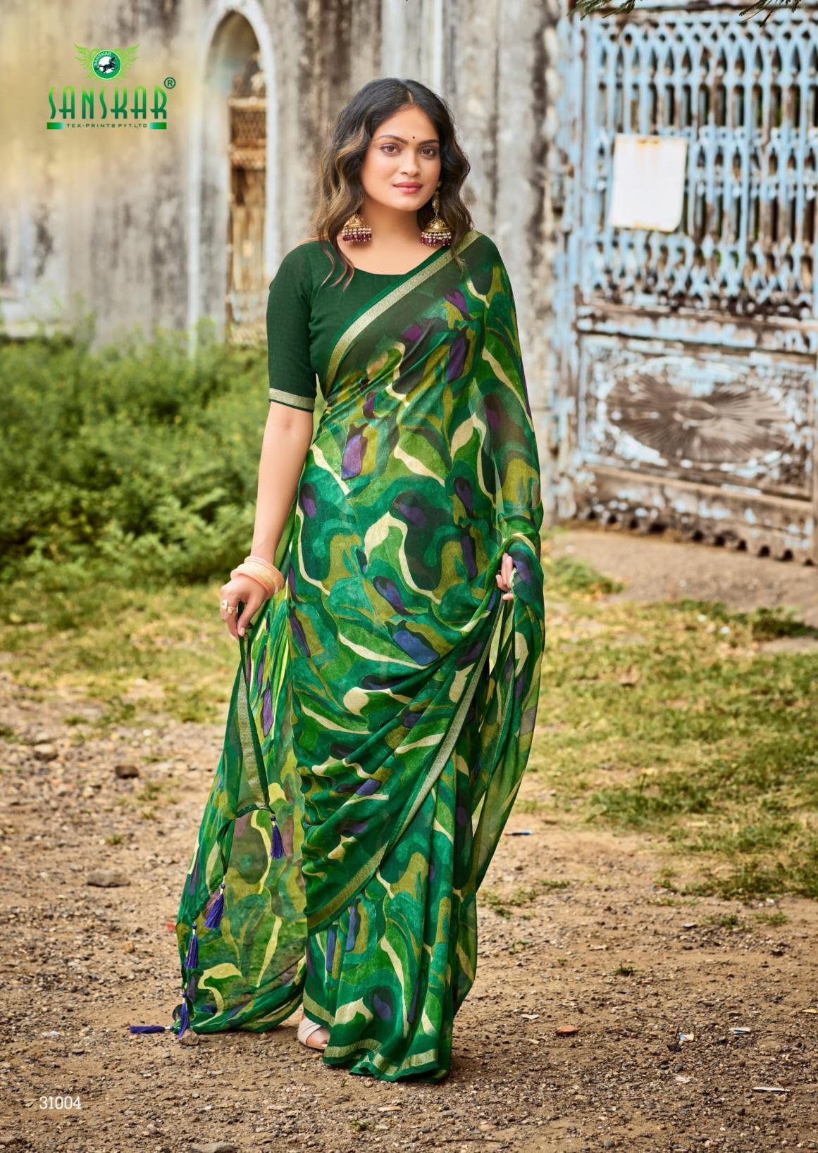 Looking for SAGARMALA BY SANSKAR TEX PRINTS BEMBER GEORGETTE BEST SAREES Full Catalouge at Best Price? Buy Now SAGARMALA BY SANSKAR TEX PRINTS BEMBER GEORGETTE BEST SAREES at Wholesale Rate of Rs 4050 with Total 6 Pcs from authroized dealer and supplier of Sanskar Tex Prints Brand. Cost of Each piece is just only Rs 675 which is very low and affordable price to resale the product in your retail store. rrgandhi is Surat based Wholesale Supplier & Dealer of Sanskar Tex Prints Brand. Click on Brand name to Know more about Brand's products.