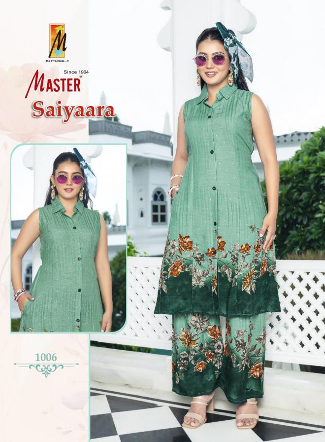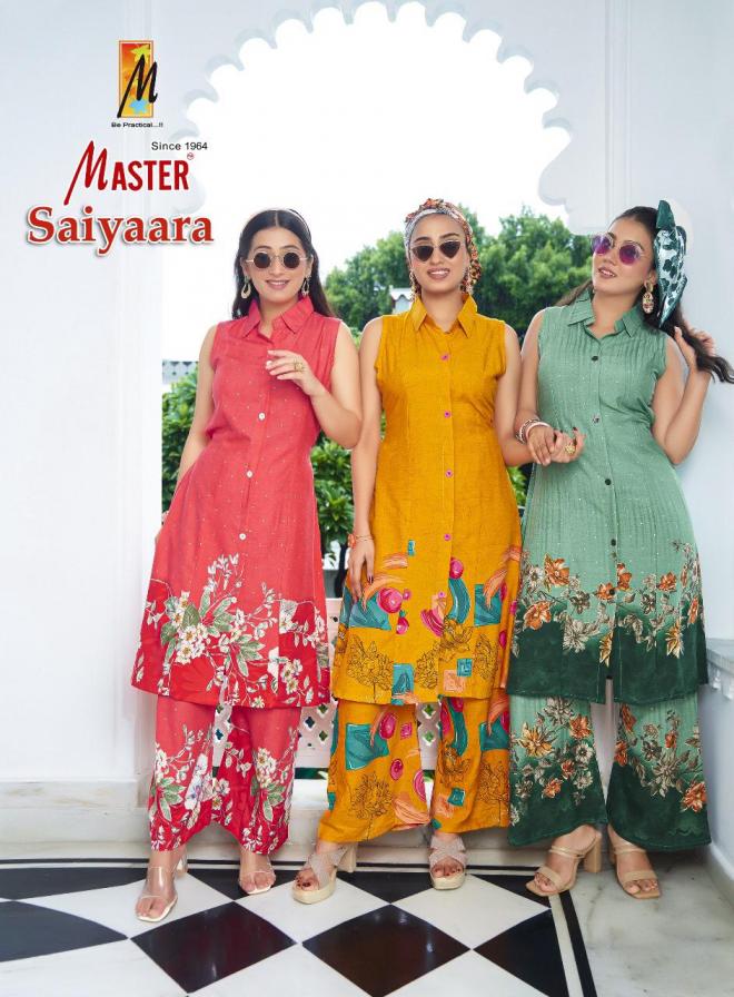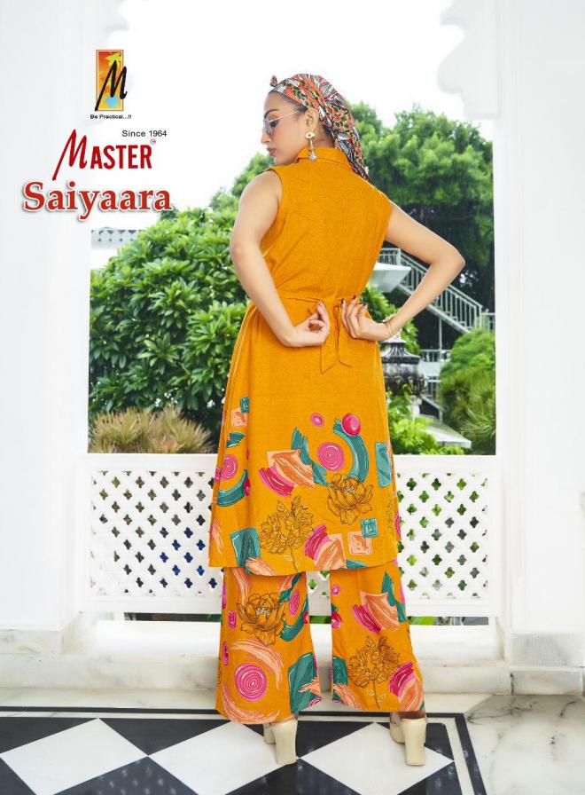 Looking for SAIYAARA BY MASTER READYMADE AMAZING RAYON CO-ORD SET Full Catalouge at Best Price? Buy Now SAIYAARA BY MASTER READYMADE AMAZING RAYON CO-ORD SET at Wholesale Rate of Rs 4120 with Total 8 Pcs from authroized dealer and supplier of Master Kurti Brand. Cost of Each piece is just only Rs 515 which is very low and affordable price to resale the product in your retail store. rrgandhi is Surat based Wholesale Supplier & Dealer of Master Kurti Brand. Click on Brand name to Know more about Brand's products.