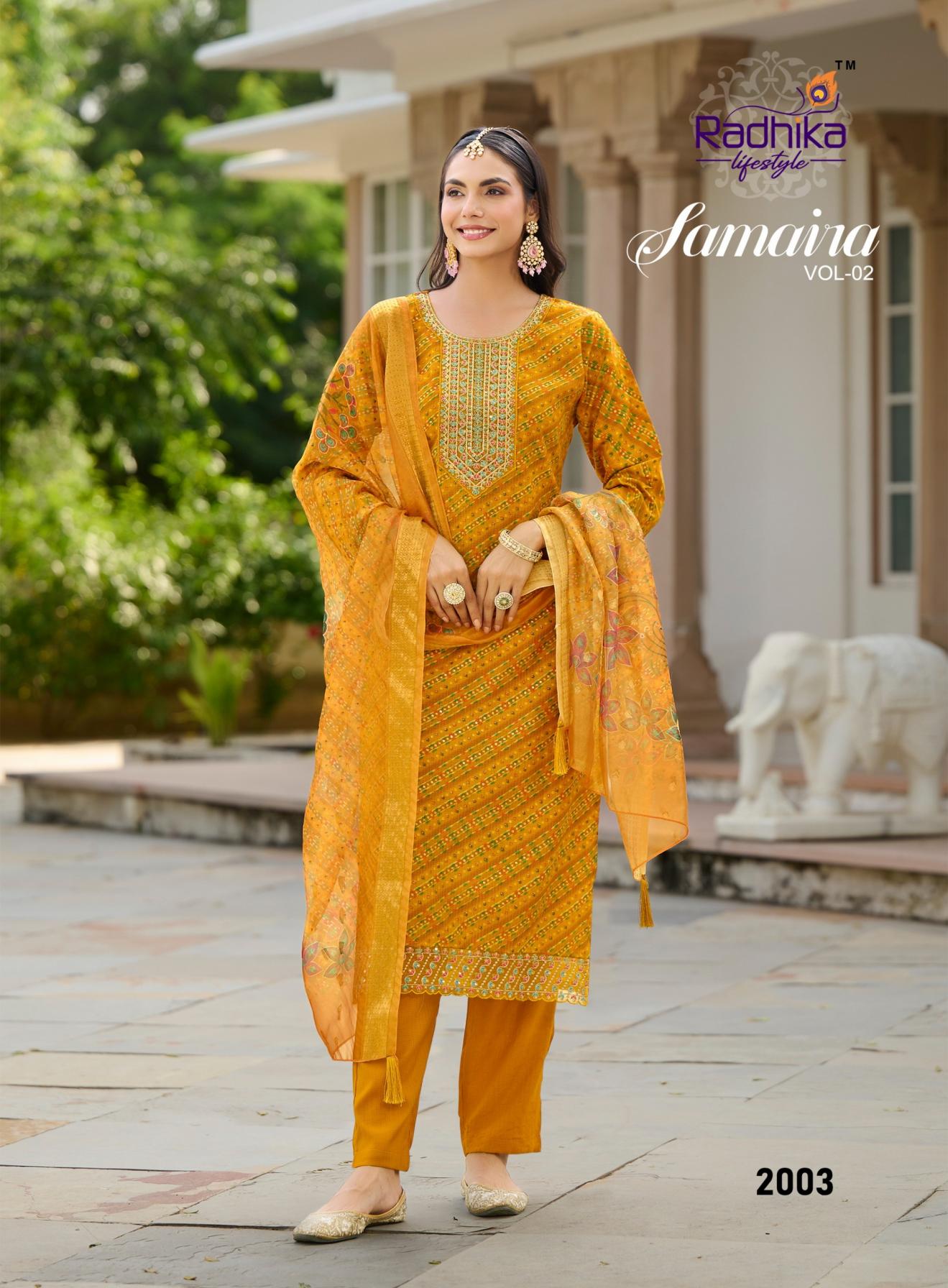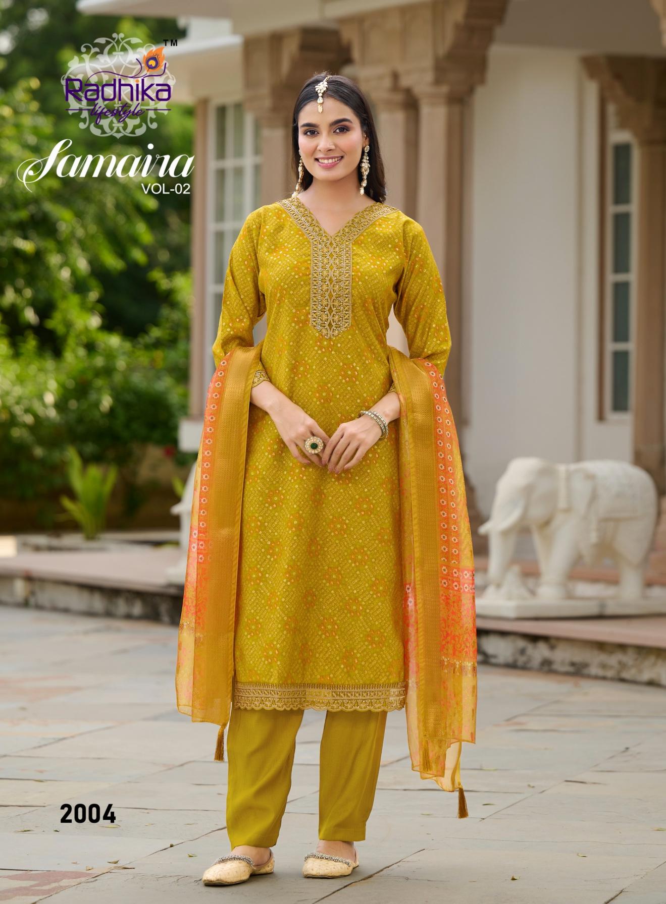 Looking for SAMAIRA VOL 2 BY RADHIKA LIFESTYLE BERLIN FOIL PRINT FULL STITCH PLUS SIZE SUITS Full Catalouge at Best Price? Buy Now SAMAIRA VOL 2 BY RADHIKA LIFESTYLE BERLIN FOIL PRINT FULL STITCH PLUS SIZE SUITS at Wholesale Rate of Rs 4500 with Total 6 Pcs from authroized dealer and supplier of Radhika Lifestyle Brand. Cost of Each piece is just only Rs 750 which is very low and affordable price to resale the product in your retail store. rrgandhi is Surat based Wholesale Supplier & Dealer of Radhika Lifestyle Brand. Click on Brand name to Know more about Brand's products.