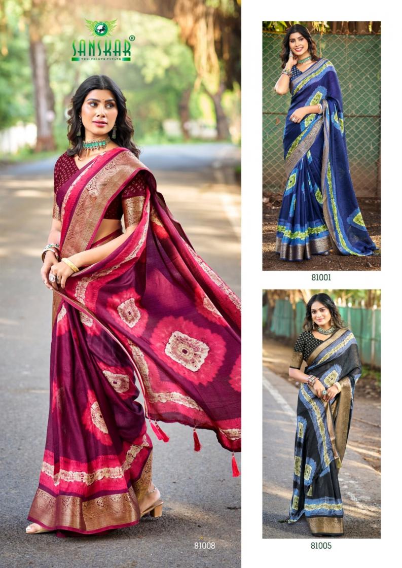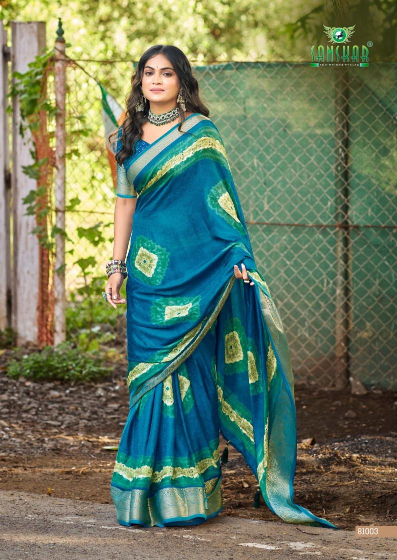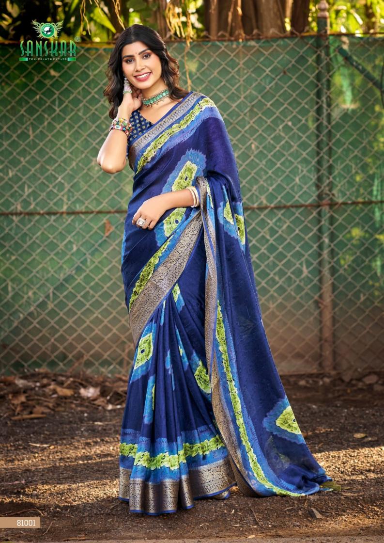 Looking for SANSKAR TEX PRINTS CARBAAN UNIQUE MASSMALO FANCY SAREES Full Catalouge at Best Price? Buy Now SANSKAR TEX PRINTS CARBAAN UNIQUE MASSMALO FANCY SAREES at Wholesale Rate of Rs 6160 with Total 8 Pcs from authroized dealer and supplier of Sanskar Tex Prints Brand. Cost of Each piece is just only Rs 770 which is very low and affordable price to resale the product in your retail store. rrgandhi is Surat based Wholesale Supplier & Dealer of Sanskar Tex Prints Brand. Click on Brand name to Know more about Brand's products.