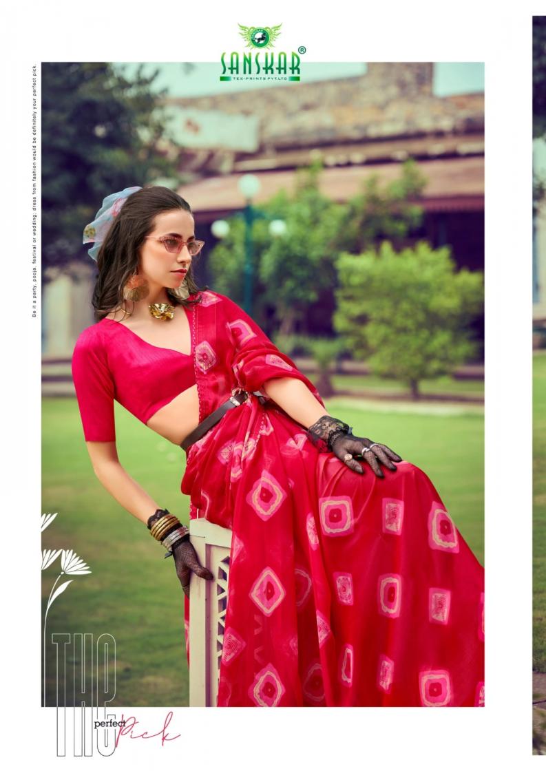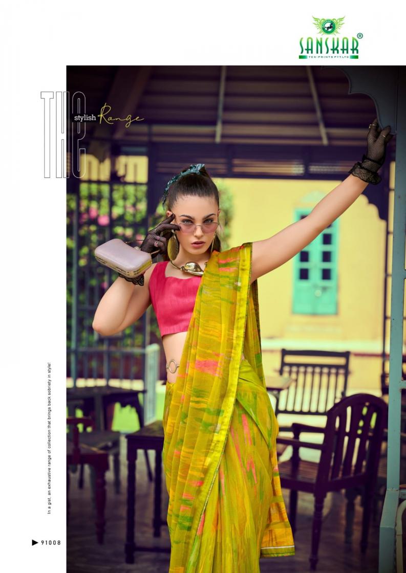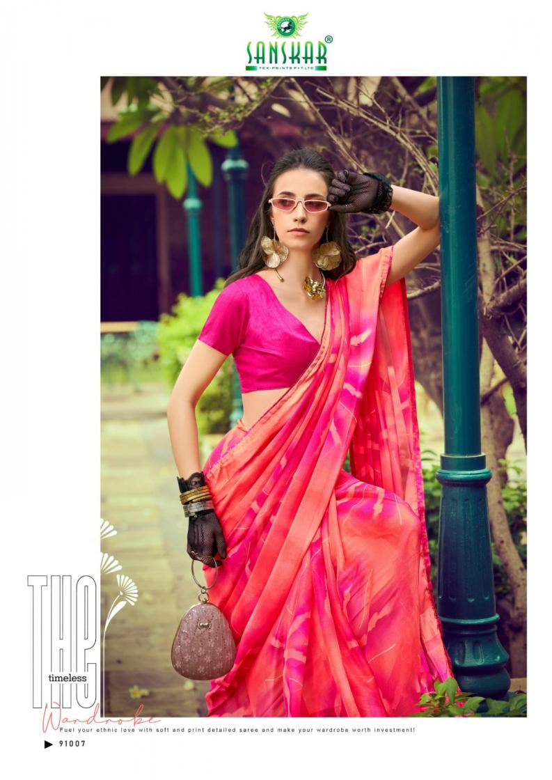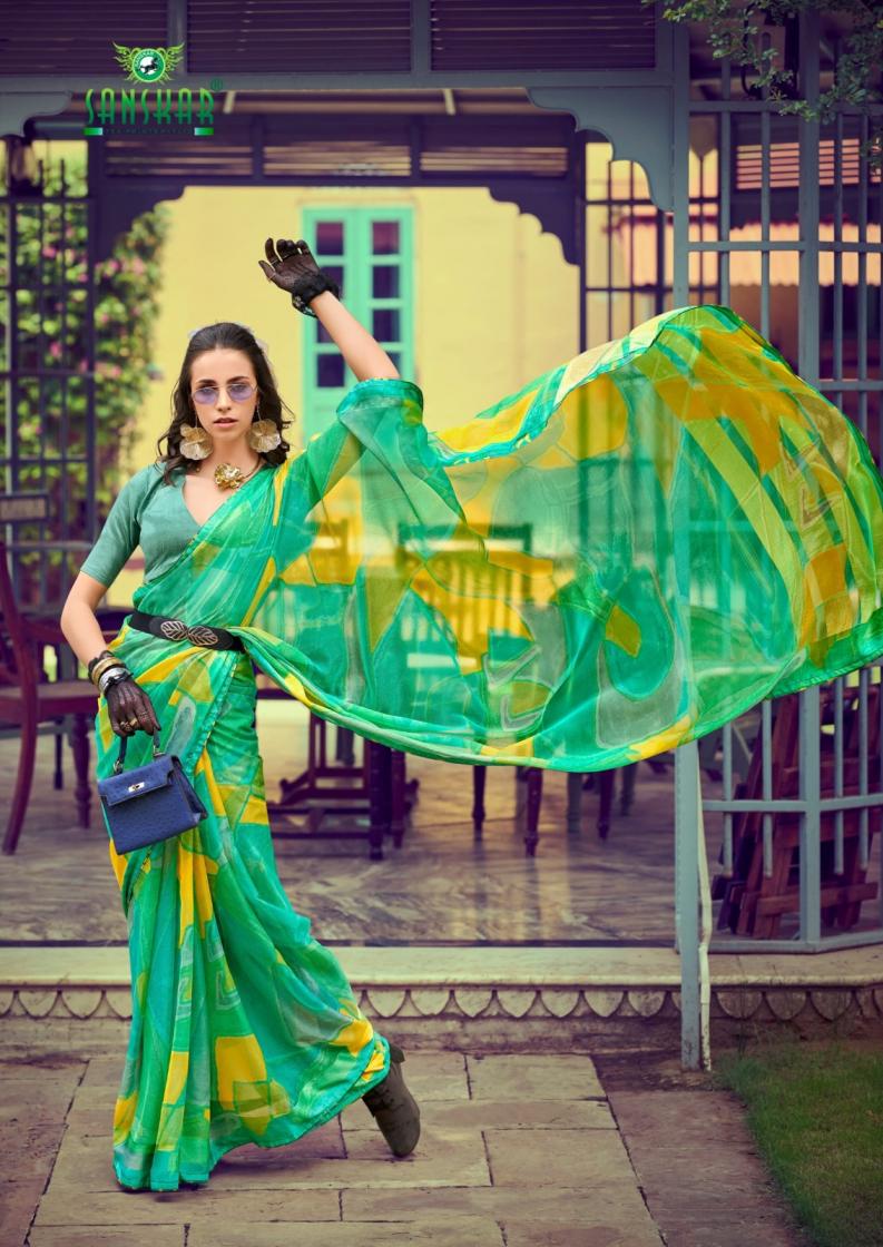 Looking for SANSKAR TEX PRINTS VARDA SHOP TRENDY GEORGETTE CHIFFON SAREES Full Catalouge at Best Price? Buy Now SANSKAR TEX PRINTS VARDA SHOP TRENDY GEORGETTE CHIFFON SAREES at Wholesale Rate of Rs 4280 with Total 8 Pcs from authroized dealer and supplier of Sanskar Tex Prints Brand. Cost of Each piece is just only Rs 535 which is very low and affordable price to resale the product in your retail store. rrgandhi is Surat based Wholesale Supplier & Dealer of Sanskar Tex Prints Brand. Click on Brand name to Know more about Brand's products.