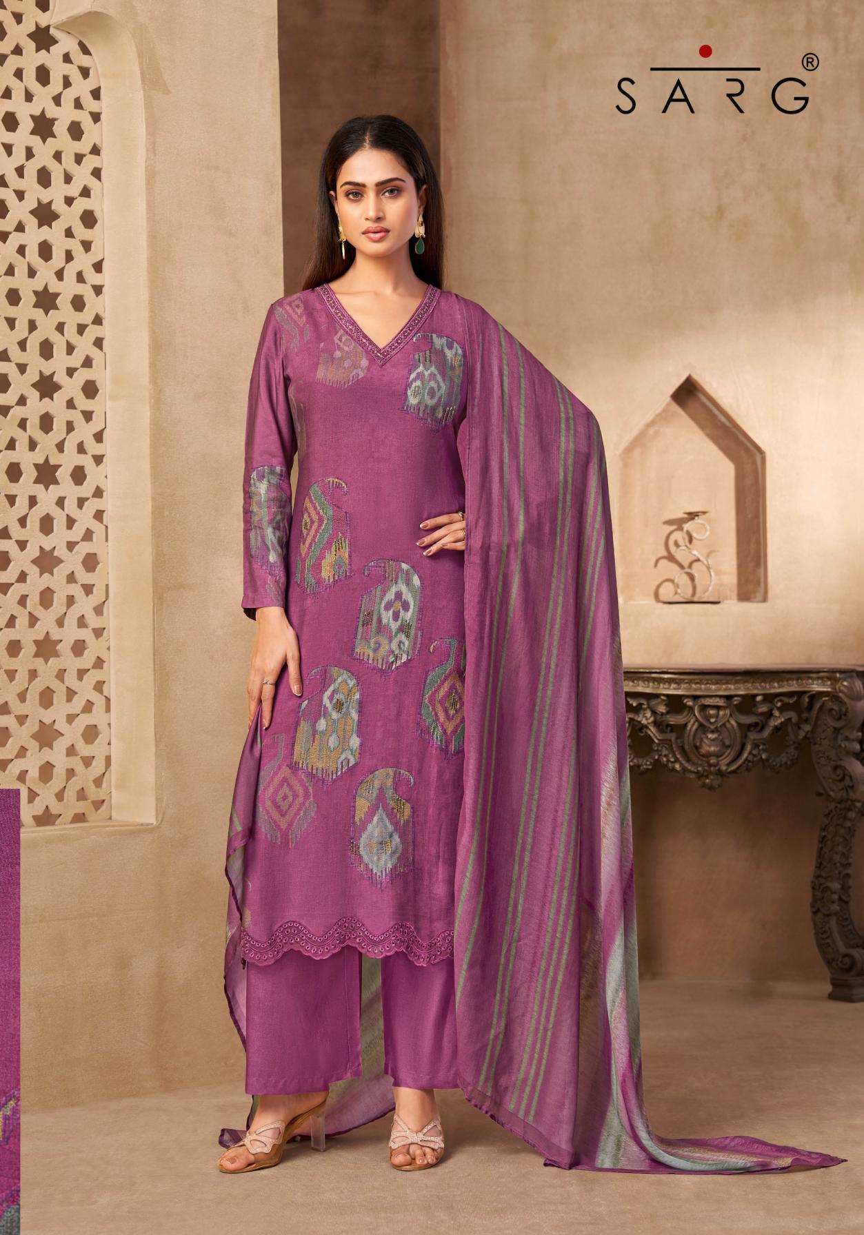 Looking for SARG SAHIBA RANG SAAJ HIT DESIGN MUSLIN SILK SUITS ONLINE Full Catalouge at Best Price? Buy Now SARG SAHIBA RANG SAAJ HIT DESIGN MUSLIN SILK SUITS ONLINE at Wholesale Rate of Rs 10170 with Total 6 Pcs from authroized dealer and supplier of Sahiba Brand. Cost of Each piece is just only Rs 1695 which is very low and affordable price to resale the product in your retail store. rrgandhi is Surat based Wholesale Supplier & Dealer of Sahiba Brand. Click on Brand name to Know more about Brand's products.