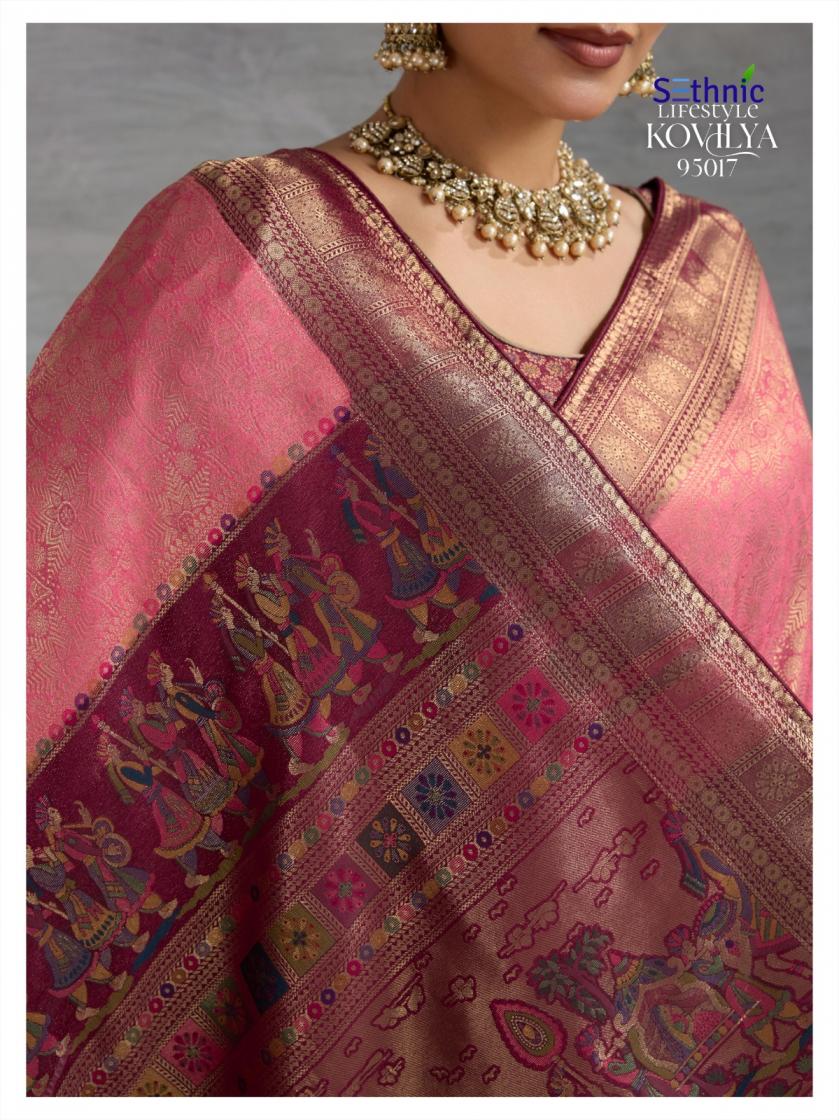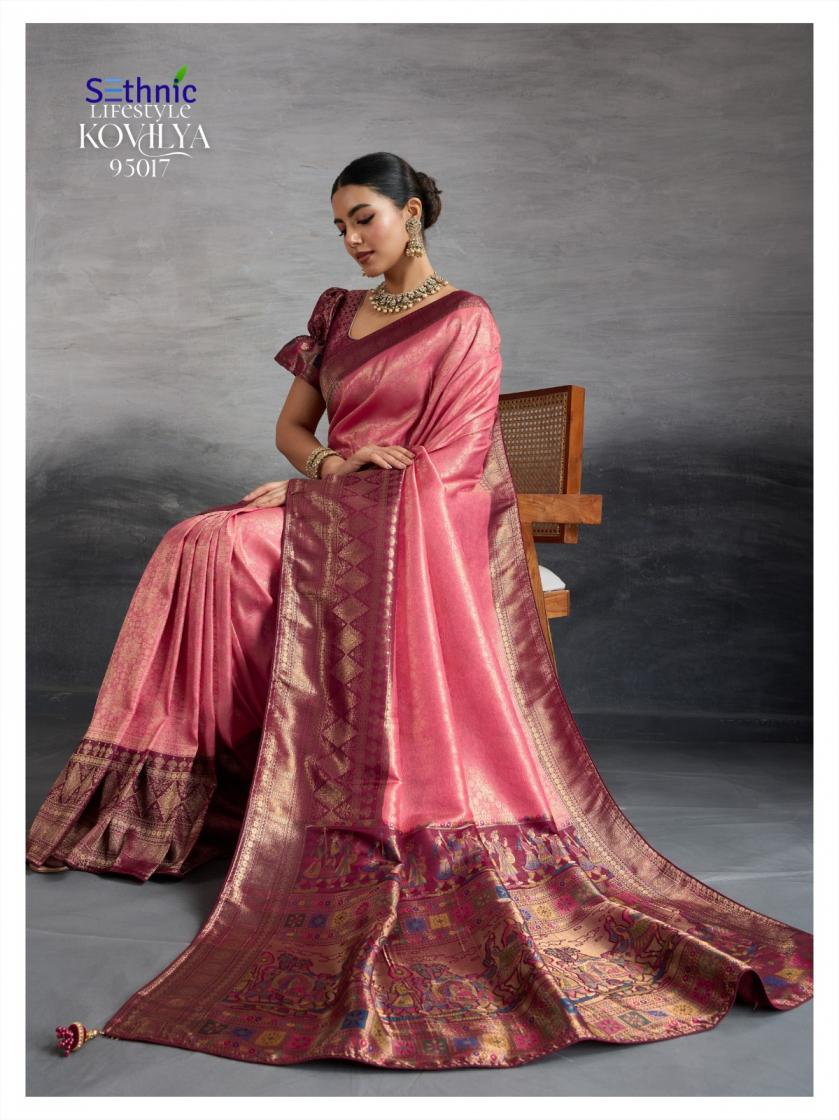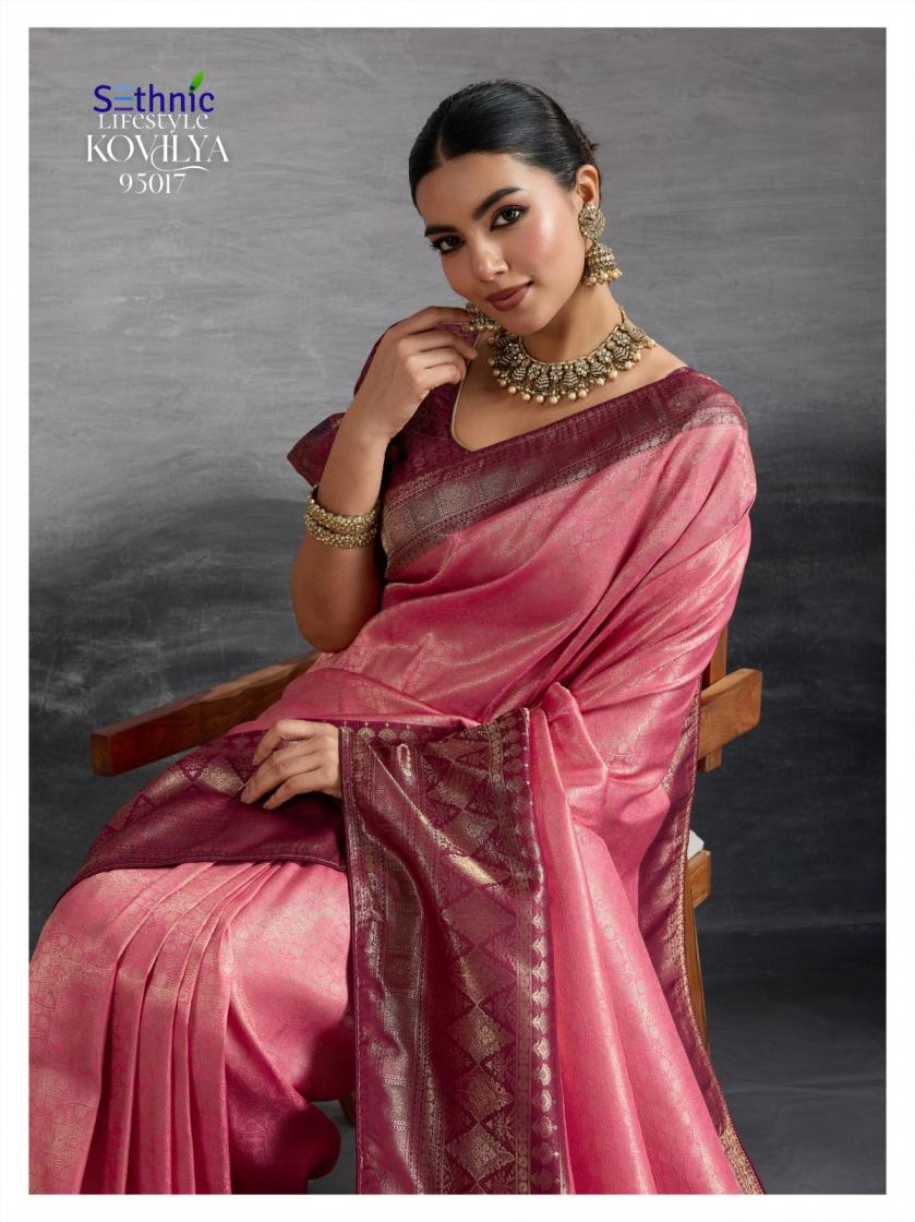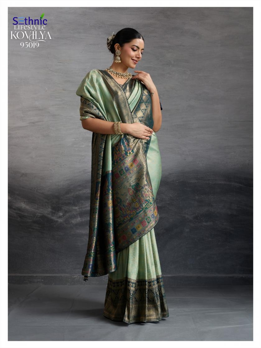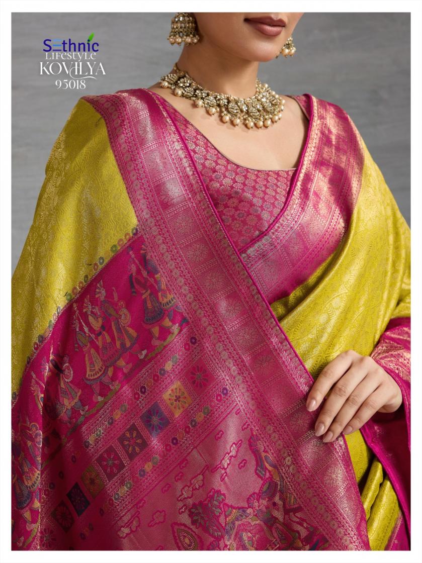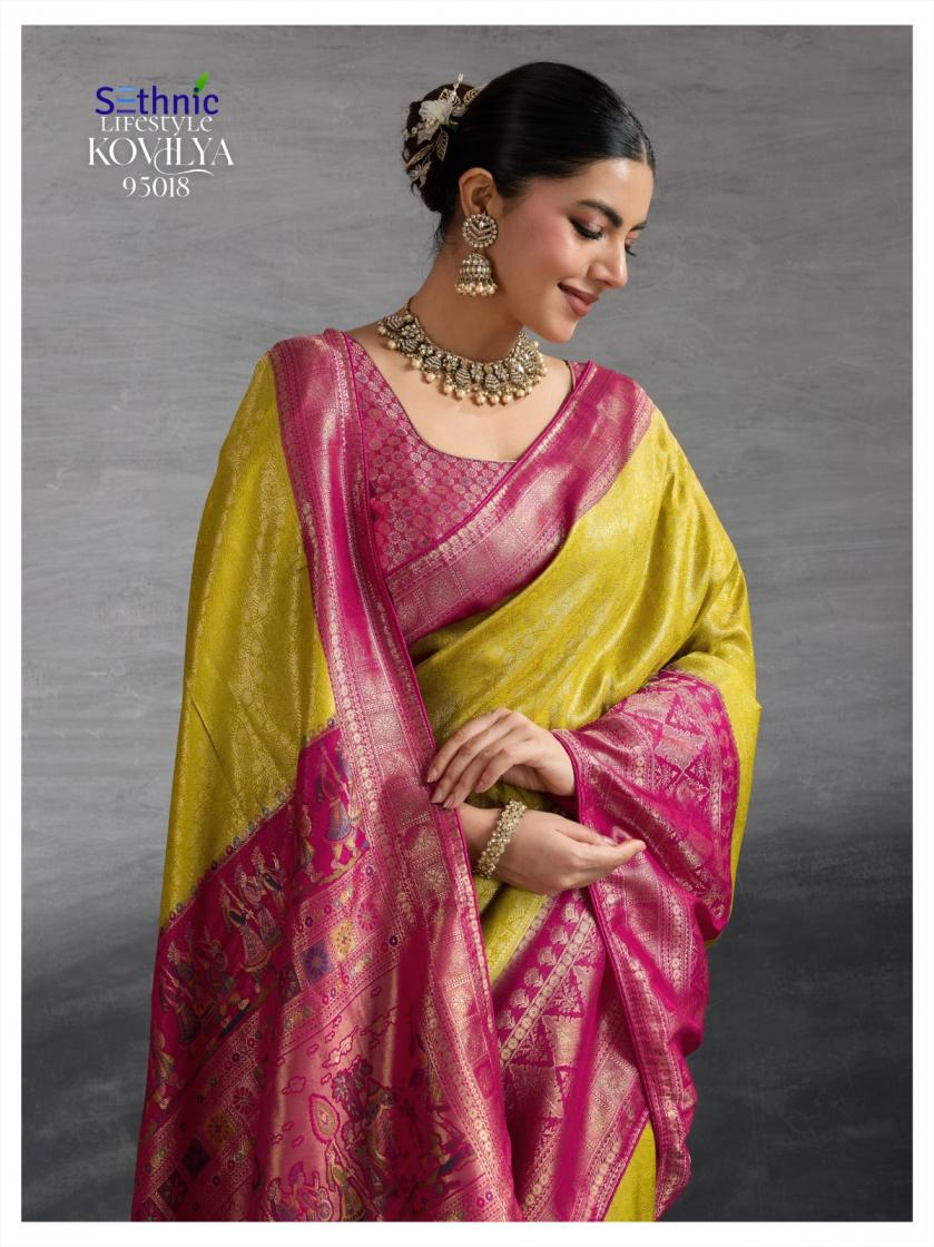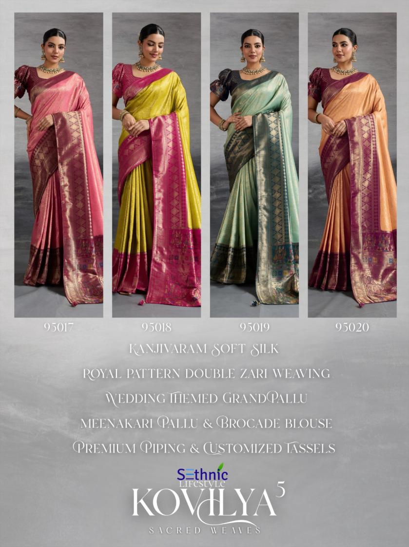 Looking for SETHNIC LIFESTYLE KOVILYA VOL 5 ELEGANCE KANJIVARAM SILK SAREE ONLINE Full Catalouge at Best Price? Buy Now SETHNIC LIFESTYLE KOVILYA VOL 5 ELEGANCE KANJIVARAM SILK SAREE ONLINE at Wholesale Rate of Rs 6380 with Total 4 Pcs from authroized dealer and supplier of Sethnic Lifestyle Brand. Cost of Each piece is just only Rs 1595 which is very low and affordable price to resale the product in your retail store. rrgandhi is Surat based Wholesale Supplier & Dealer of Sethnic Lifestyle Brand. Click on Brand name to Know more about Brand's products.