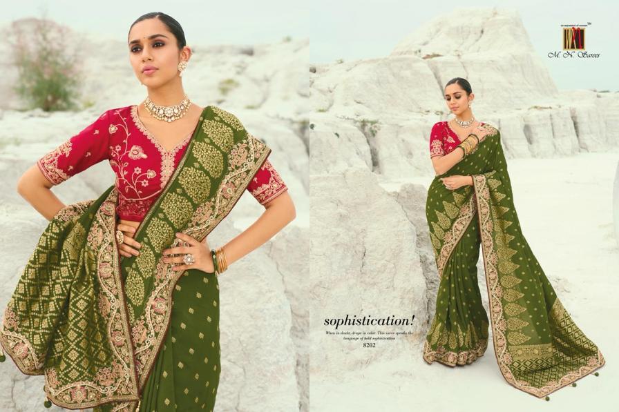 Looking for SHAHI POSHAK VOL 7 BY MN 8201-8208 PARTY WEAR VISCOSE SAREES Full Catalouge at Best Price? Buy Now SHAHI POSHAK VOL 7 BY MN 8201-8208 PARTY WEAR VISCOSE SAREES at Wholesale Rate of Rs 27192 with Total 8 Pcs from authroized dealer and supplier of M N SAREE Brand. Cost of Each piece is just only Rs 3399 which is very low and affordable price to resale the product in your retail store. rrgandhi is Surat based Wholesale Supplier & Dealer of M N SAREE Brand. Click on Brand name to Know more about Brand's products.