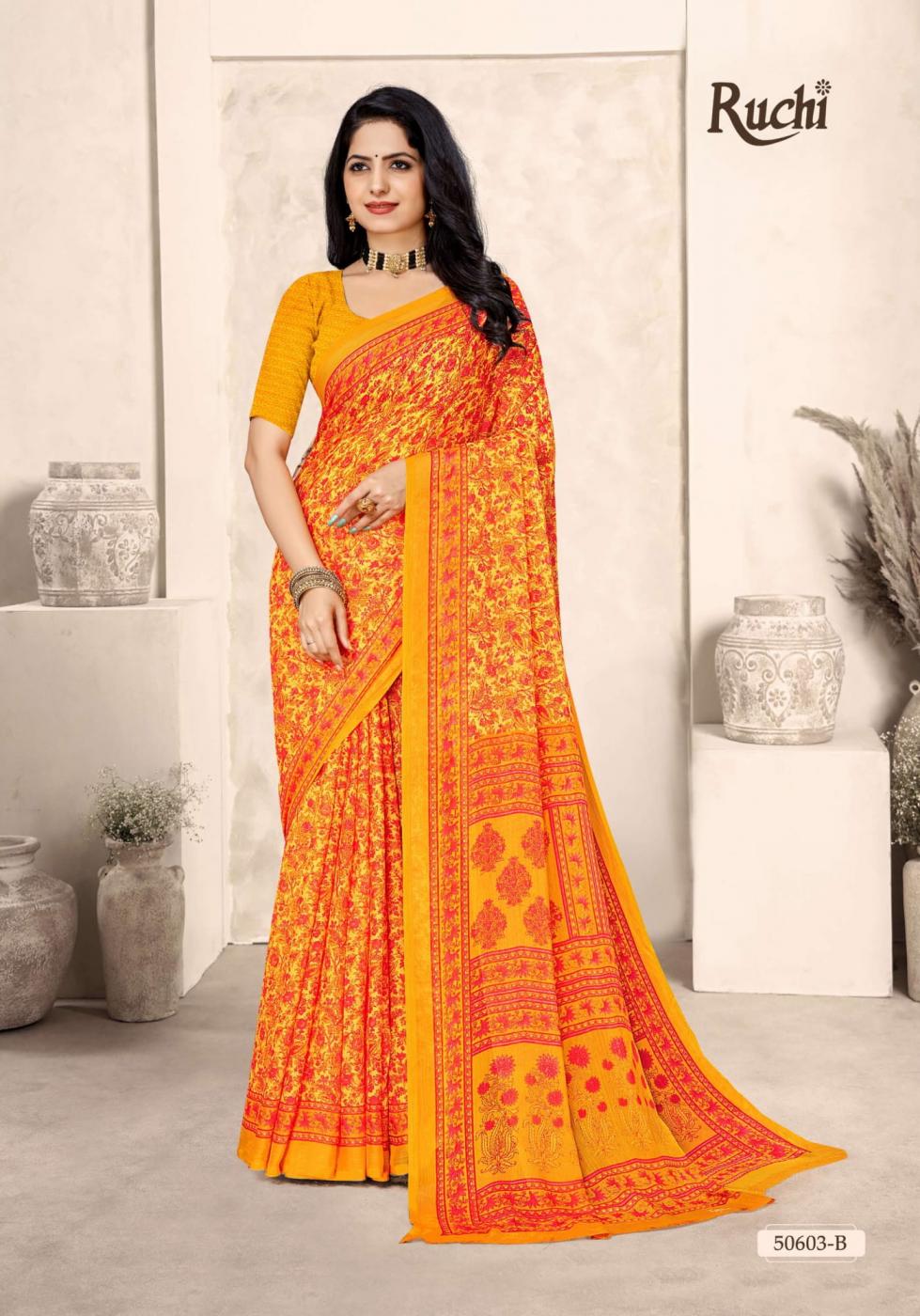Looking for STAR CHIFFON VOL 213 BY RUCHI FANCY SAREE ONLINE Full Catalouge at Best Price? Buy Now STAR CHIFFON VOL 213 BY RUCHI FANCY SAREE ONLINE at Wholesale Rate of Rs 5004 with Total 12 Pcs from authroized dealer and supplier of Ruchi Brand. Cost of Each piece is just only Rs 417 which is very low and affordable price to resale the product in your retail store. rrgandhi is Surat based Wholesale Supplier & Dealer of Ruchi Brand. Click on Brand name to Know more about Brand's products.