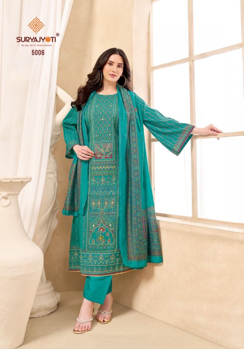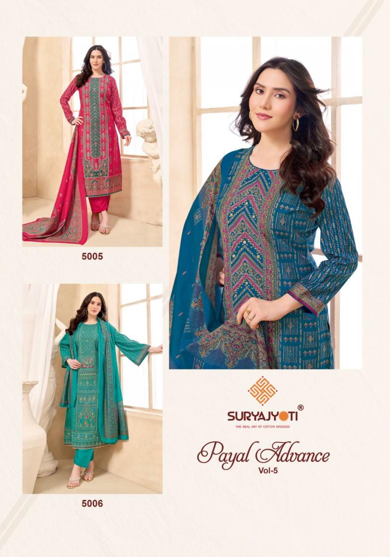 Looking for SURYAJYOTI LAUNCH PAYAL ADVANCE VOL 5 STYLISH MODAL DRESS MATERIAL Full Catalouge at Best Price? Buy Now SURYAJYOTI LAUNCH PAYAL ADVANCE VOL 5 STYLISH MODAL DRESS MATERIAL at Wholesale Rate of Rs 4890 with Total 6 Pcs from authroized dealer and supplier of Suryajyoti Cotton Brand. Cost of Each piece is just only Rs 815 which is very low and affordable price to resale the product in your retail store. rrgandhi is Surat based Wholesale Supplier & Dealer of Suryajyoti Cotton Brand. Click on Brand name to Know more about Brand's products.