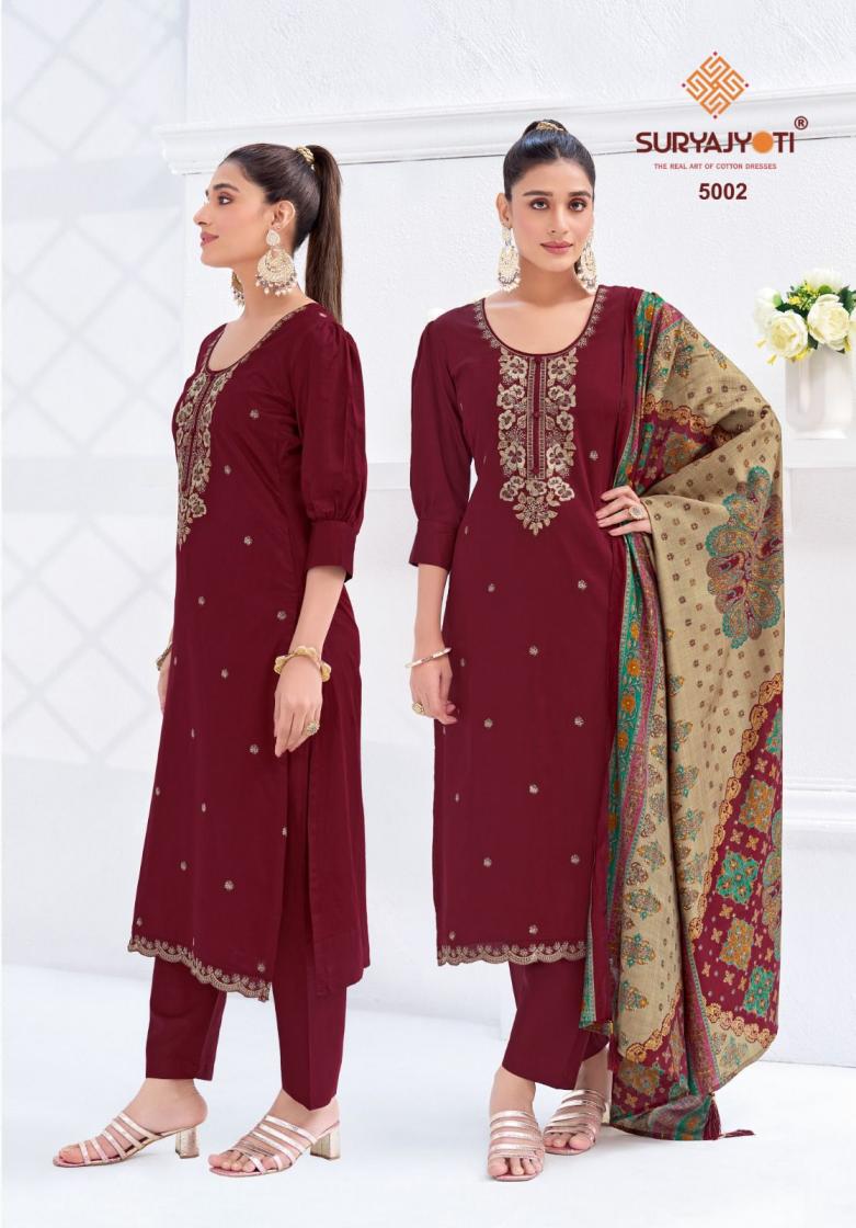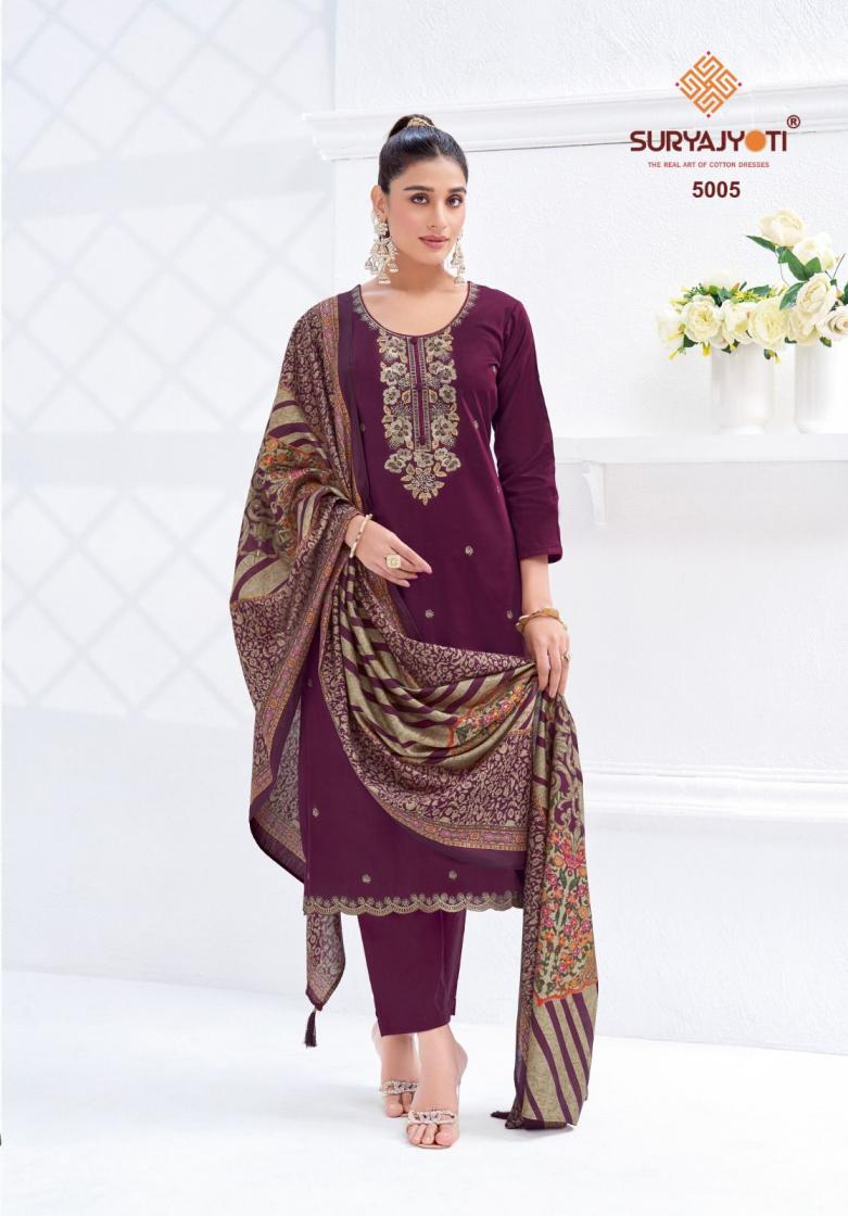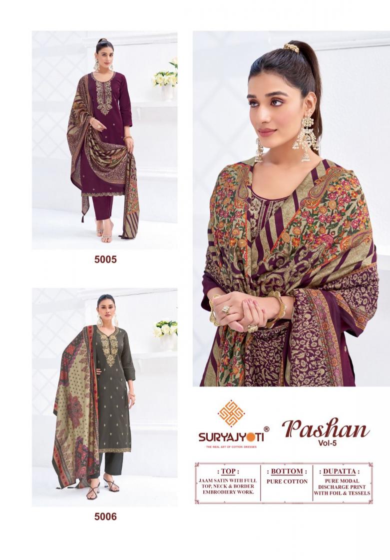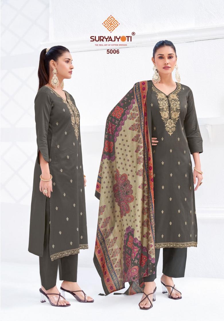 Looking for SURYAJYOTI PASHAN VOL 5 CASUAL JAM SATIN 3PCS DRESS ONLINE Full Catalouge at Best Price? Buy Now SURYAJYOTI PASHAN VOL 5 CASUAL JAM SATIN 3PCS DRESS ONLINE at Wholesale Rate of Rs 5550 with Total 6 Pcs from authroized dealer and supplier of Suryajyoti Cotton Brand. Cost of Each piece is just only Rs 925 which is very low and affordable price to resale the product in your retail store. rrgandhi is Surat based Wholesale Supplier & Dealer of Suryajyoti Cotton Brand. Click on Brand name to Know more about Brand's products.