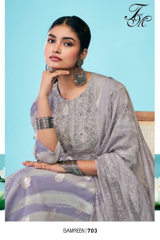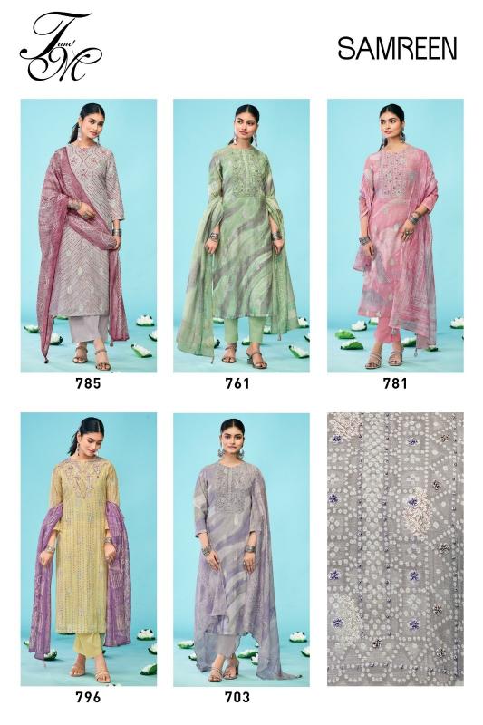Looking for t&m samreen popular design linen jacquard print unstitch suits Full Catalouge at Best Price? Buy Now t&m samreen popular design linen jacquard print unstitch suits at Wholesale Rate of Rs 12475 with Total 5 Pcs from authroized dealer and supplier of T and M Designer Brand. Cost of Each piece is just only Rs 2495 which is very low and affordable price to resale the product in your retail store. rrgandhi is Surat based Wholesale Supplier & Dealer of T and M Designer Brand. Click on Brand name to Know more about Brand's products.