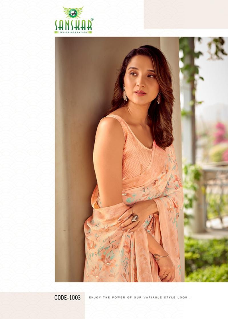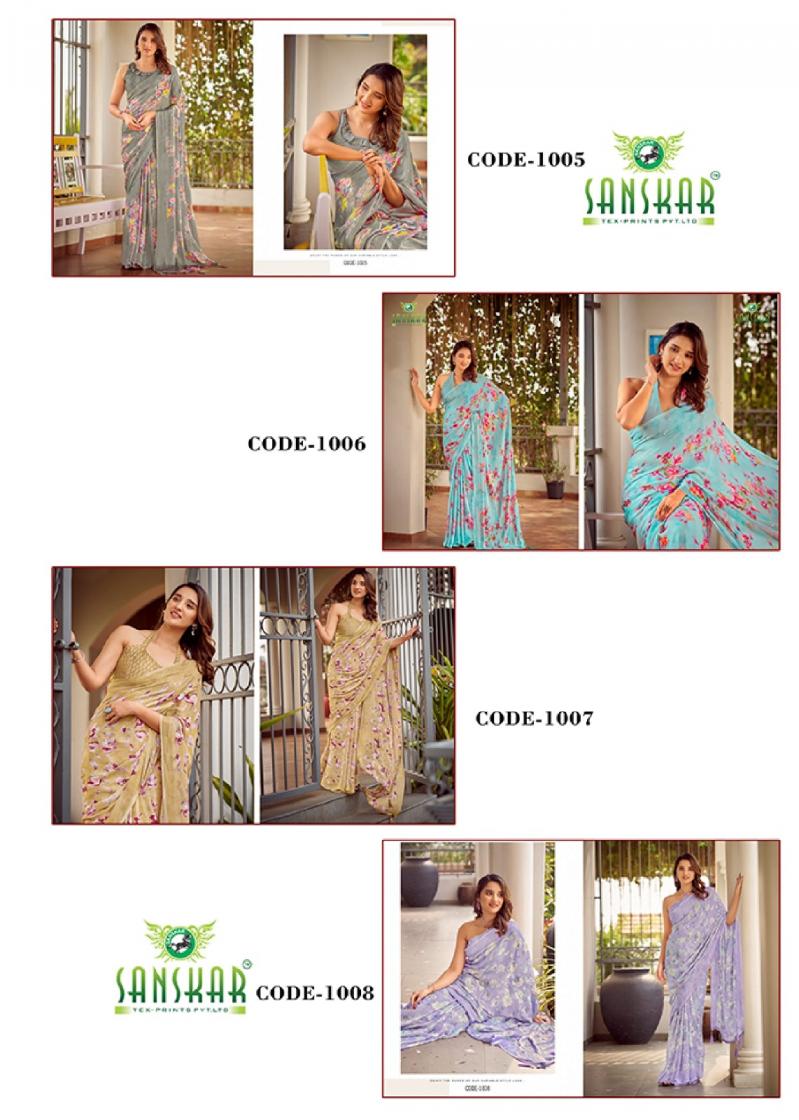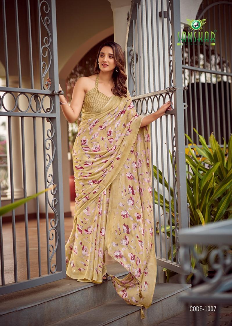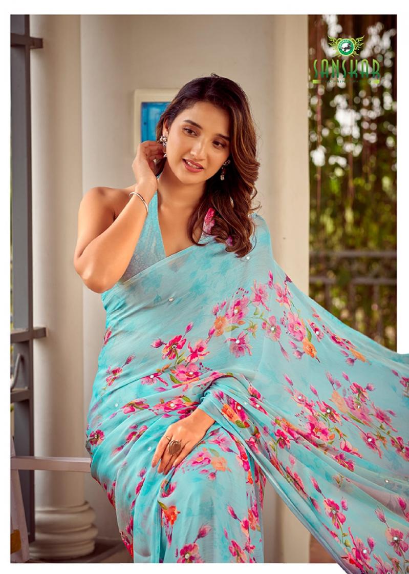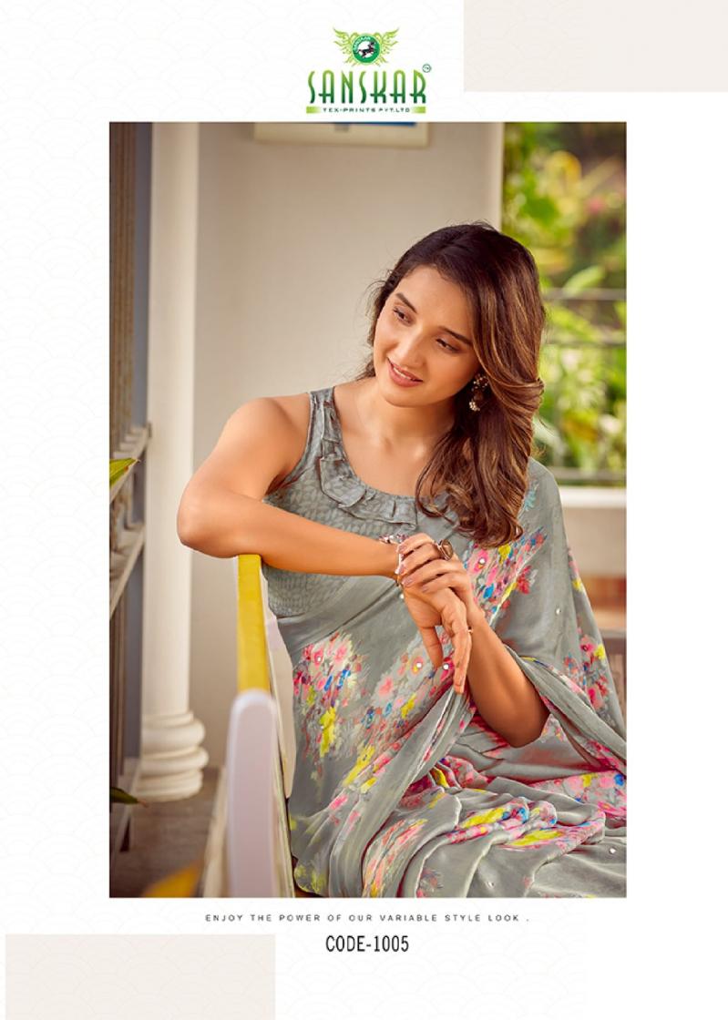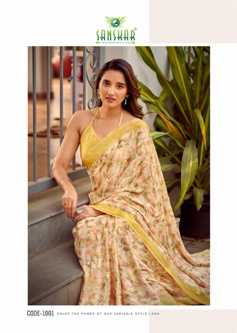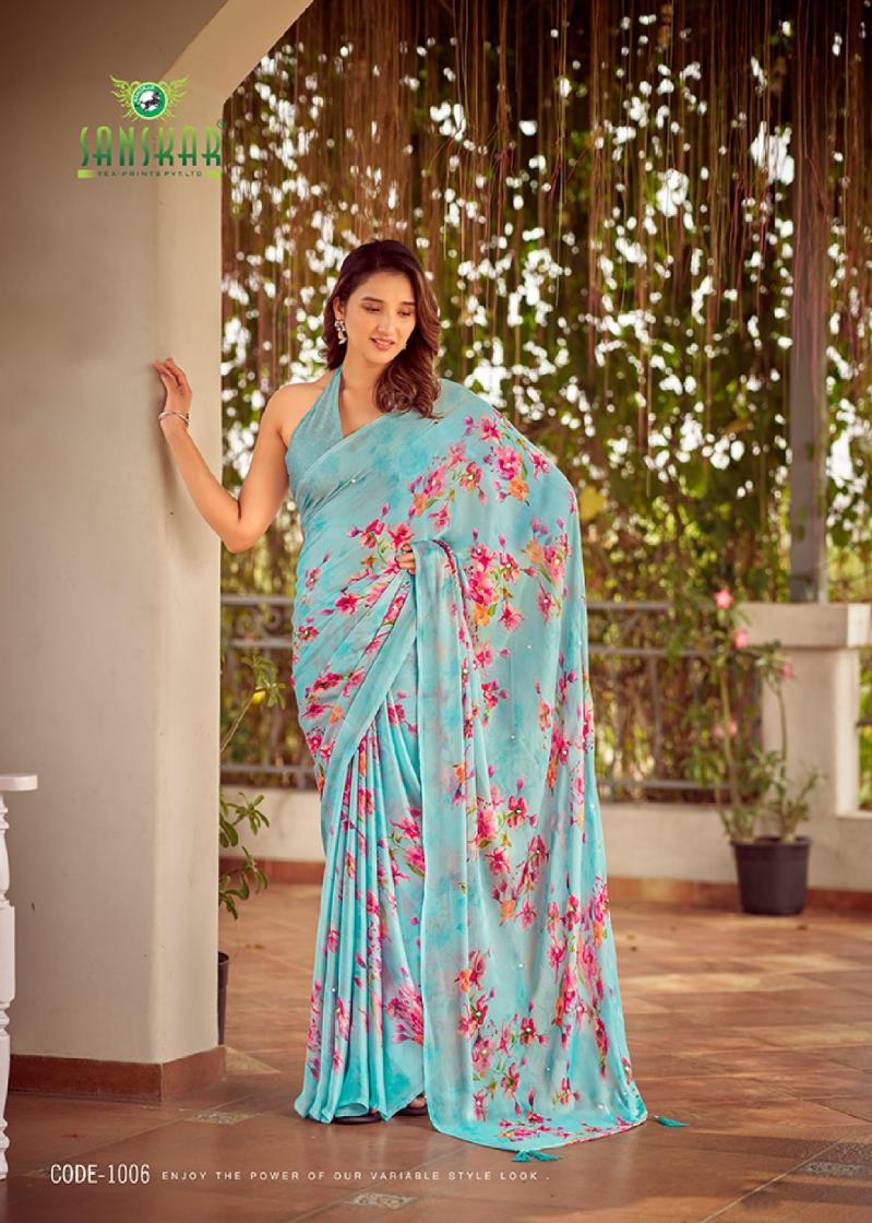 Looking for TARANIKA BY SANSKAR TEX PRINT SARTIN CHIFFON BEST SAREE ONLINE Full Catalouge at Best Price? Buy Now TARANIKA BY SANSKAR TEX PRINT SARTIN CHIFFON BEST SAREE ONLINE at Wholesale Rate of Rs 5280 with Total 8 Pcs from authroized dealer and supplier of Sanskar Tex Prints Brand. Cost of Each piece is just only Rs 660 which is very low and affordable price to resale the product in your retail store. rrgandhi is Surat based Wholesale Supplier & Dealer of Sanskar Tex Prints Brand. Click on Brand name to Know more about Brand's products.