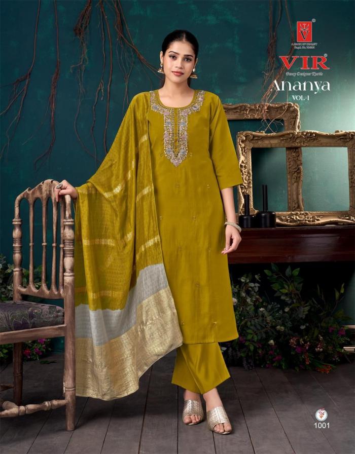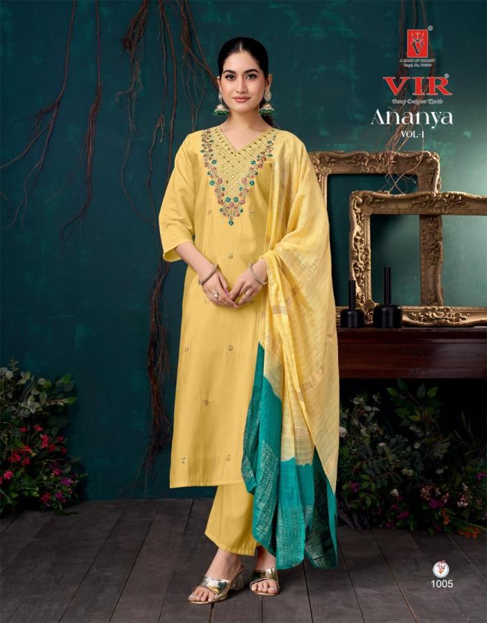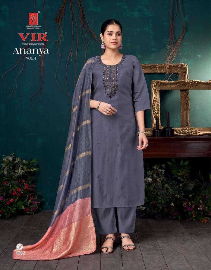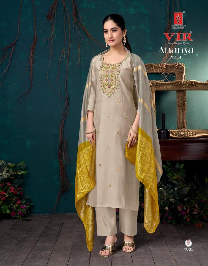 Looking for VIR ANANYA VOL 1 HIT DESIGN ROMAN FULL STITCH 3PCS DRESS Full Catalouge at Best Price? Buy Now VIR ANANYA VOL 1 HIT DESIGN ROMAN FULL STITCH 3PCS DRESS at Wholesale Rate of Rs 4880 with Total 8 Pcs from authroized dealer and supplier of VIR Brand. Cost of Each piece is just only Rs 610 which is very low and affordable price to resale the product in your retail store. rrgandhi is Surat based Wholesale Supplier & Dealer of VIR Brand. Click on Brand name to Know more about Brand's products.