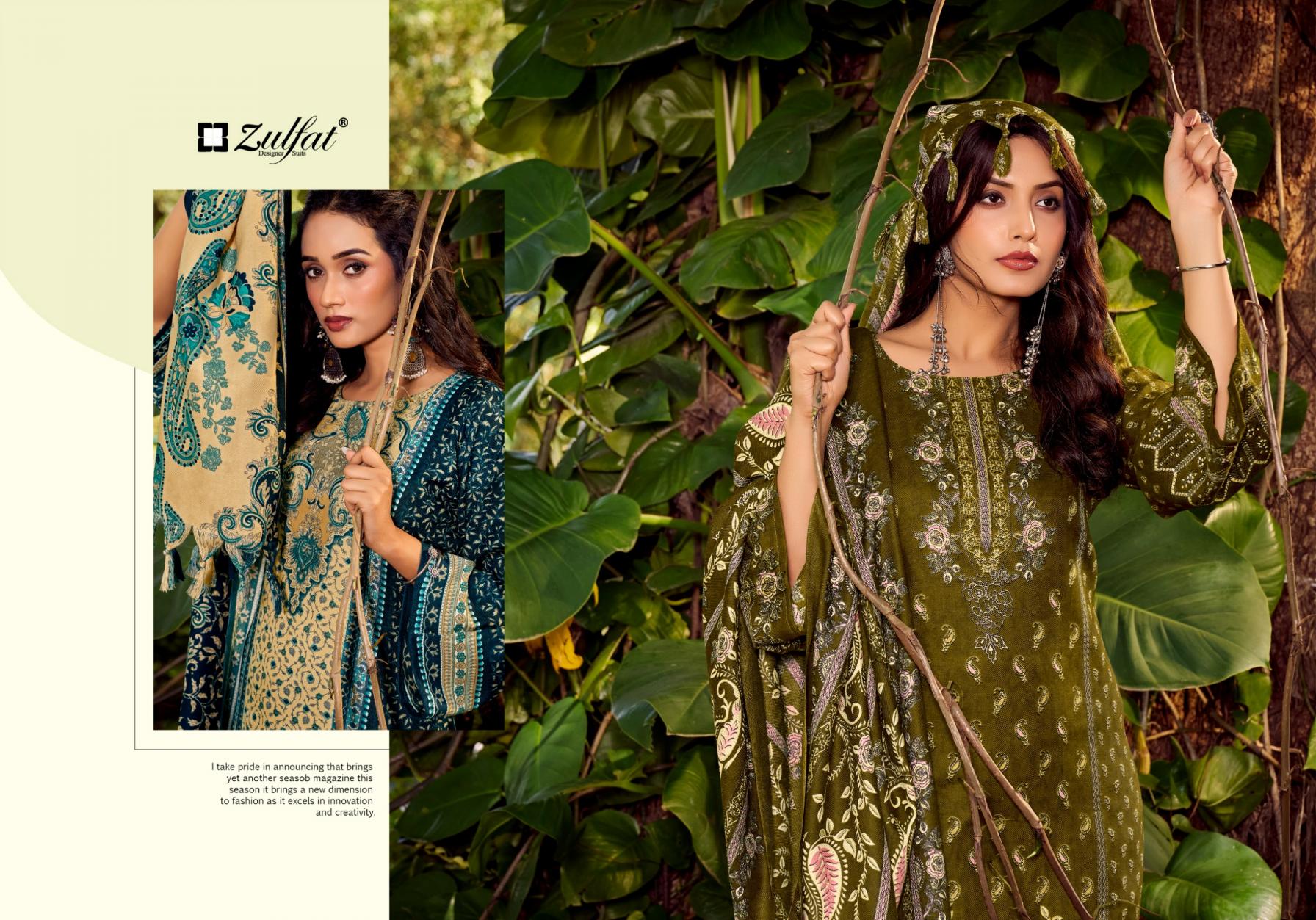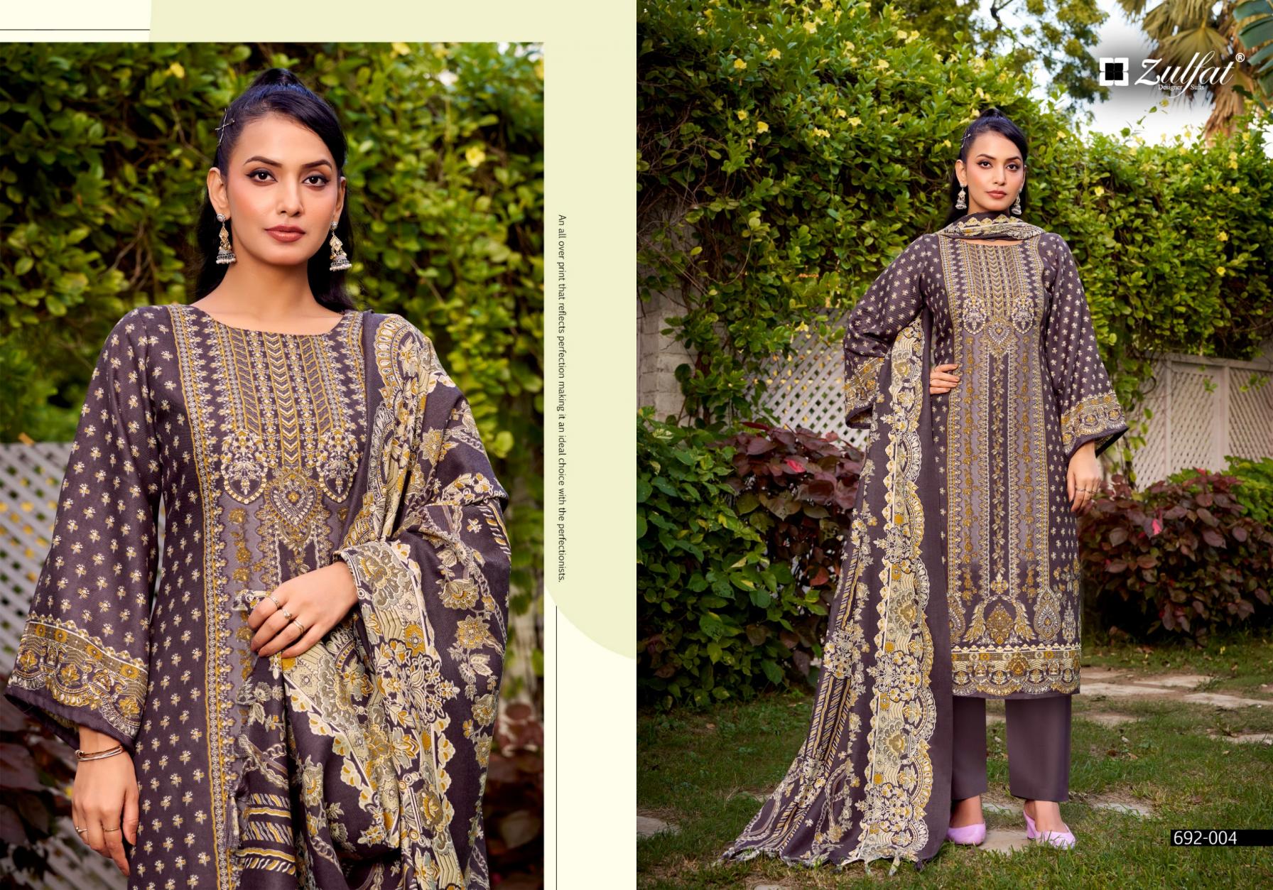 Looking for ZULFAT NAAZ WOOLLEN PASHMINA FULL STITCH BIG SIZE SALWAR SUIT Full Catalouge at Best Price? Buy Now ZULFAT NAAZ WOOLLEN PASHMINA FULL STITCH BIG SIZE SALWAR SUIT at Wholesale Rate of Rs 5610 with Total 6 Pcs from authroized dealer and supplier of Zulfat Brand. Cost of Each piece is just only Rs 935 which is very low and affordable price to resale the product in your retail store. rrgandhi is Surat based Wholesale Supplier & Dealer of Zulfat Brand. Click on Brand name to Know more about Brand's products.