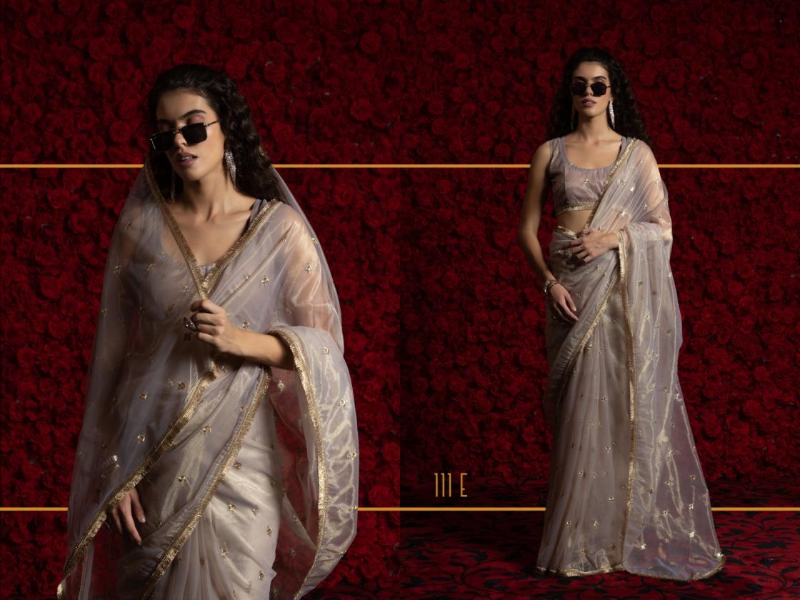 Looking for 111A-111E BY AKSHAYA NET ORGANZA PARTY WEAR SAREES ONLINE Full Catalouge at Best Price? Buy Now 111A-111E BY AKSHAYA NET ORGANZA PARTY WEAR SAREES ONLINE at Wholesale Rate of Rs 4675 with Total 5 Pcs from authroized dealer and supplier of P R Clothing Brand. Cost of Each piece is just only Rs 935 which is very low and affordable price to resale the product in your retail store. rrgandhi is Surat based Wholesale Supplier & Dealer of P R Clothing Brand. Click on Brand name to Know more about Brand's products.