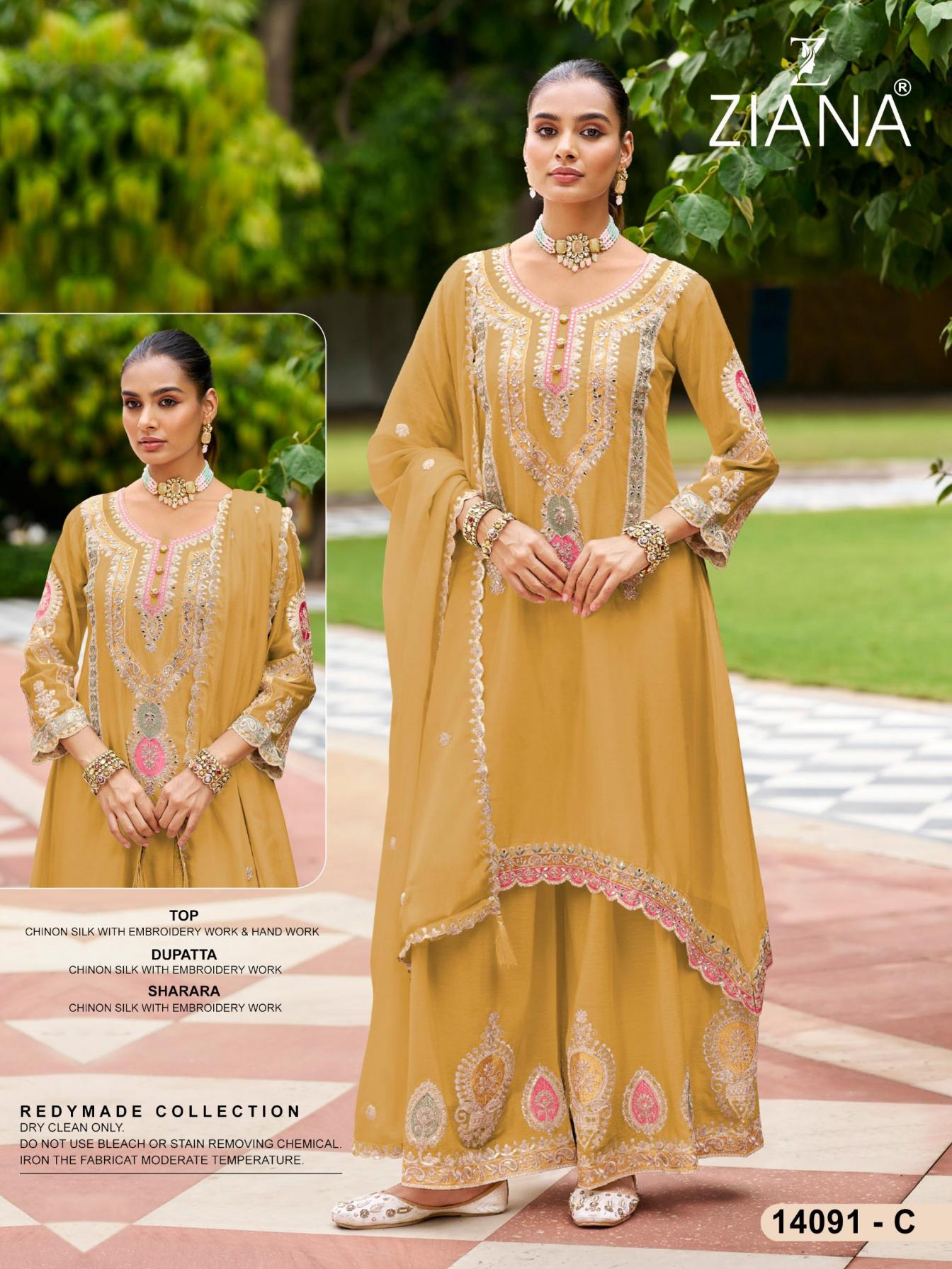 Looking for 14091 BY ZIANA CHINON SILK DESIGNER FULL STITCH PLAZZO STYLE DRESS Full Catalouge at Best Price? Buy Now 14091 BY ZIANA CHINON SILK DESIGNER FULL STITCH PLAZZO STYLE DRESS at Wholesale Rate of Rs 7180 with Total 4 Pcs from authroized dealer and supplier of ZIANA Brand. Cost of Each piece is just only Rs 1795 which is very low and affordable price to resale the product in your retail store. rrgandhi is Surat based Wholesale Supplier & Dealer of ZIANA Brand. Click on Brand name to Know more about Brand's products.