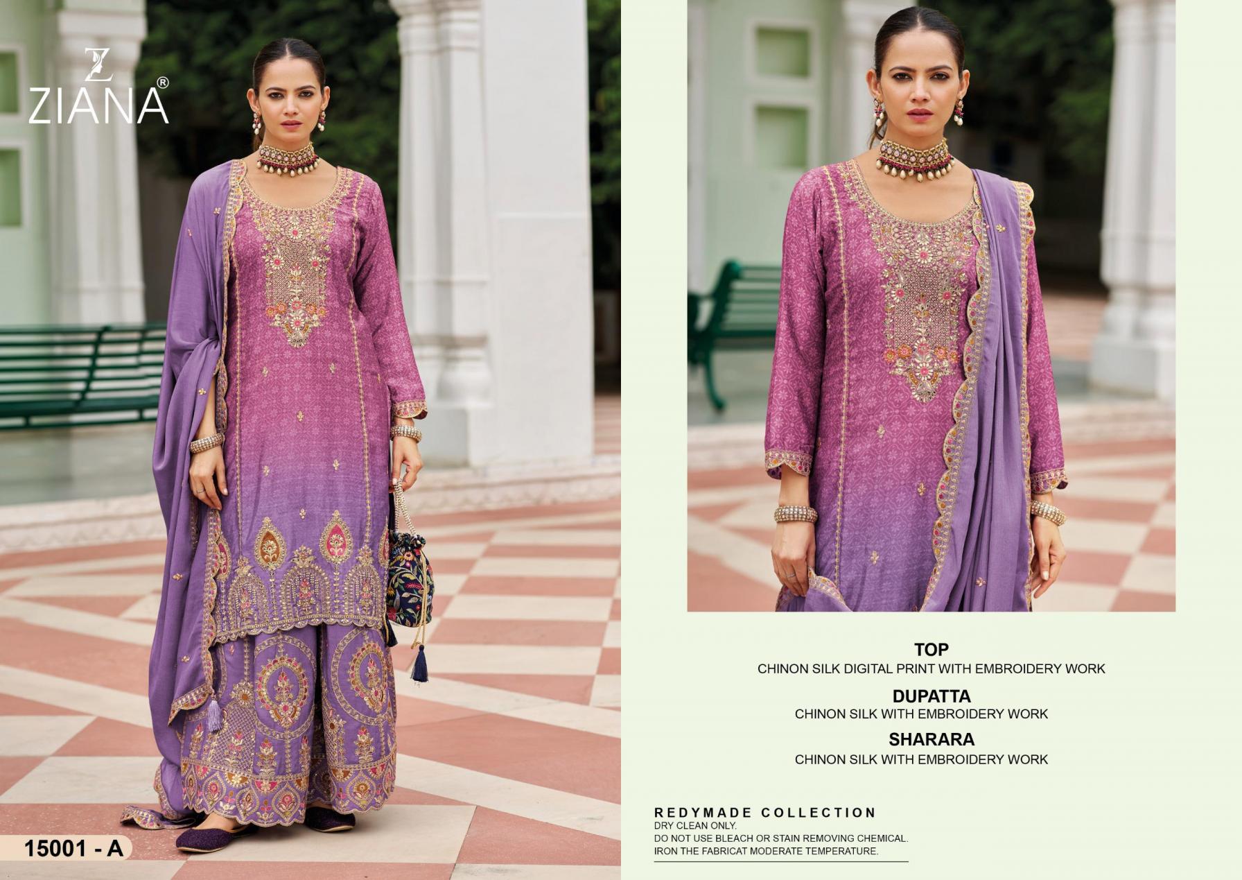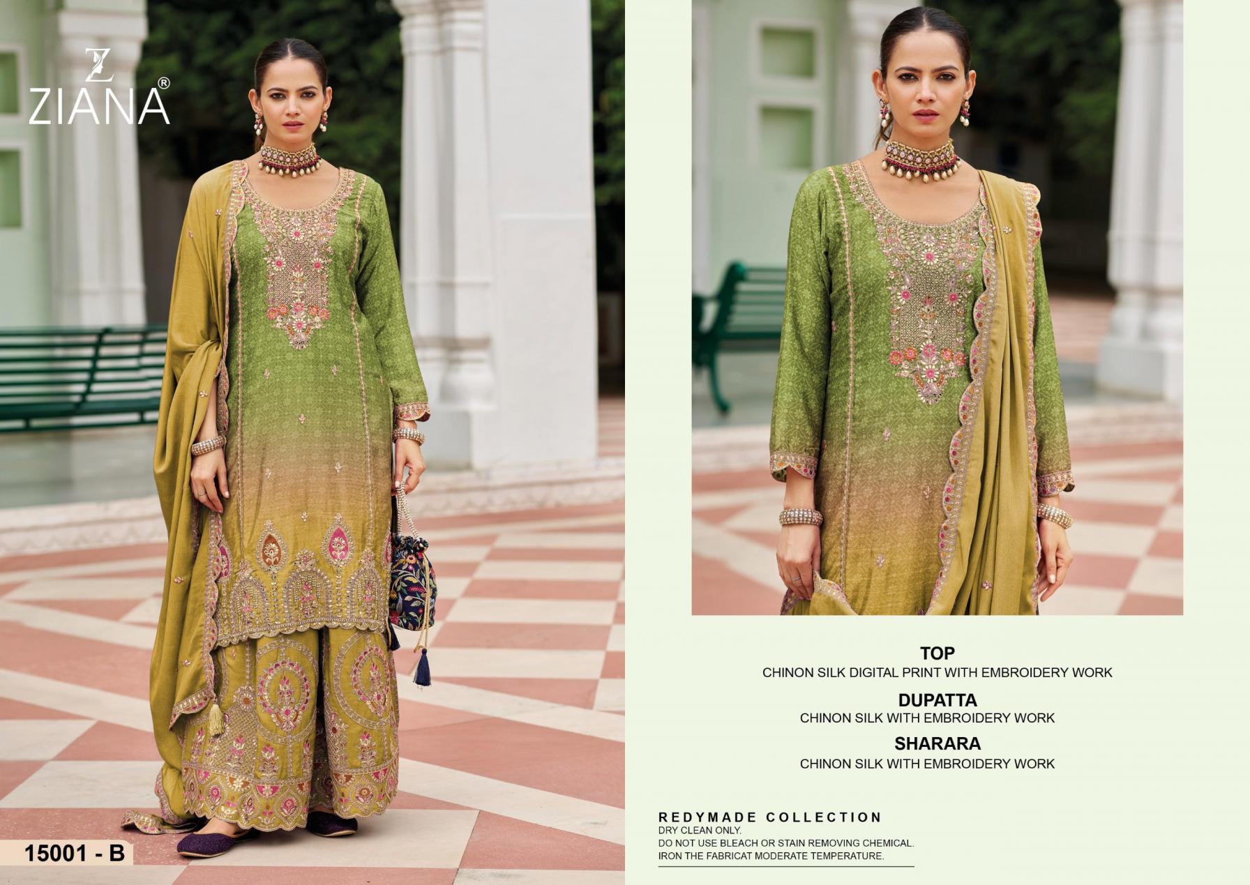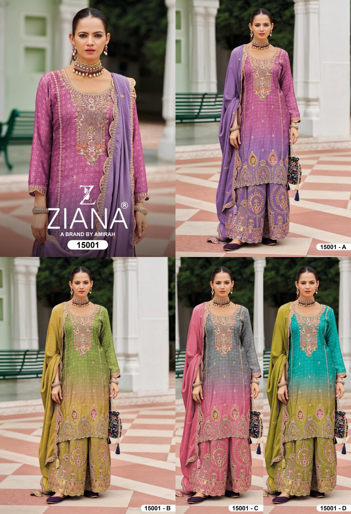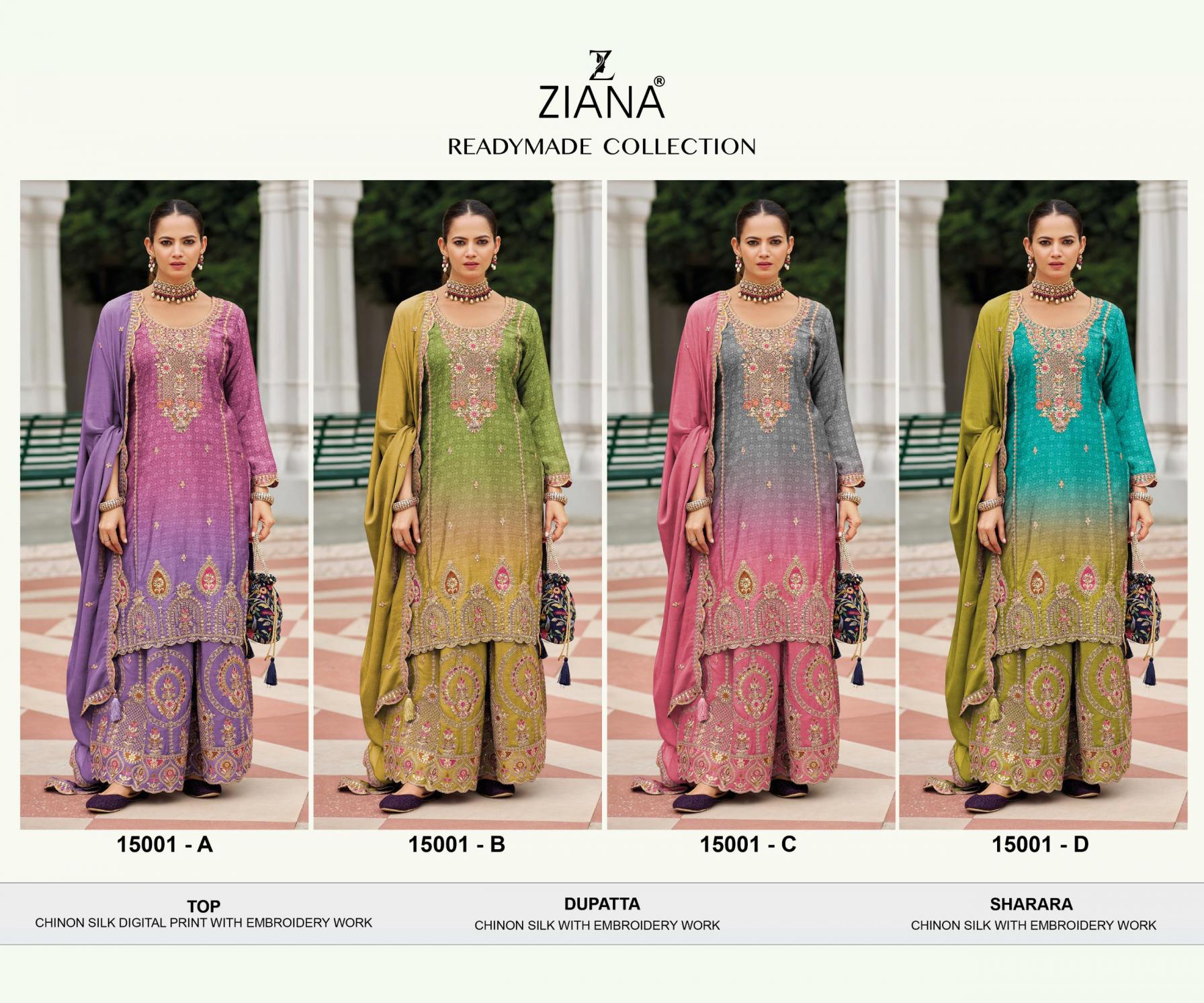 Looking for 15001 BY ZIANA READYMADE STYLISH CHINON SILK SHARARA KURTI WITH DUPATTA Full Catalouge at Best Price? Buy Now 15001 BY ZIANA READYMADE STYLISH CHINON SILK SHARARA KURTI WITH DUPATTA at Wholesale Rate of Rs 7980 with Total 4 Pcs from authroized dealer and supplier of ZIANA Brand. Cost of Each piece is just only Rs 1995 which is very low and affordable price to resale the product in your retail store. rrgandhi is Surat based Wholesale Supplier & Dealer of ZIANA Brand. Click on Brand name to Know more about Brand's products.
