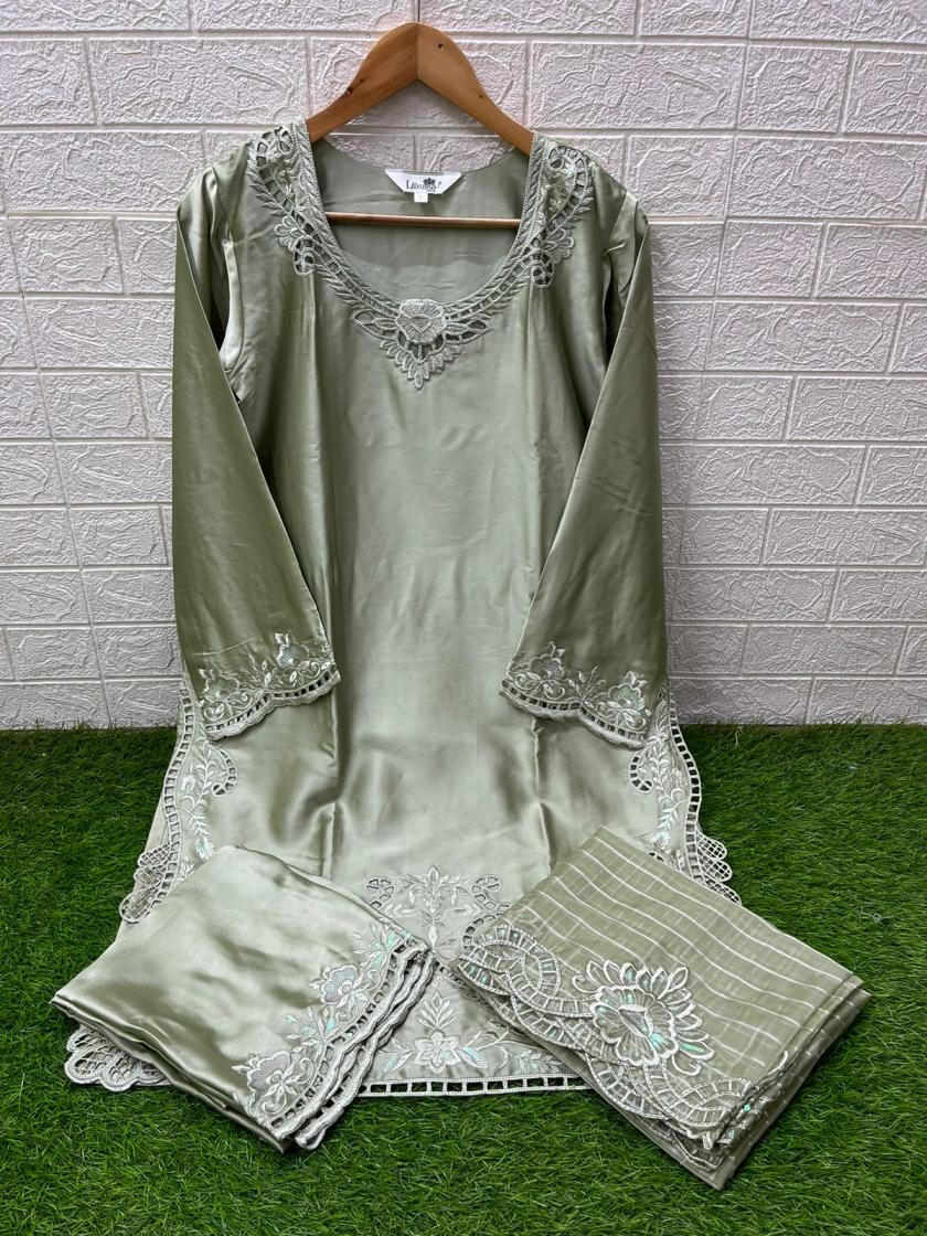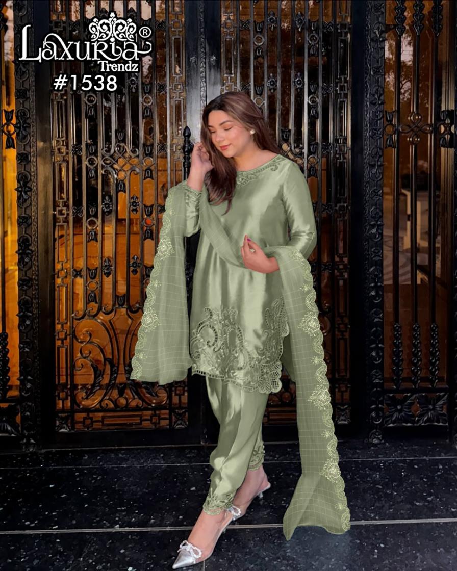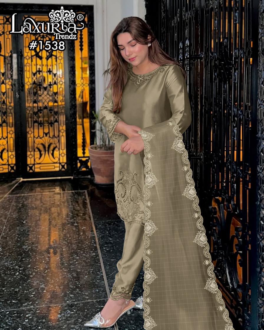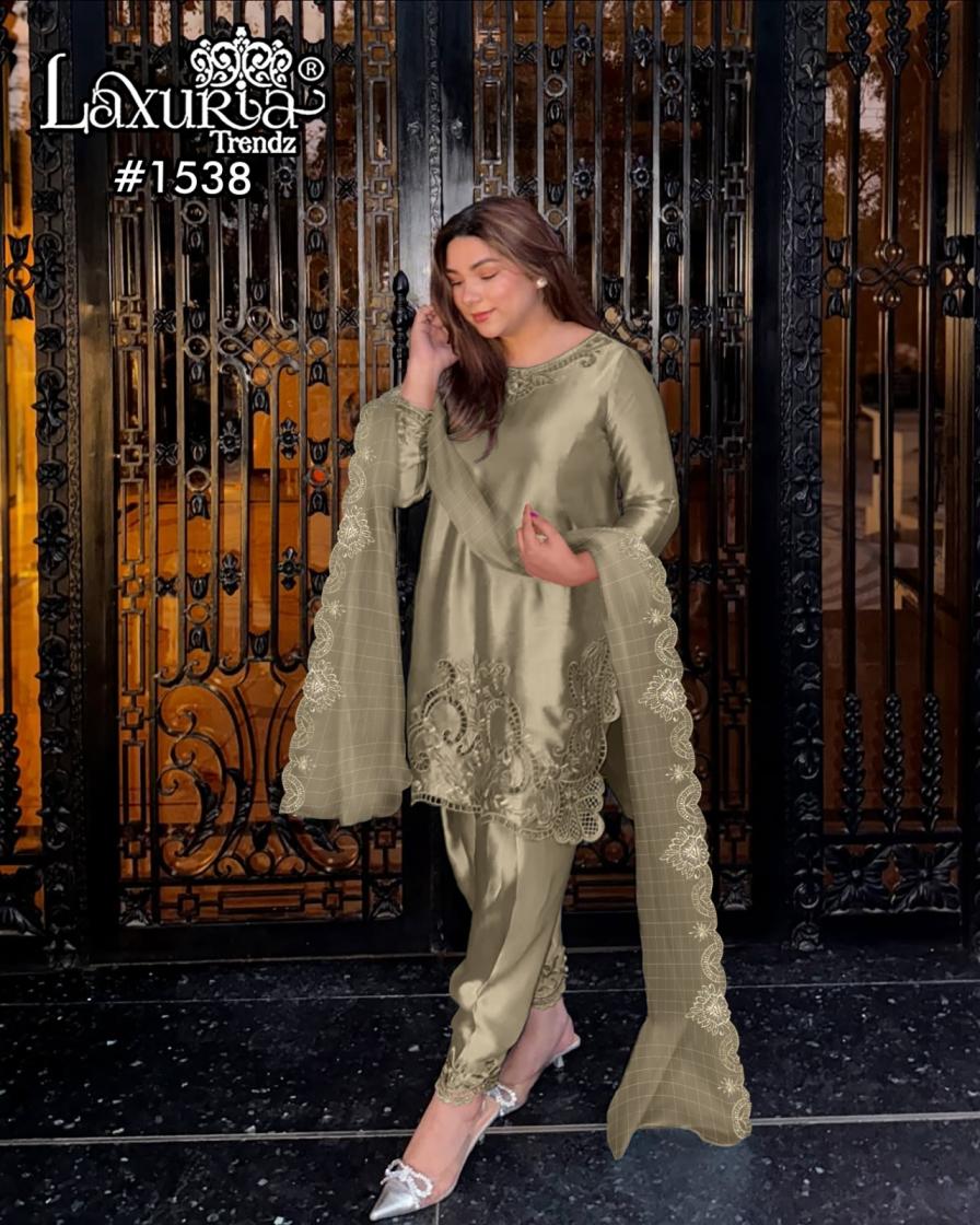 Looking for 1538 BY LAXURIA TRENDZ SATIN FULL STITCH PAKISTANI 3PCS DRESS Full Catalouge at Best Price? Buy Now 1538 BY LAXURIA TRENDZ SATIN FULL STITCH PAKISTANI 3PCS DRESS at Wholesale Rate of Rs 11700 with Total 9 Pcs from authroized dealer and supplier of Laxuria Trendz Brand. Cost of Each piece is just only Rs 1300 which is very low and affordable price to resale the product in your retail store. rrgandhi is Surat based Wholesale Supplier & Dealer of Laxuria Trendz Brand. Click on Brand name to Know more about Brand's products.