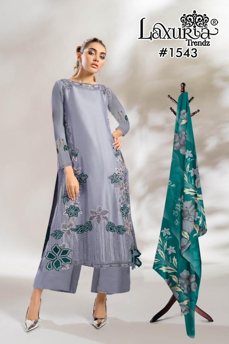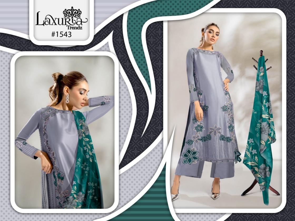 Looking for 1543 BY LAXURIA TRENDZ FULL STITCH VISCOSE SILK PAKISTANI SUIT FOR WOMENS Full Catalouge at Best Price? Buy Now 1543 BY LAXURIA TRENDZ FULL STITCH VISCOSE SILK PAKISTANI SUIT FOR WOMENS at Wholesale Rate of Rs 4350 with Total 3 Pcs from authroized dealer and supplier of Laxuria Trendz Brand. Cost of Each piece is just only Rs 1450 which is very low and affordable price to resale the product in your retail store. rrgandhi is Surat based Wholesale Supplier & Dealer of Laxuria Trendz Brand. Click on Brand name to Know more about Brand's products.