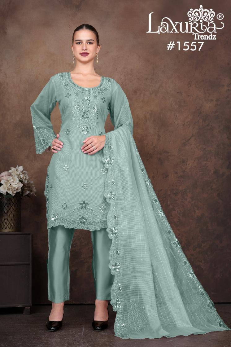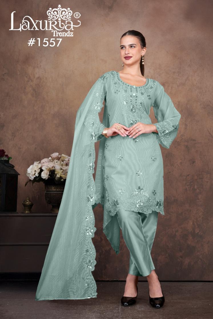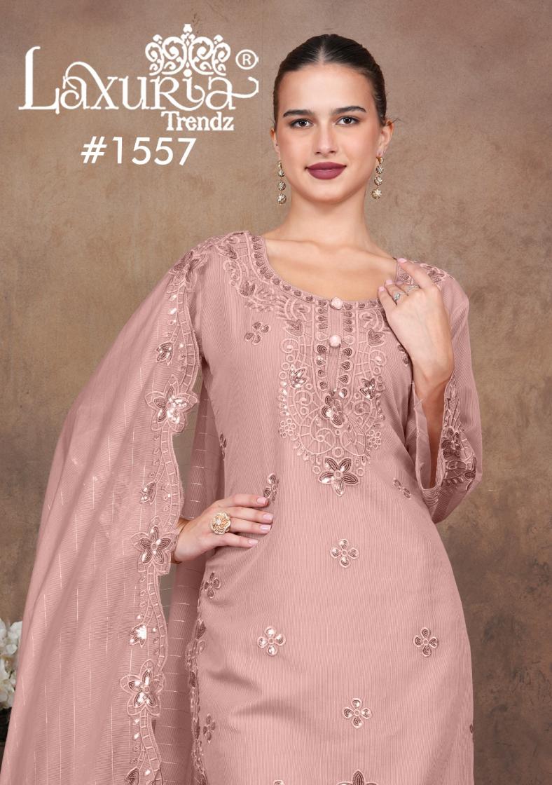 Looking for 1557 BY LAXURIA TRENDZ READYMADE KOTA LINING PAKISTANI SUIT FOR WOMENS Full Catalouge at Best Price? Buy Now 1557 BY LAXURIA TRENDZ READYMADE KOTA LINING PAKISTANI SUIT FOR WOMENS at Wholesale Rate of Rs 8100 with Total 6 Pcs from authroized dealer and supplier of Laxuria Trendz Brand. Cost of Each piece is just only Rs 1350 which is very low and affordable price to resale the product in your retail store. rrgandhi is Surat based Wholesale Supplier & Dealer of Laxuria Trendz Brand. Click on Brand name to Know more about Brand's products.