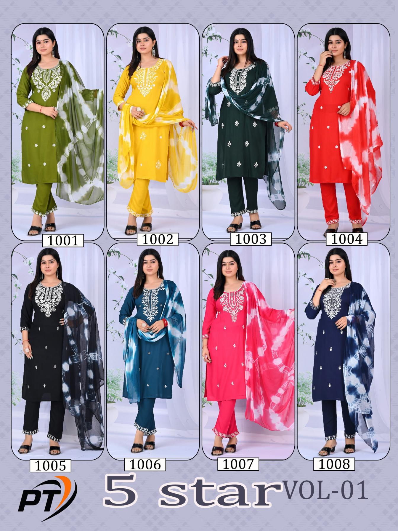 Looking for 5 STAR VOL 1 BY PADMAVATI TEXTILE FULL STITCH 3PCS ELEGANT DRESS Full Catalouge at Best Price? Buy Now 5 STAR VOL 1 BY PADMAVATI TEXTILE FULL STITCH 3PCS ELEGANT DRESS at Wholesale Rate of Rs 4440 with Total 8 Pcs from authroized dealer and supplier of SHREE PADMAVATI Brand. Cost of Each piece is just only Rs 555 which is very low and affordable price to resale the product in your retail store. rrgandhi is Surat based Wholesale Supplier & Dealer of SHREE PADMAVATI Brand. Click on Brand name to Know more about Brand's products.