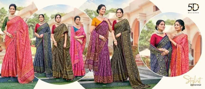 Looking for 5d designer launch babli kasab silk & weaving blouse classy look saree Full Catalouge at Best Price? Buy Now 5d designer launch babli kasab silk & weaving blouse classy look saree at Wholesale Rate of Rs 3810 with Total 6 Pcs from authroized dealer and supplier of 5D Designer Brand. Cost of Each piece is just only Rs 635 which is very low and affordable price to resale the product in your retail store. rrgandhi is Surat based Wholesale Supplier & Dealer of 5D Designer Brand. Click on Brand name to Know more about Brand's products.