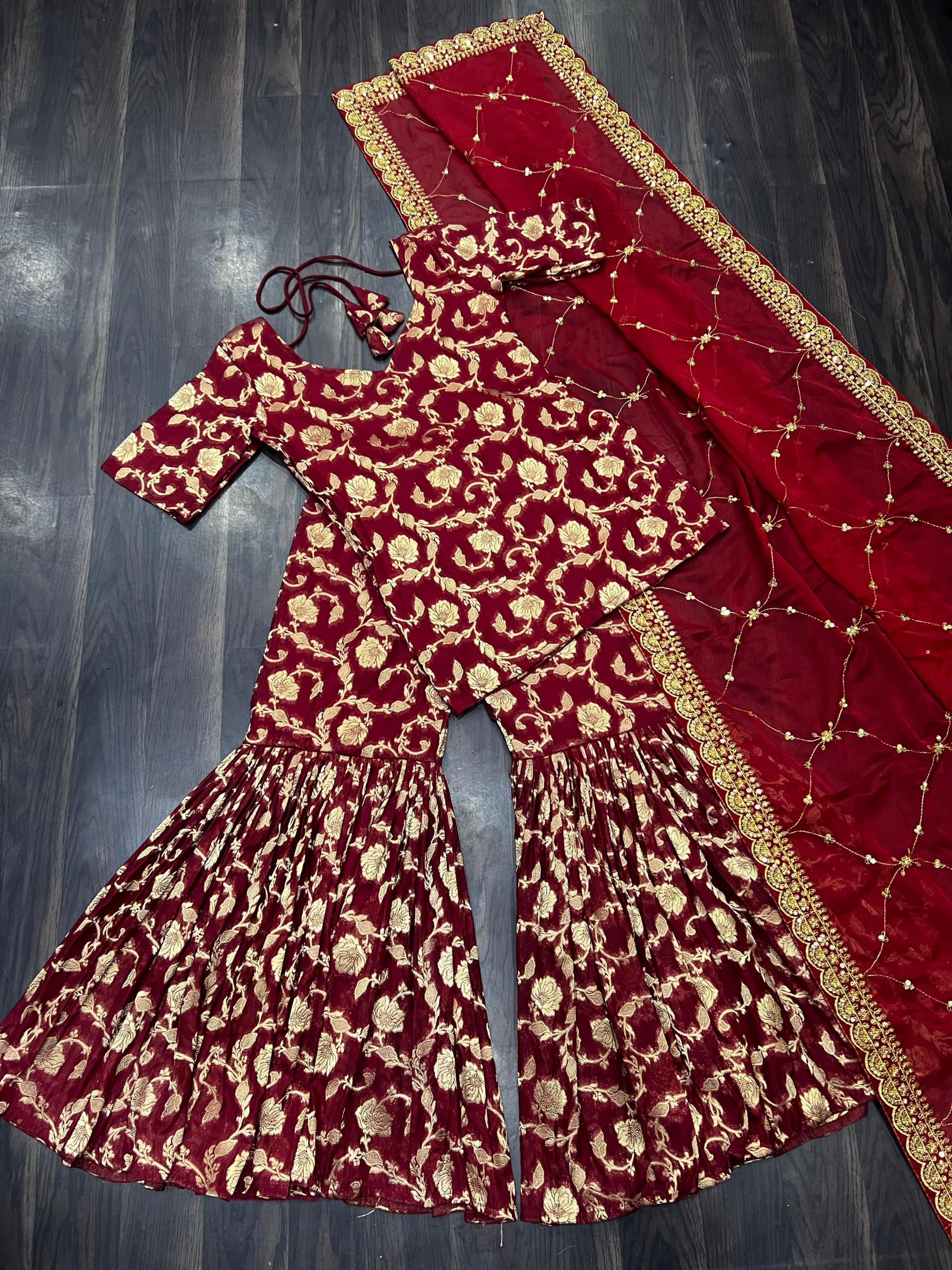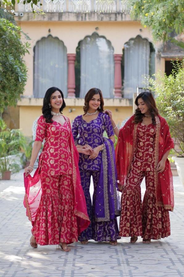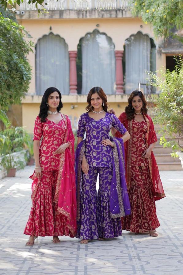 Looking for 9215 VISCOSE GEORGETTE JACQUARD FULL STITCH PLAZZO STYLE 3PCS DRESS Full Catalouge at Best Price? Buy Now 9215 VISCOSE GEORGETTE JACQUARD FULL STITCH PLAZZO STYLE 3PCS DRESS at Wholesale Rate of Rs 21000 with Total 12 Pcs from authroized dealer and supplier of P R Clothing Brand. Cost of Each piece is just only Rs 1750 which is very low and affordable price to resale the product in your retail store. rrgandhi is Surat based Wholesale Supplier & Dealer of P R Clothing Brand. Click on Brand name to Know more about Brand's products.