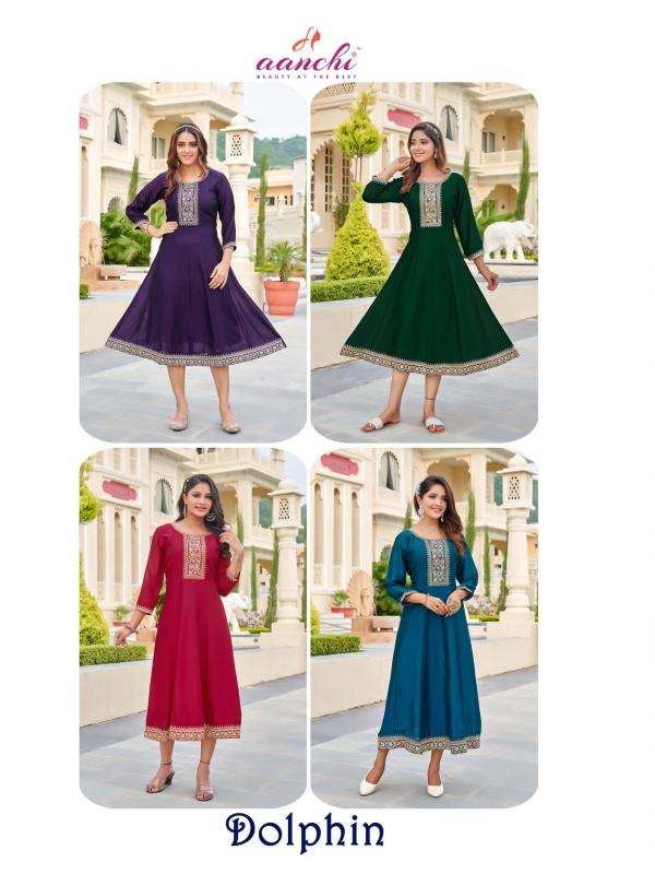 Looking for aanchi dolphin vichitra classic fully stitch long combo set kurtis Full Catalouge at Best Price? Buy Now aanchi dolphin vichitra classic fully stitch long combo set kurtis at Wholesale Rate of Rs 17640 with Total 24 Pcs from authroized dealer and supplier of Aanchi Brand. Cost of Each piece is just only Rs 735 which is very low and affordable price to resale the product in your retail store. rrgandhi is Surat based Wholesale Supplier & Dealer of Aanchi Brand. Click on Brand name to Know more about Brand's products.