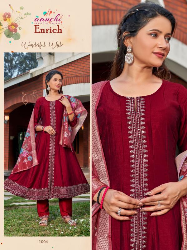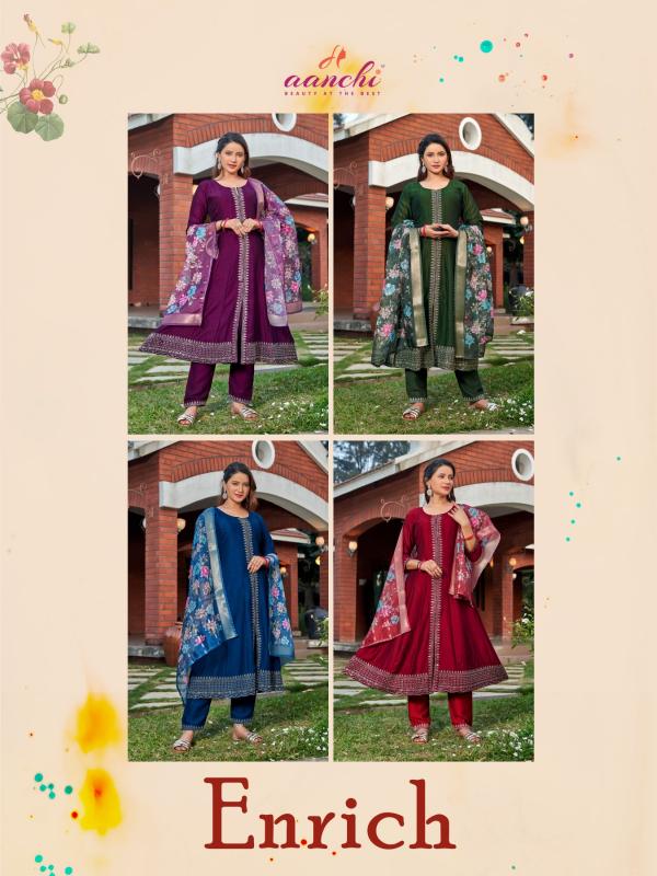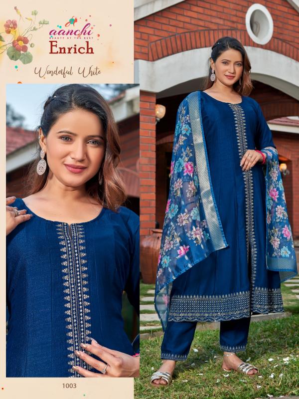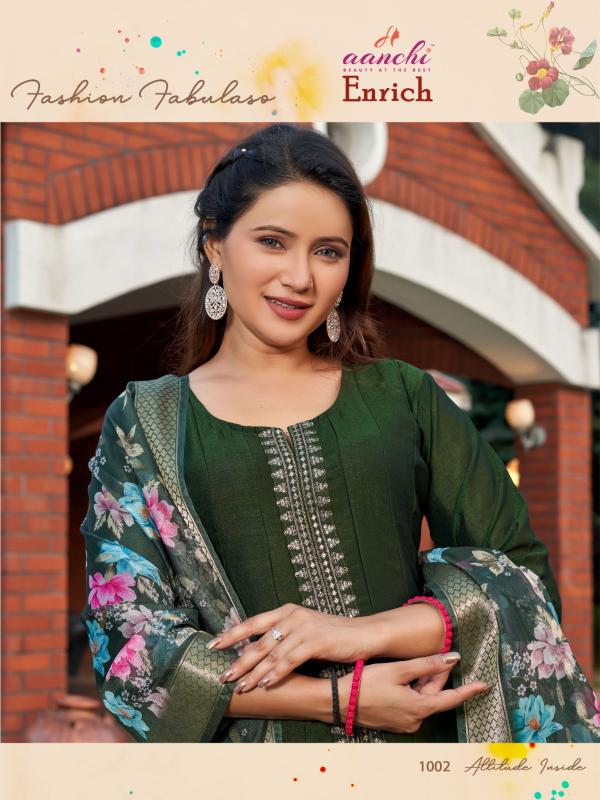 Looking for aanchi enrich vol 1 vichitra fashionable design redaymade 3pcs dress Full Catalouge at Best Price? Buy Now aanchi enrich vol 1 vichitra fashionable design redaymade 3pcs dress at Wholesale Rate of Rs 4920 with Total 4 Pcs from authroized dealer and supplier of Aanchi Brand. Cost of Each piece is just only Rs 1230 which is very low and affordable price to resale the product in your retail store. rrgandhi is Surat based Wholesale Supplier & Dealer of Aanchi Brand. Click on Brand name to Know more about Brand's products.