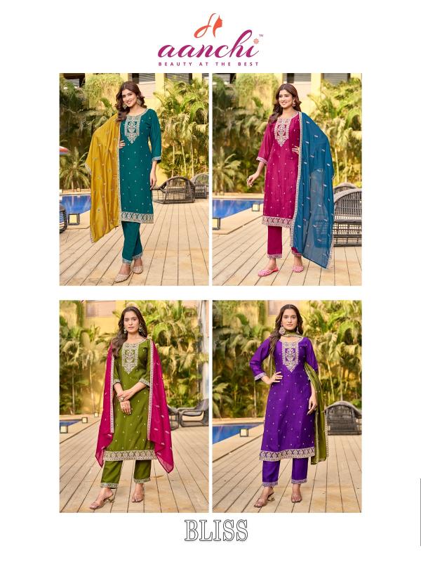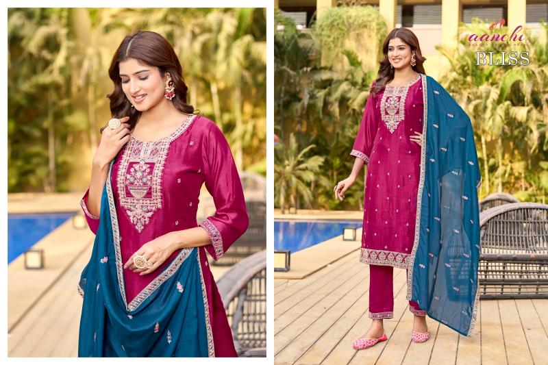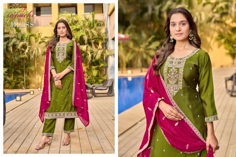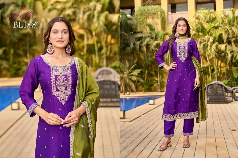 Looking for aanchi launch bliss vichitra silk full stitch casual wear 3pcs dress online Full Catalouge at Best Price? Buy Now aanchi launch bliss vichitra silk full stitch casual wear 3pcs dress online at Wholesale Rate of Rs 4320 with Total 4 Pcs from authroized dealer and supplier of Aanchi Brand. Cost of Each piece is just only Rs 1080 which is very low and affordable price to resale the product in your retail store. rrgandhi is Surat based Wholesale Supplier & Dealer of Aanchi Brand. Click on Brand name to Know more about Brand's products.