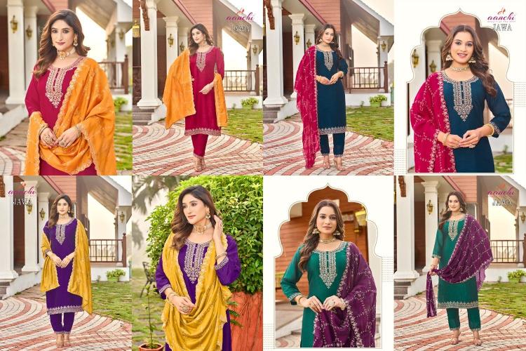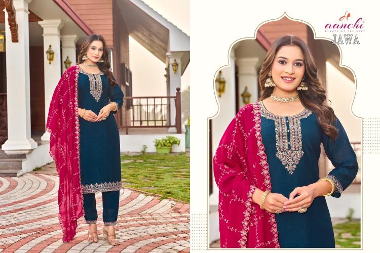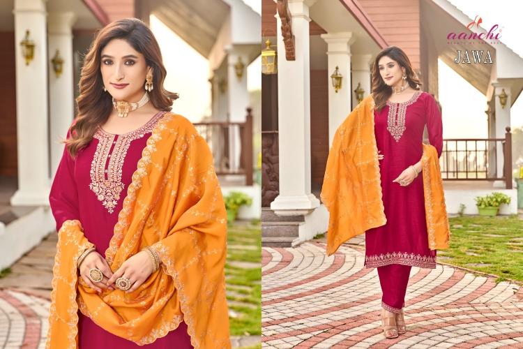 Looking for aanchi presents jawa vichitra elegant style full stitch 3pcs dress Full Catalouge at Best Price? Buy Now aanchi presents jawa vichitra elegant style full stitch 3pcs dress at Wholesale Rate of Rs 4320 with Total 4 Pcs from authroized dealer and supplier of Aanchi Brand. Cost of Each piece is just only Rs 1080 which is very low and affordable price to resale the product in your retail store. rrgandhi is Surat based Wholesale Supplier & Dealer of Aanchi Brand. Click on Brand name to Know more about Brand's products.