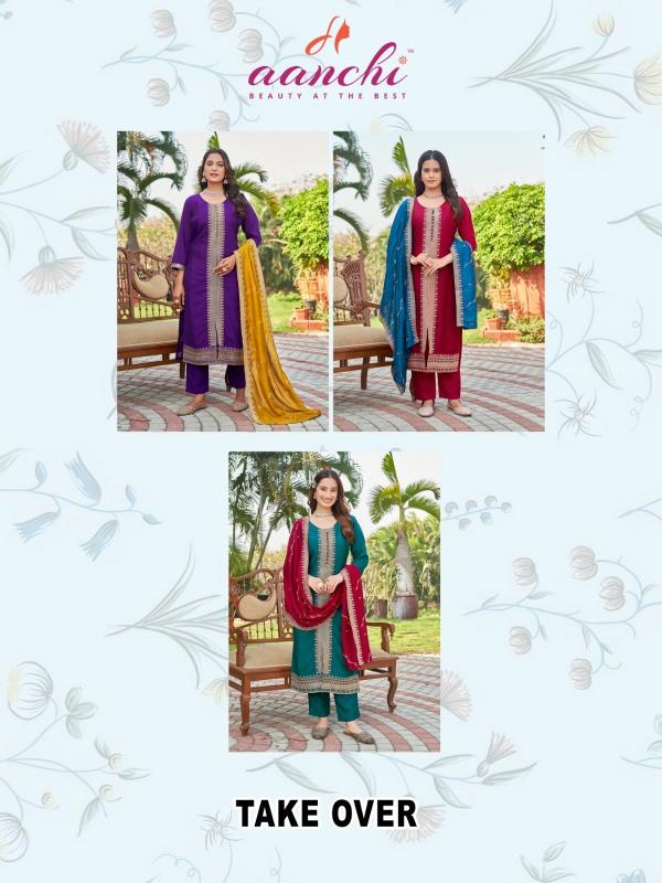 Looking for aanchi take over fully stitch vichitra silk classic suit for womens Full Catalouge at Best Price? Buy Now aanchi take over fully stitch vichitra silk classic suit for womens at Wholesale Rate of Rs 3360 with Total 3 Pcs from authroized dealer and supplier of Aanchi Brand. Cost of Each piece is just only Rs 1120 which is very low and affordable price to resale the product in your retail store. rrgandhi is Surat based Wholesale Supplier & Dealer of Aanchi Brand. Click on Brand name to Know more about Brand's products.