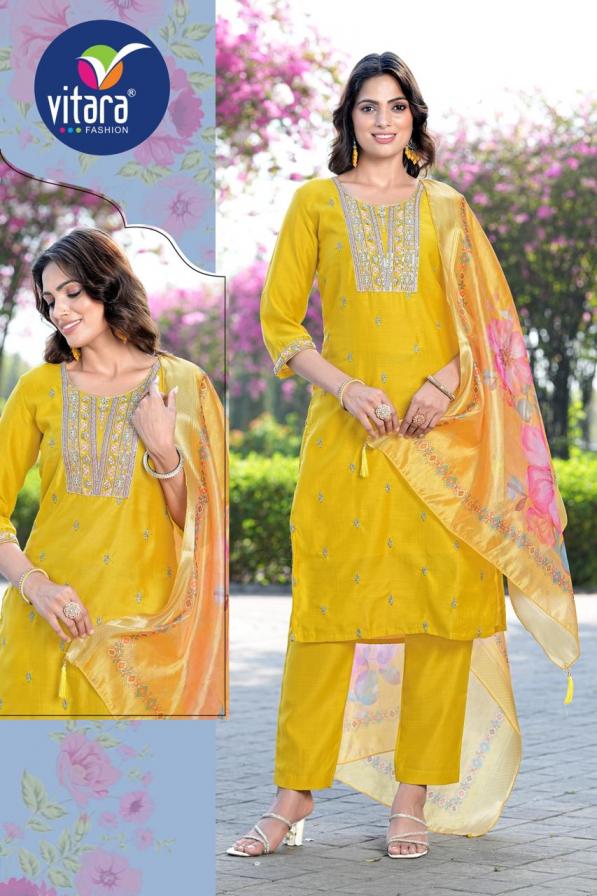 Looking for AARVI BY VITARA FASHION READYMADE STYLISH VETICAN COMBO SUIT FOR WOMENS Full Catalouge at Best Price? Buy Now AARVI BY VITARA FASHION READYMADE STYLISH VETICAN COMBO SUIT FOR WOMENS at Wholesale Rate of Rs 12780 with Total 12 Pcs from authroized dealer and supplier of Vitara Fashion Brand. Cost of Each piece is just only Rs 1065 which is very low and affordable price to resale the product in your retail store. rrgandhi is Surat based Wholesale Supplier & Dealer of Vitara Fashion Brand. Click on Brand name to Know more about Brand's products.