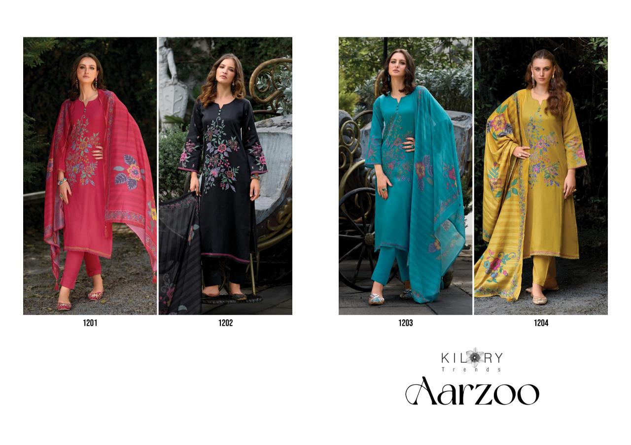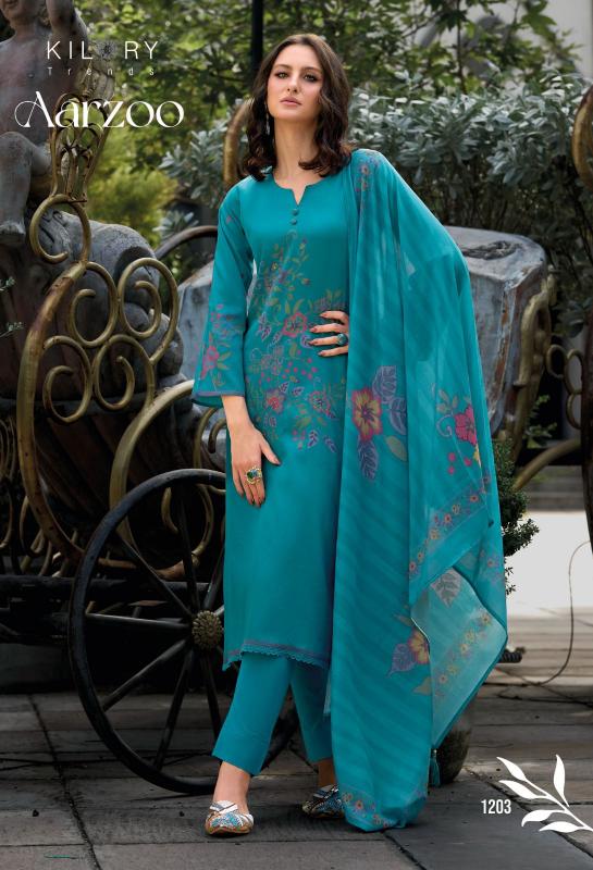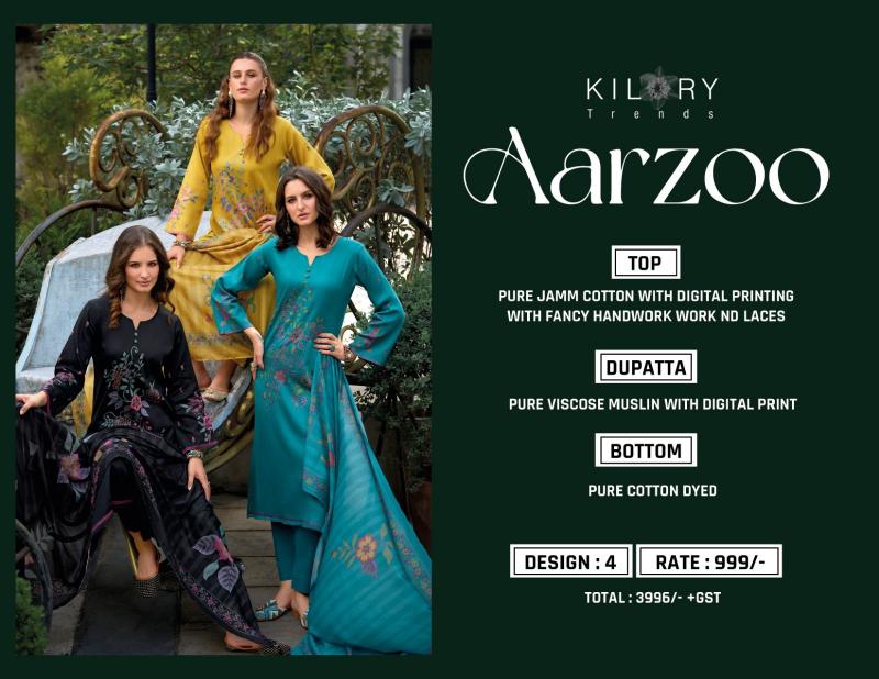 Looking for aarzoo by kilory trends jamm cotton digital printed with handwork casual wear salwar suit Full Catalouge at Best Price? Buy Now aarzoo by kilory trends jamm cotton digital printed with handwork casual wear salwar suit at Wholesale Rate of Rs 3996 with Total 4 Pcs from authroized dealer and supplier of Kilory Trends Brand. Cost of Each piece is just only Rs 999 which is very low and affordable price to resale the product in your retail store. rrgandhi is Surat based Wholesale Supplier & Dealer of Kilory Trends Brand. Click on Brand name to Know more about Brand's products.