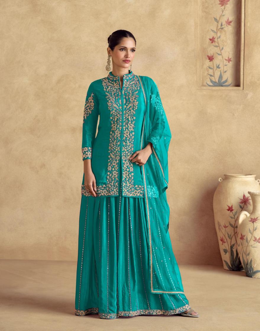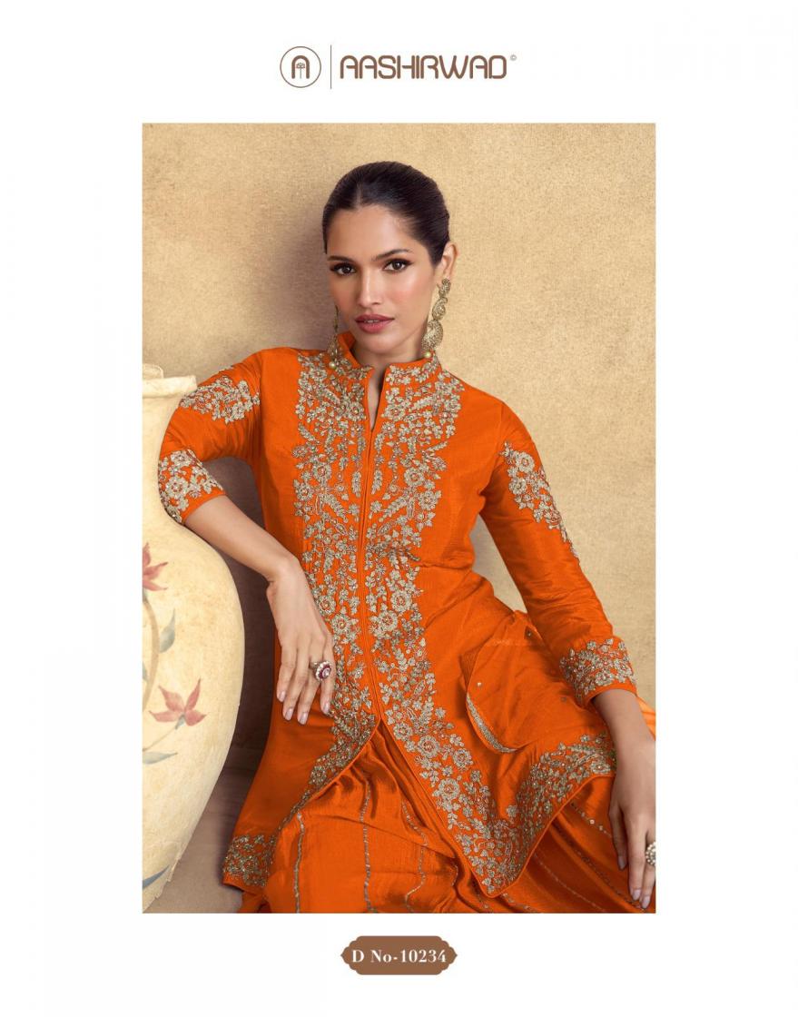 Looking for AASHIRWAD CREATION CHAKORI GOLD READYMADE CHINON SILK PLAZZO STYLE DRESS Full Catalouge at Best Price? Buy Now AASHIRWAD CREATION CHAKORI GOLD READYMADE CHINON SILK PLAZZO STYLE DRESS at Wholesale Rate of Rs 12475 with Total 5 Pcs from authroized dealer and supplier of Aashirwad Creation Brand. Cost of Each piece is just only Rs 2495 which is very low and affordable price to resale the product in your retail store. rrgandhi is Surat based Wholesale Supplier & Dealer of Aashirwad Creation Brand. Click on Brand name to Know more about Brand's products.