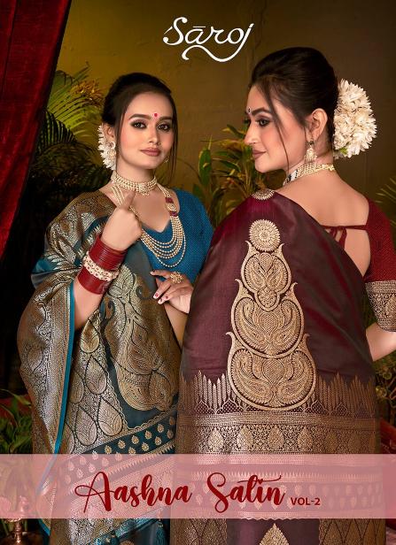 Looking for Aashna Satin Saroj vol.2 satin silk saree Full Catalouge at Best Price? Buy Now Aashna Satin Saroj vol.2 satin silk saree at Wholesale Rate of Rs 9810 with Total 6 Pcs from authroized dealer and supplier of Saroj Textiles Brand. Cost of Each piece is just only Rs 1635 which is very low and affordable price to resale the product in your retail store. rrgandhi is Surat based Wholesale Supplier & Dealer of Saroj Textiles Brand. Click on Brand name to Know more about Brand's products.