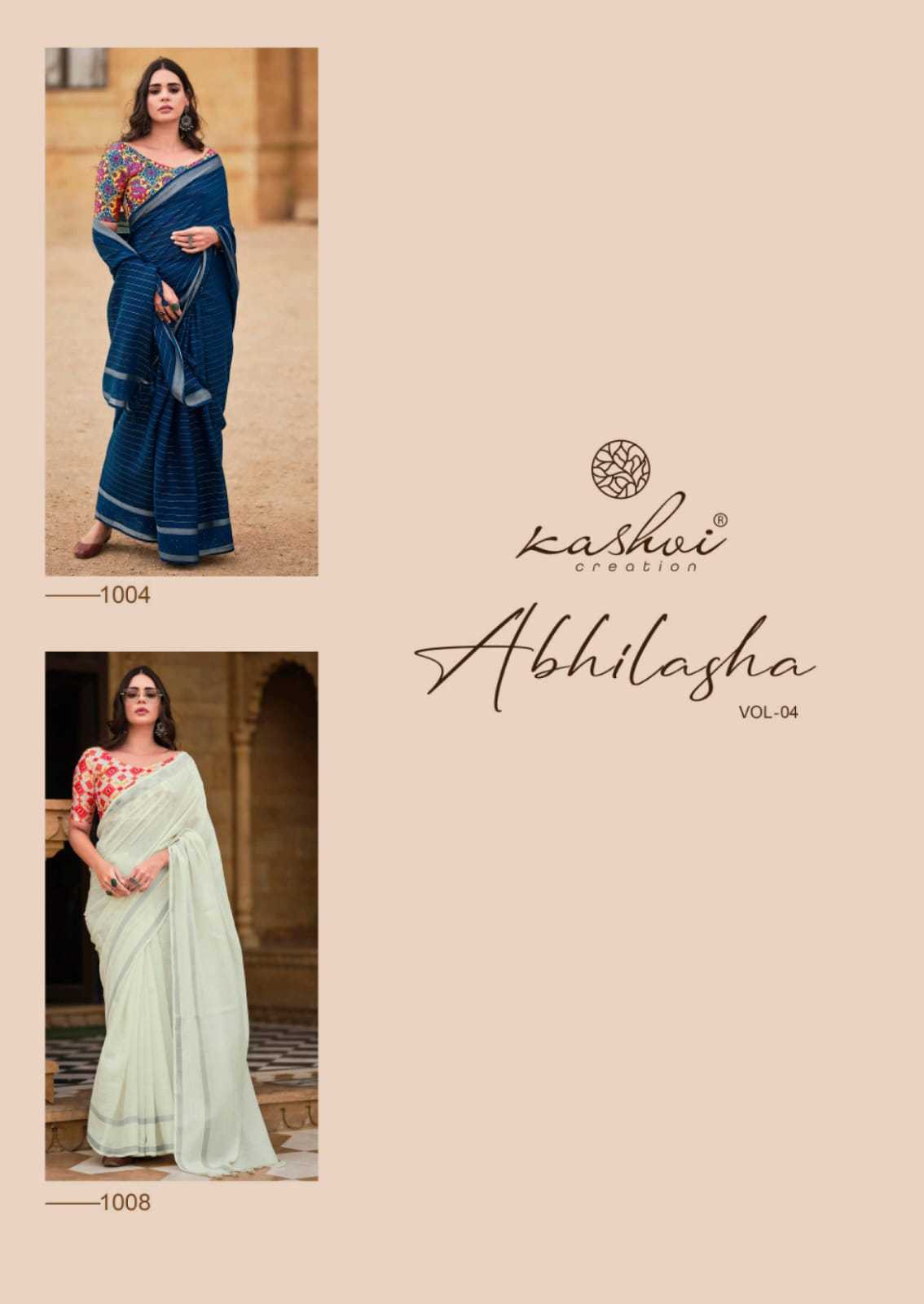 Looking for abhilasha vol 4 by kashvi creation stylish designer classy look saree with blouse Full Catalouge at Best Price? Buy Now abhilasha vol 4 by kashvi creation stylish designer classy look saree with blouse at Wholesale Rate of Rs 5080 with Total 8 Pcs from authroized dealer and supplier of Kashvi Creation Brand. Cost of Each piece is just only Rs 635 which is very low and affordable price to resale the product in your retail store. rrgandhi is Surat based Wholesale Supplier & Dealer of Kashvi Creation Brand. Click on Brand name to Know more about Brand's products.