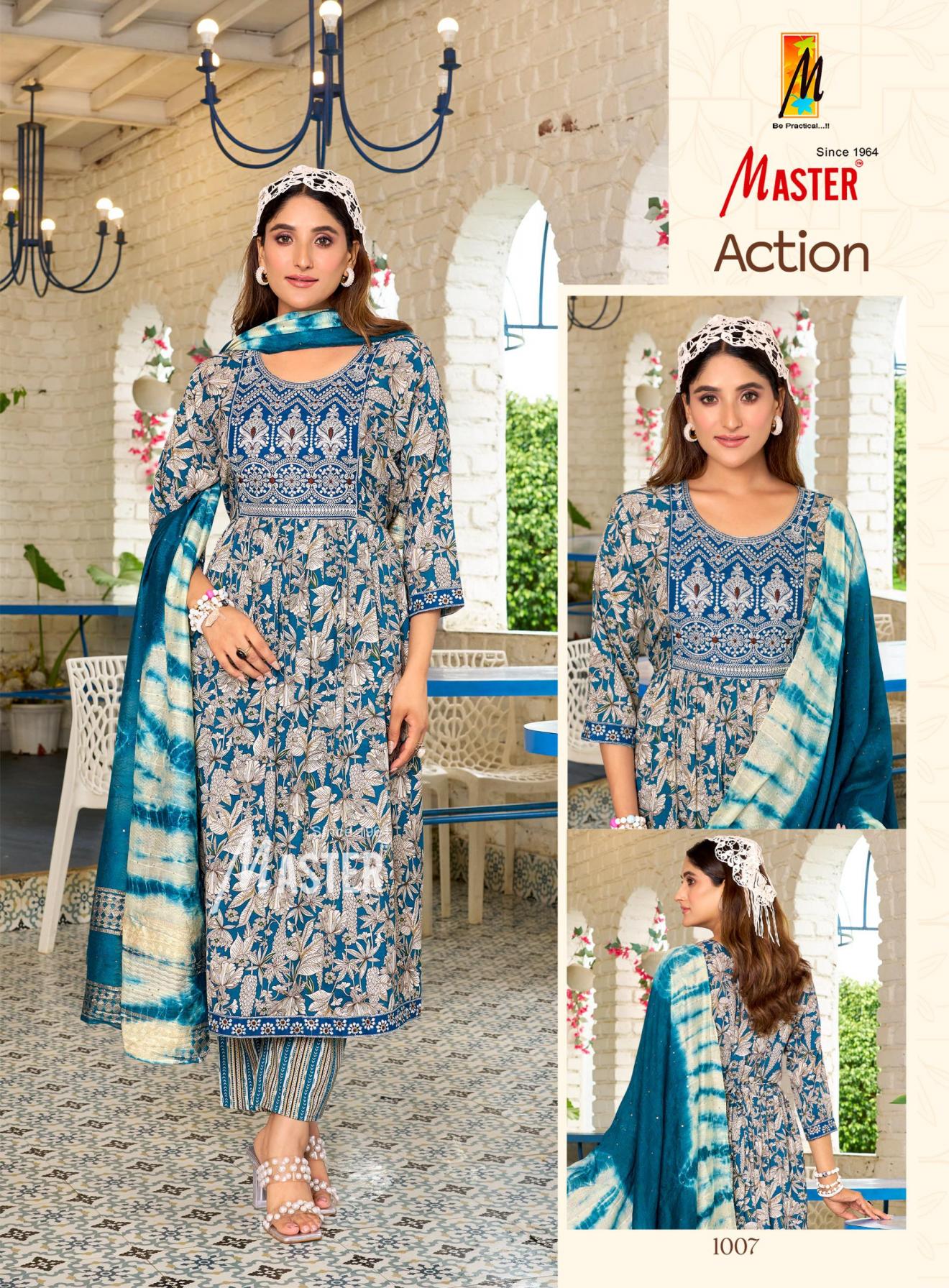 Looking for ACTION BY MASTER CAPSULE PRINT READYMADE DAILY WEAR 3PCS DRESS Full Catalouge at Best Price? Buy Now ACTION BY MASTER CAPSULE PRINT READYMADE DAILY WEAR 3PCS DRESS at Wholesale Rate of Rs 4800 with Total 8 Pcs from authroized dealer and supplier of Master Kurti Brand. Cost of Each piece is just only Rs 600 which is very low and affordable price to resale the product in your retail store. rrgandhi is Surat based Wholesale Supplier & Dealer of Master Kurti Brand. Click on Brand name to Know more about Brand's products.