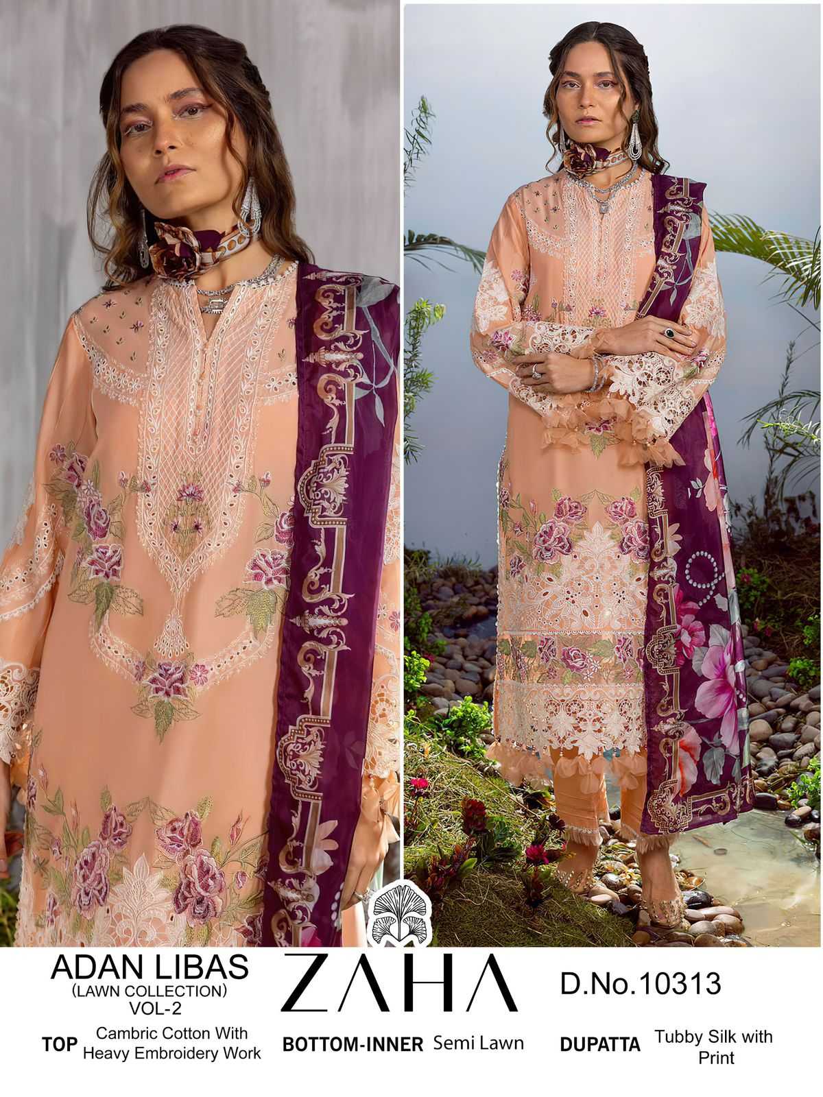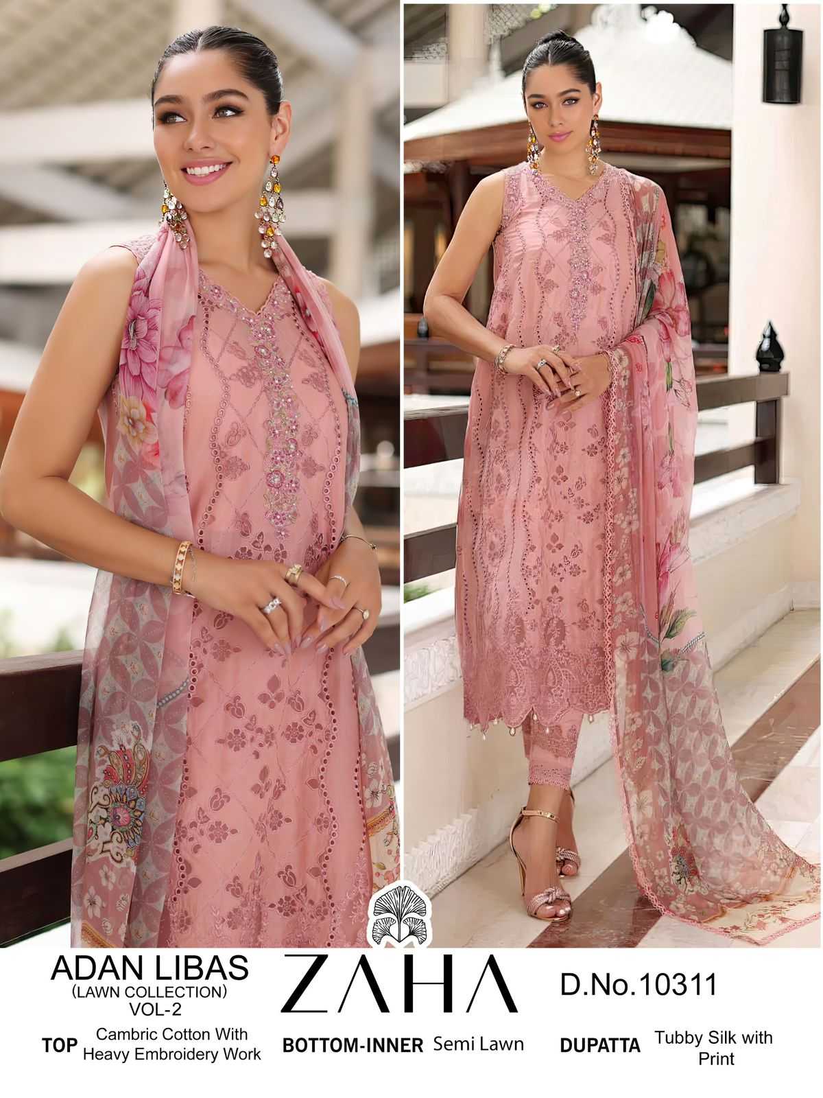 Looking for adan libas vol 2 by zaha ethnic style cambric cotton pakistani salwar suit Full Catalouge at Best Price? Buy Now adan libas vol 2 by zaha ethnic style cambric cotton pakistani salwar suit at Wholesale Rate of Rs 3597 with Total 3 Pcs from authroized dealer and supplier of Zaha Brand. Cost of Each piece is just only Rs 1199 which is very low and affordable price to resale the product in your retail store. rrgandhi is Surat based Wholesale Supplier & Dealer of Zaha Brand. Click on Brand name to Know more about Brand's products.