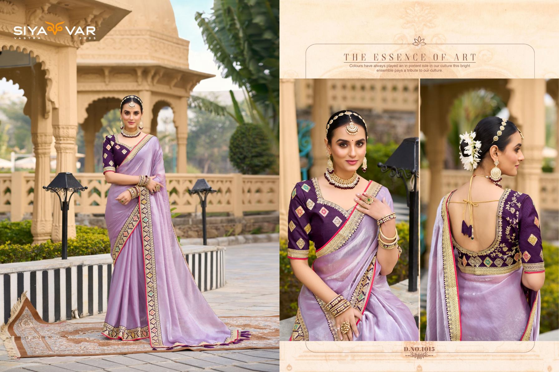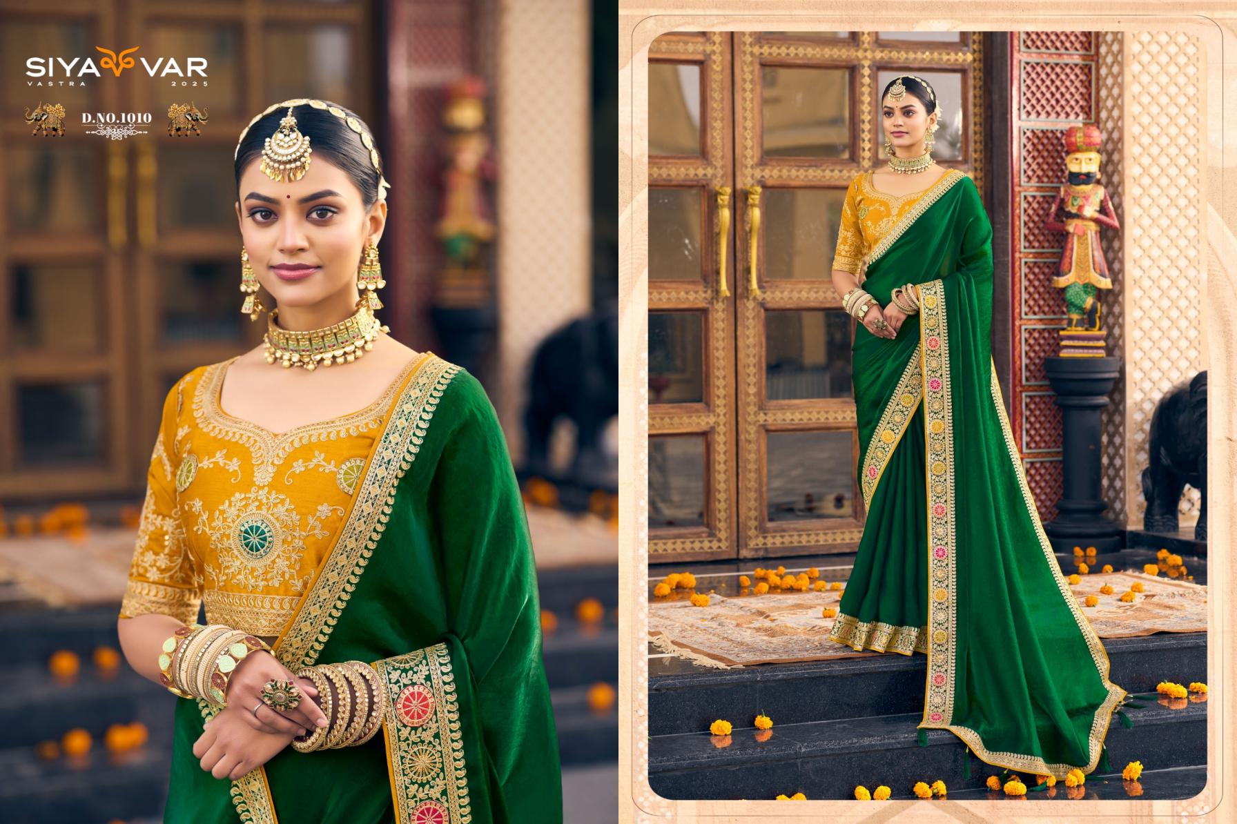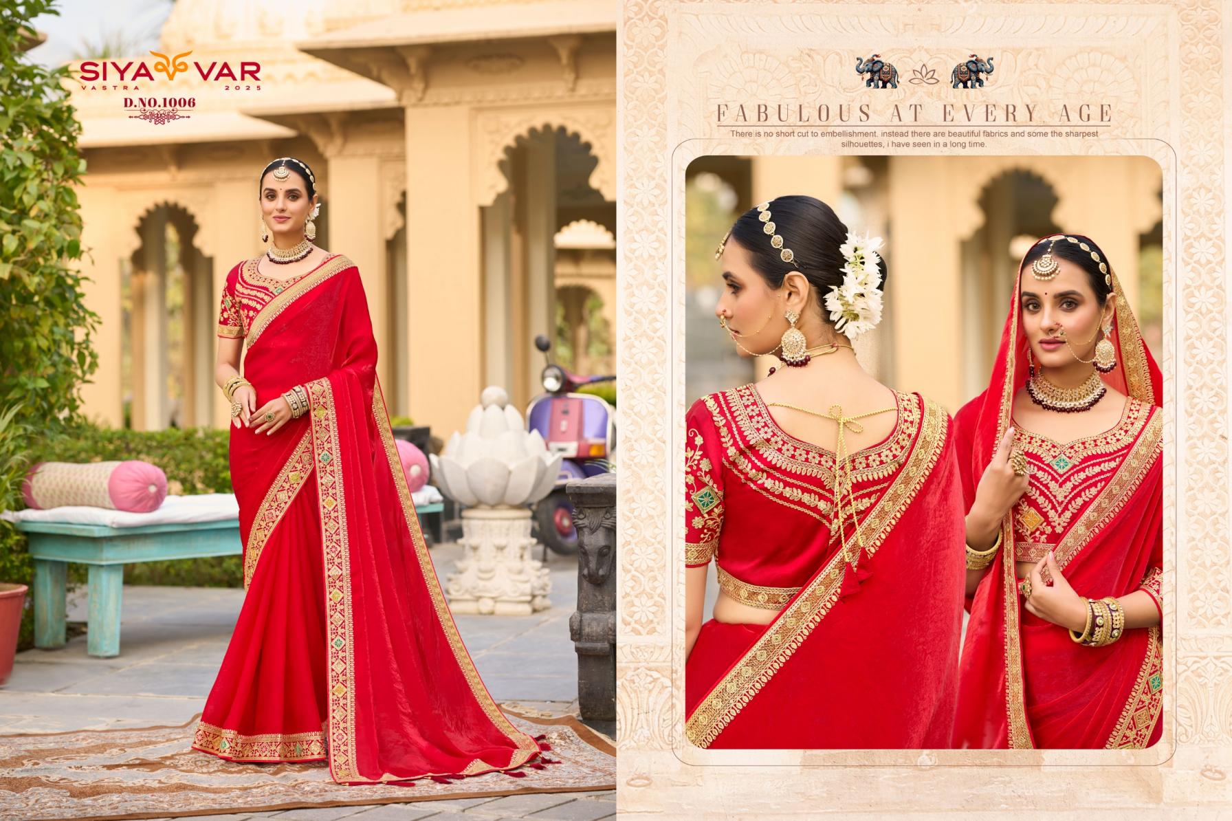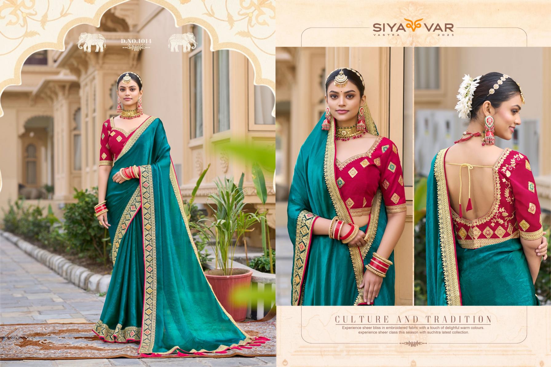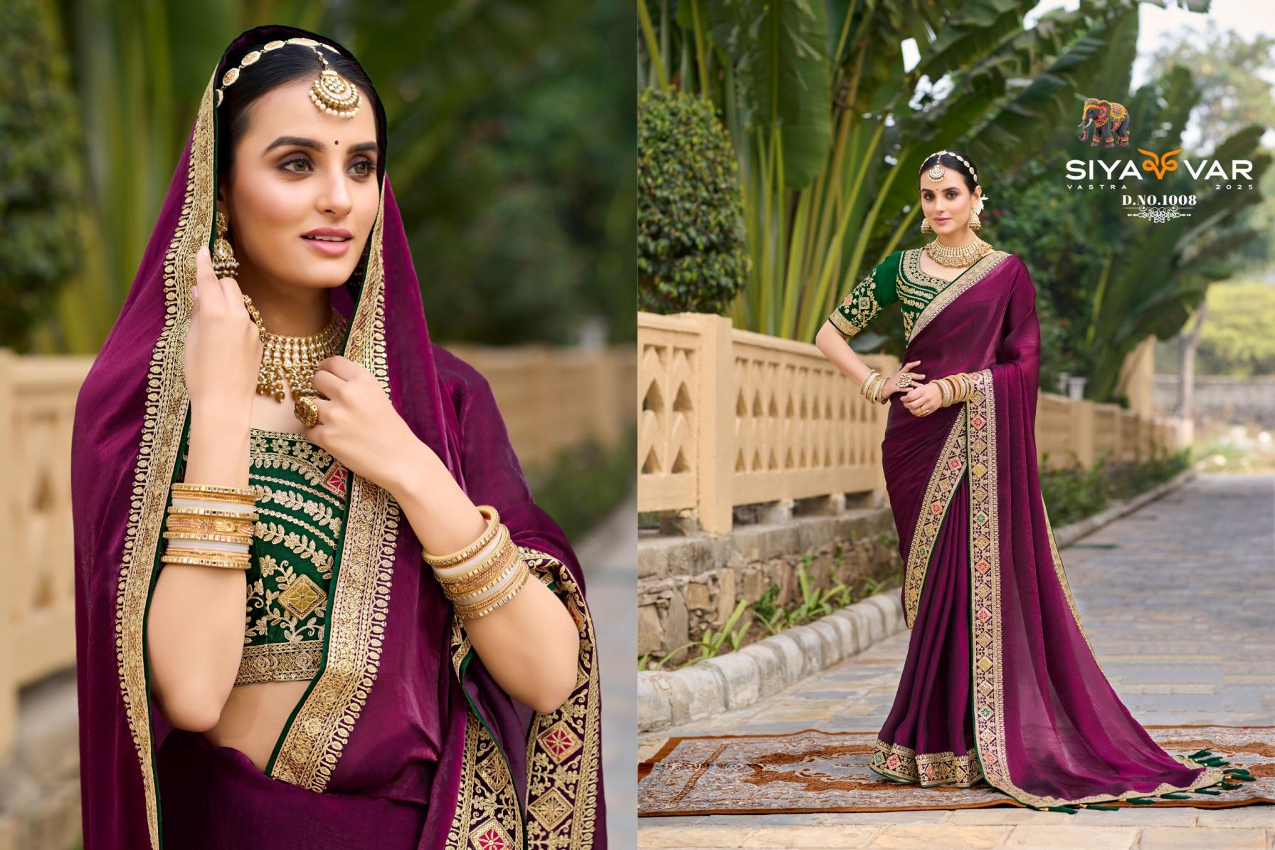 Looking for ADHYAY VOL 1 BY SIYA VAR 1001-1015 SERIES FENDI SATIN INDIAN TRADITIONAL SAREES Full Catalouge at Best Price? Buy Now ADHYAY VOL 1 BY SIYA VAR 1001-1015 SERIES FENDI SATIN INDIAN TRADITIONAL SAREES at Wholesale Rate of Rs 22125 with Total 15 Pcs from authroized dealer and supplier of siya var Brand. Cost of Each piece is just only Rs 1475 which is very low and affordable price to resale the product in your retail store. rrgandhi is Surat based Wholesale Supplier & Dealer of siya var Brand. Click on Brand name to Know more about Brand's products.