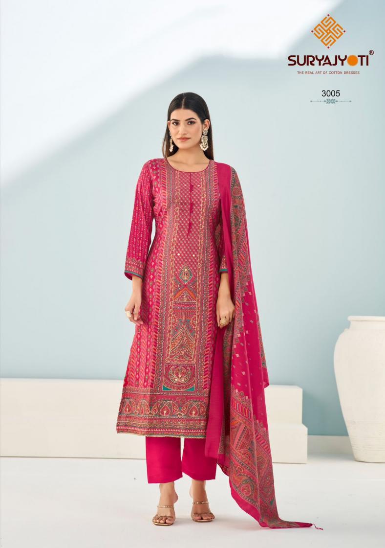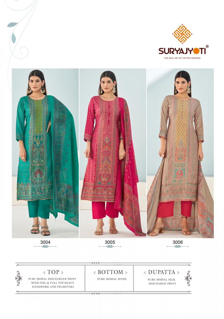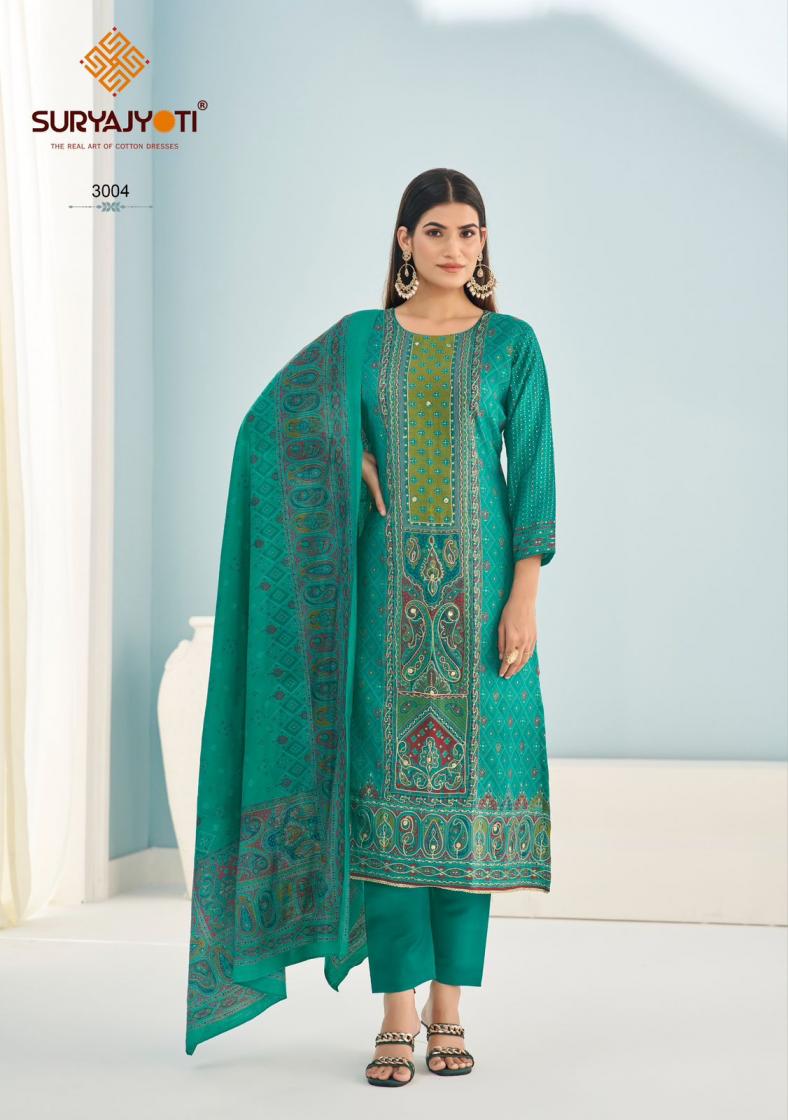 Looking for ADVANCE VOL 3 BY PAYAL SURYAJYOTI MODAL UNSTITCH 3PCS DRESS Full Catalouge at Best Price? Buy Now ADVANCE VOL 3 BY PAYAL SURYAJYOTI MODAL UNSTITCH 3PCS DRESS at Wholesale Rate of Rs 4830 with Total 6 Pcs from authroized dealer and supplier of Suryajyoti Cotton Brand. Cost of Each piece is just only Rs 805 which is very low and affordable price to resale the product in your retail store. rrgandhi is Surat based Wholesale Supplier & Dealer of Suryajyoti Cotton Brand. Click on Brand name to Know more about Brand's products.