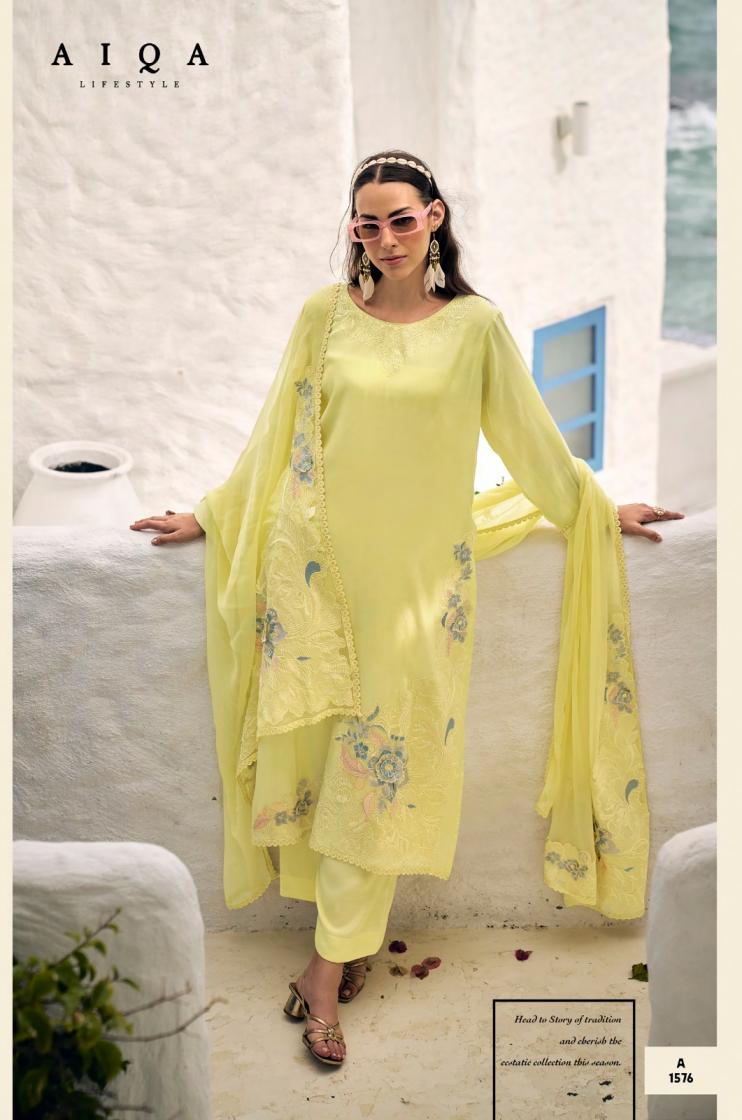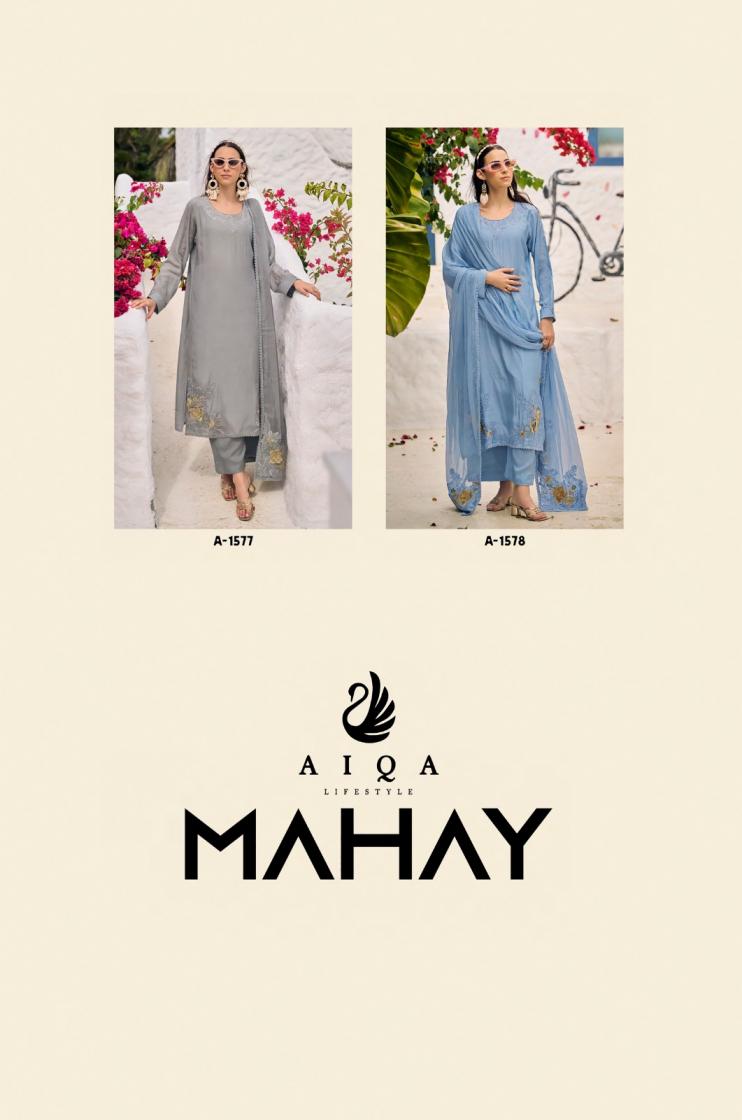 Looking for AIQA LIFESTYLE MAHAY BERG MUSLINE SILK UNTSITCH 3PCS DRESS Full Catalouge at Best Price? Buy Now AIQA LIFESTYLE MAHAY BERG MUSLINE SILK UNTSITCH 3PCS DRESS at Wholesale Rate of Rs 14526 with Total 6 Pcs from authroized dealer and supplier of Aiqa Lifestyle Brand. Cost of Each piece is just only Rs 2421 which is very low and affordable price to resale the product in your retail store. rrgandhi is Surat based Wholesale Supplier & Dealer of Aiqa Lifestyle Brand. Click on Brand name to Know more about Brand's products.