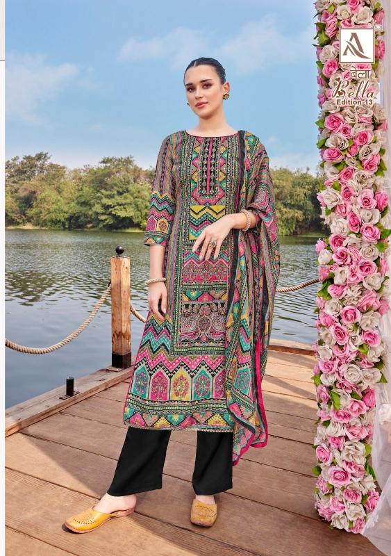 Looking for alok bella vol 13 hit desiogn muslin pakistani dress material Full Catalouge at Best Price? Buy Now alok bella vol 13 hit desiogn muslin pakistani dress material at Wholesale Rate of Rs 4146 with Total 6 Pcs from authroized dealer and supplier of Alok Suit Brand. Cost of Each piece is just only Rs 691 which is very low and affordable price to resale the product in your retail store. rrgandhi is Surat based Wholesale Supplier & Dealer of Alok Suit Brand. Click on Brand name to Know more about Brand's products.