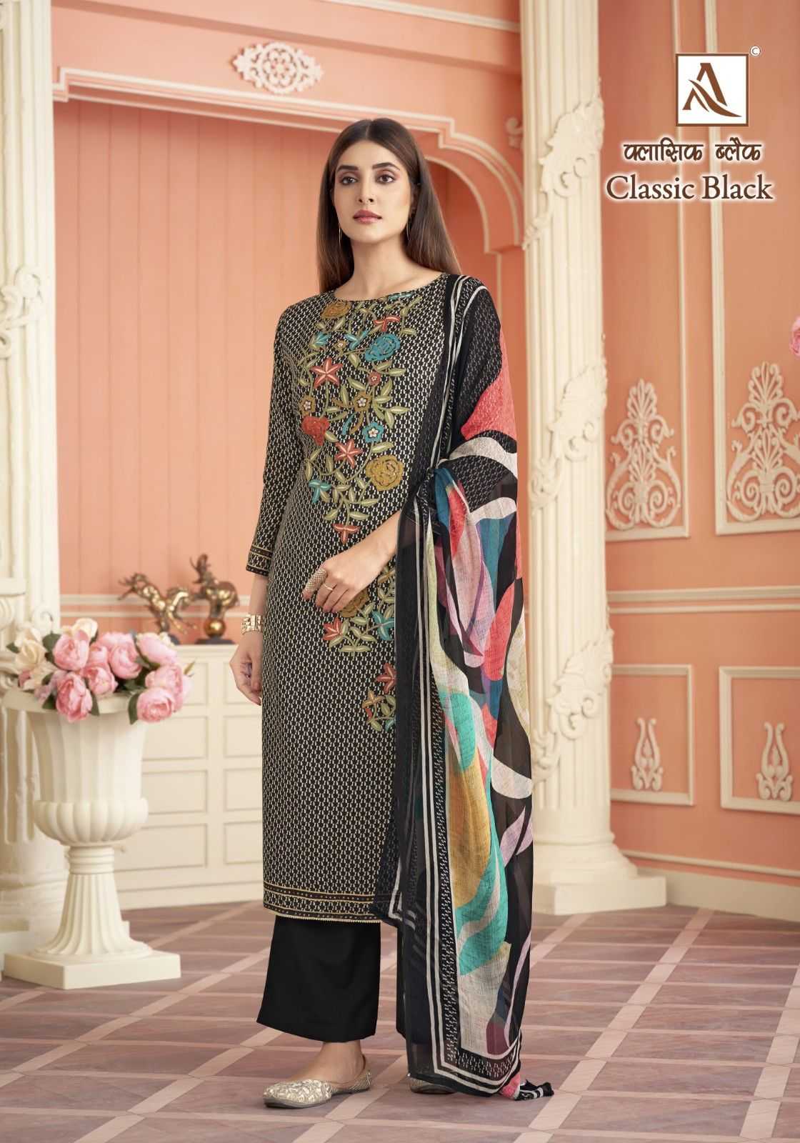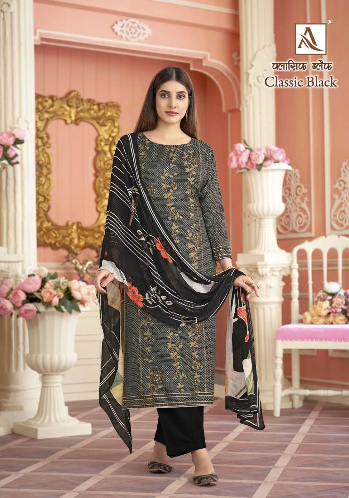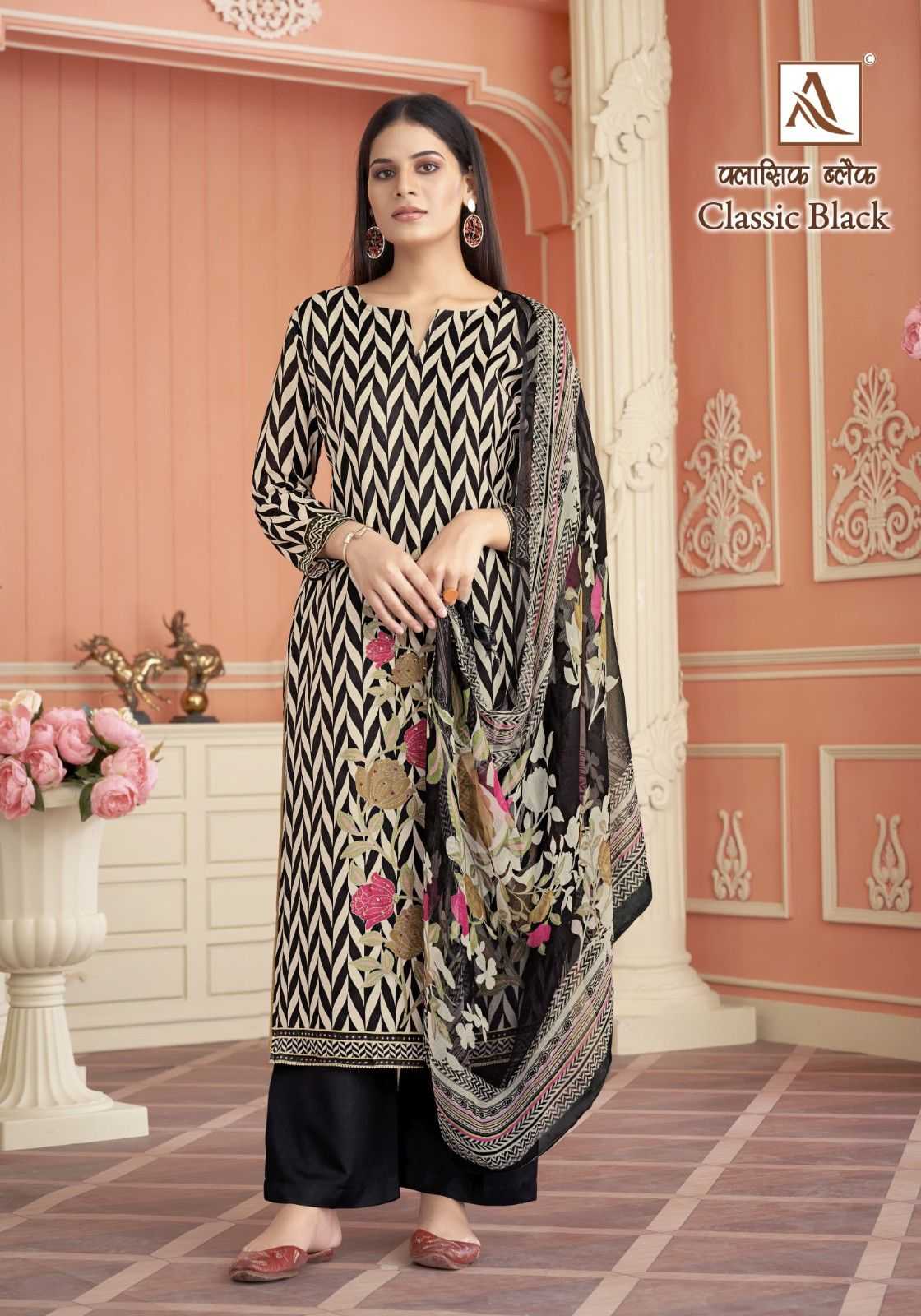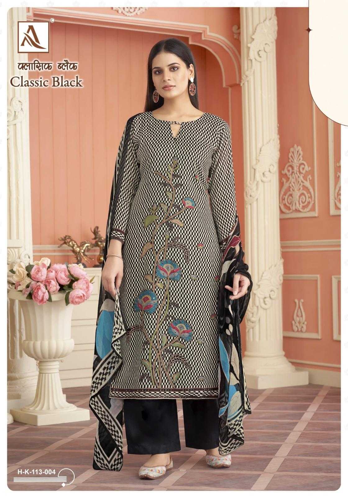 Looking for alok classic black muslin digital print modern pakistani 3pcs dress Full Catalouge at Best Price? Buy Now alok classic black muslin digital print modern pakistani 3pcs dress at Wholesale Rate of Rs 3804 with Total 4 Pcs from authroized dealer and supplier of Alok Suit Brand. Cost of Each piece is just only Rs 951 which is very low and affordable price to resale the product in your retail store. rrgandhi is Surat based Wholesale Supplier & Dealer of Alok Suit Brand. Click on Brand name to Know more about Brand's products.