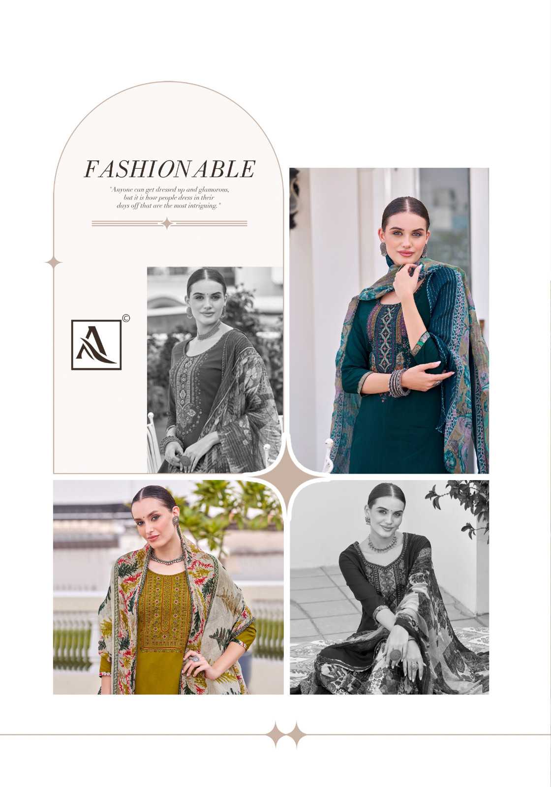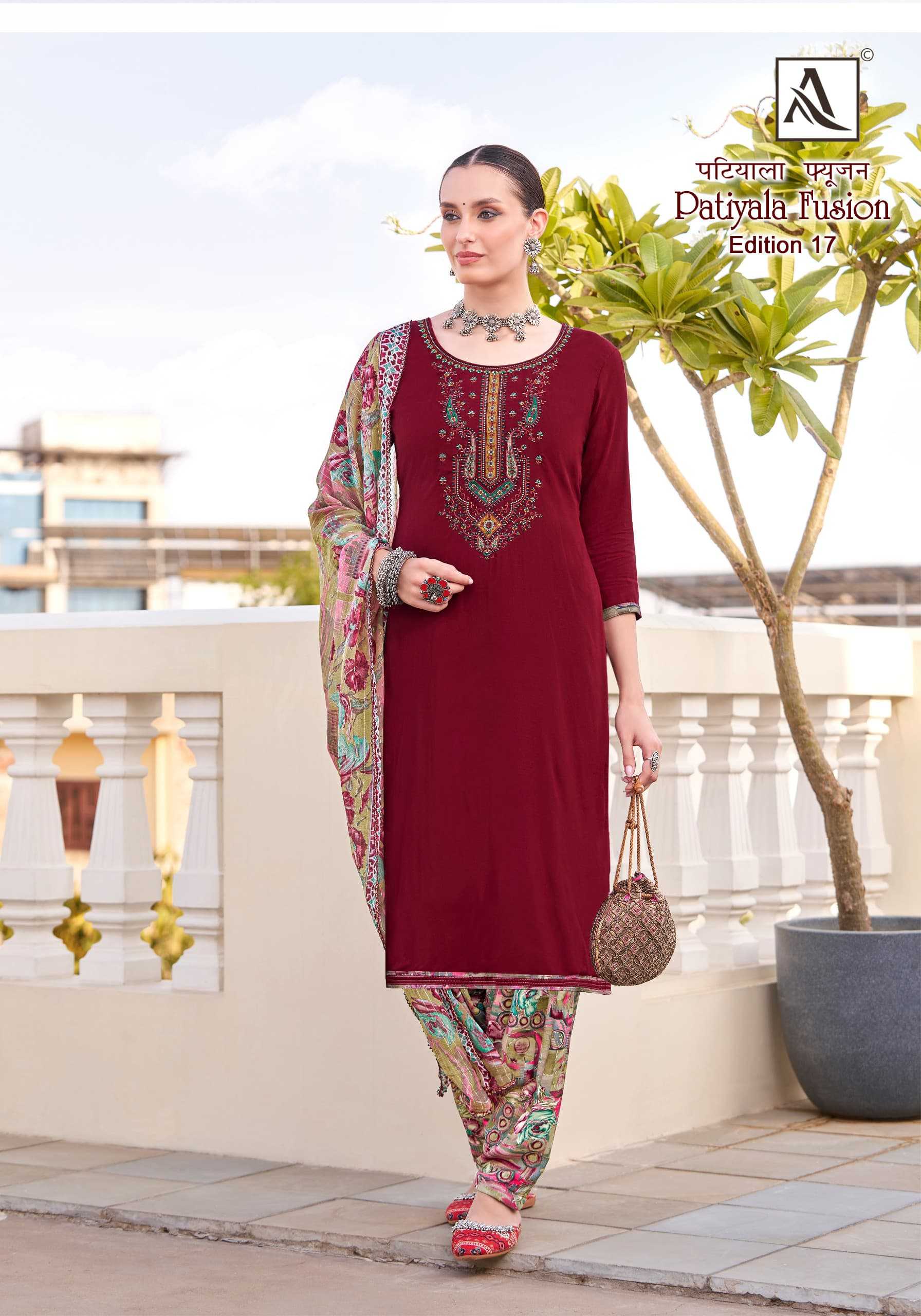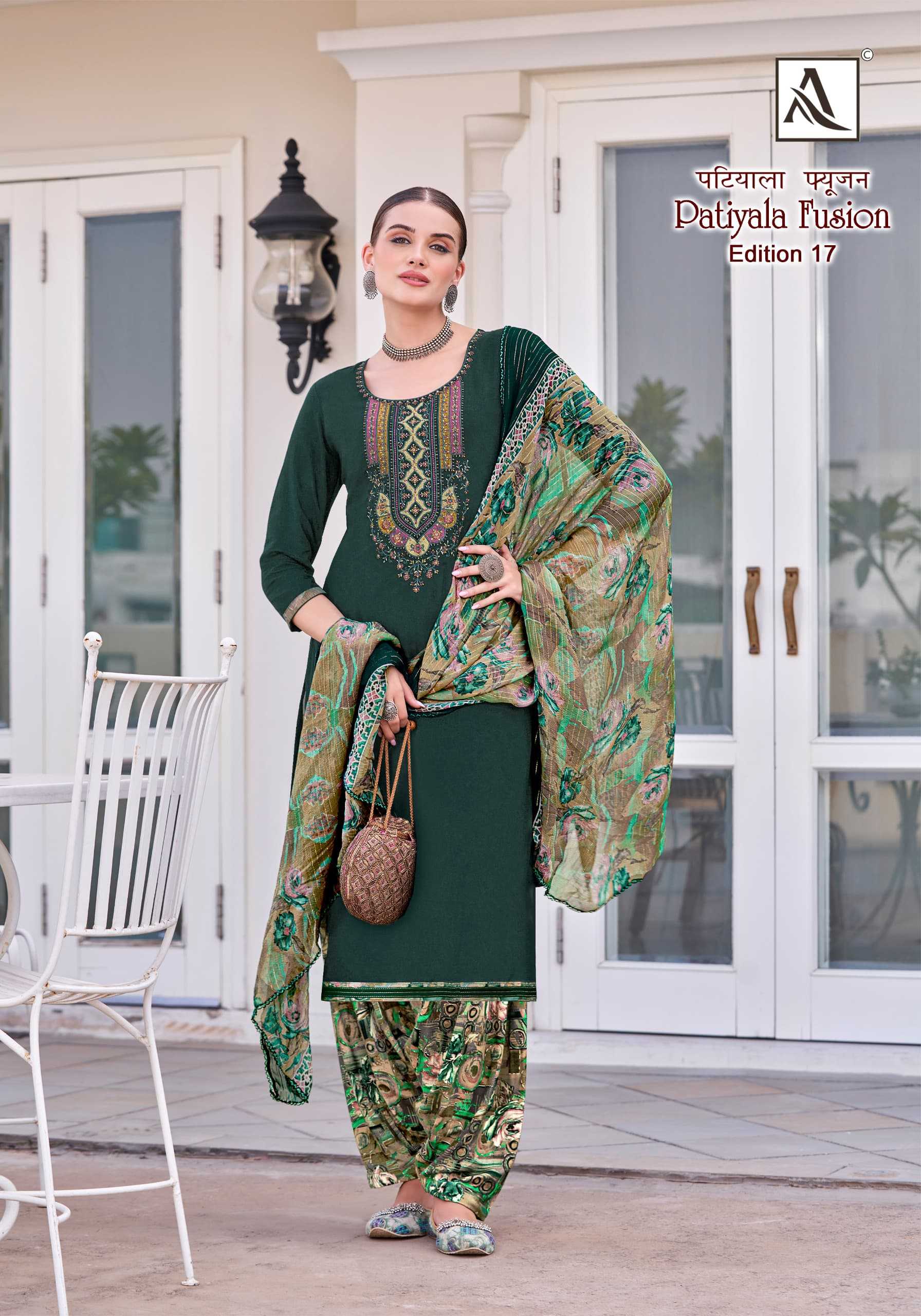 Looking for alok presents patiyala fusion vol 17 super hit swarovski work saree exports Full Catalouge at Best Price? Buy Now alok presents patiyala fusion vol 17 super hit swarovski work saree exports at Wholesale Rate of Rs 5592 with Total 8 Pcs from authroized dealer and supplier of Alok Suit Brand. Cost of Each piece is just only Rs 699 which is very low and affordable price to resale the product in your retail store. rrgandhi is Surat based Wholesale Supplier & Dealer of Alok Suit Brand. Click on Brand name to Know more about Brand's products.