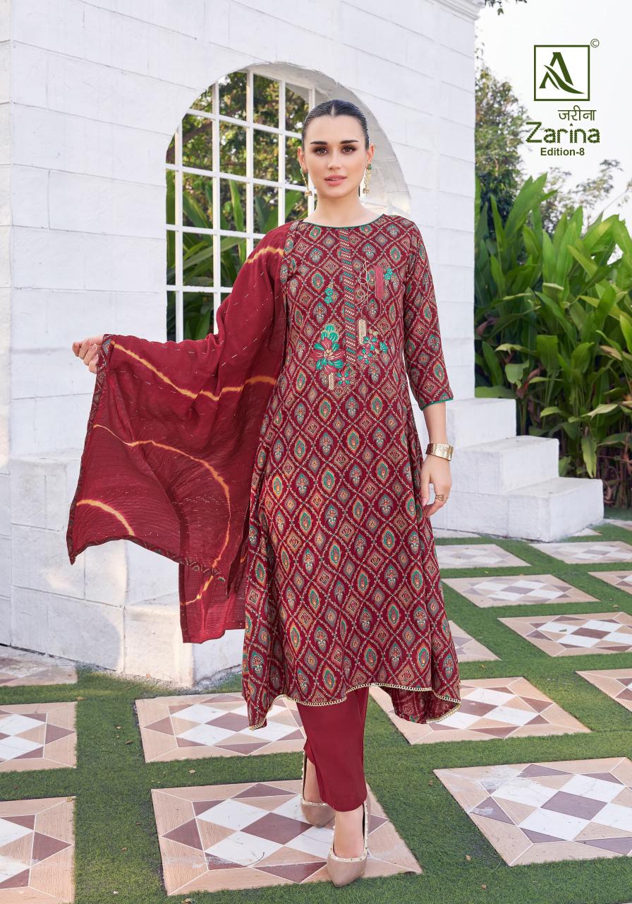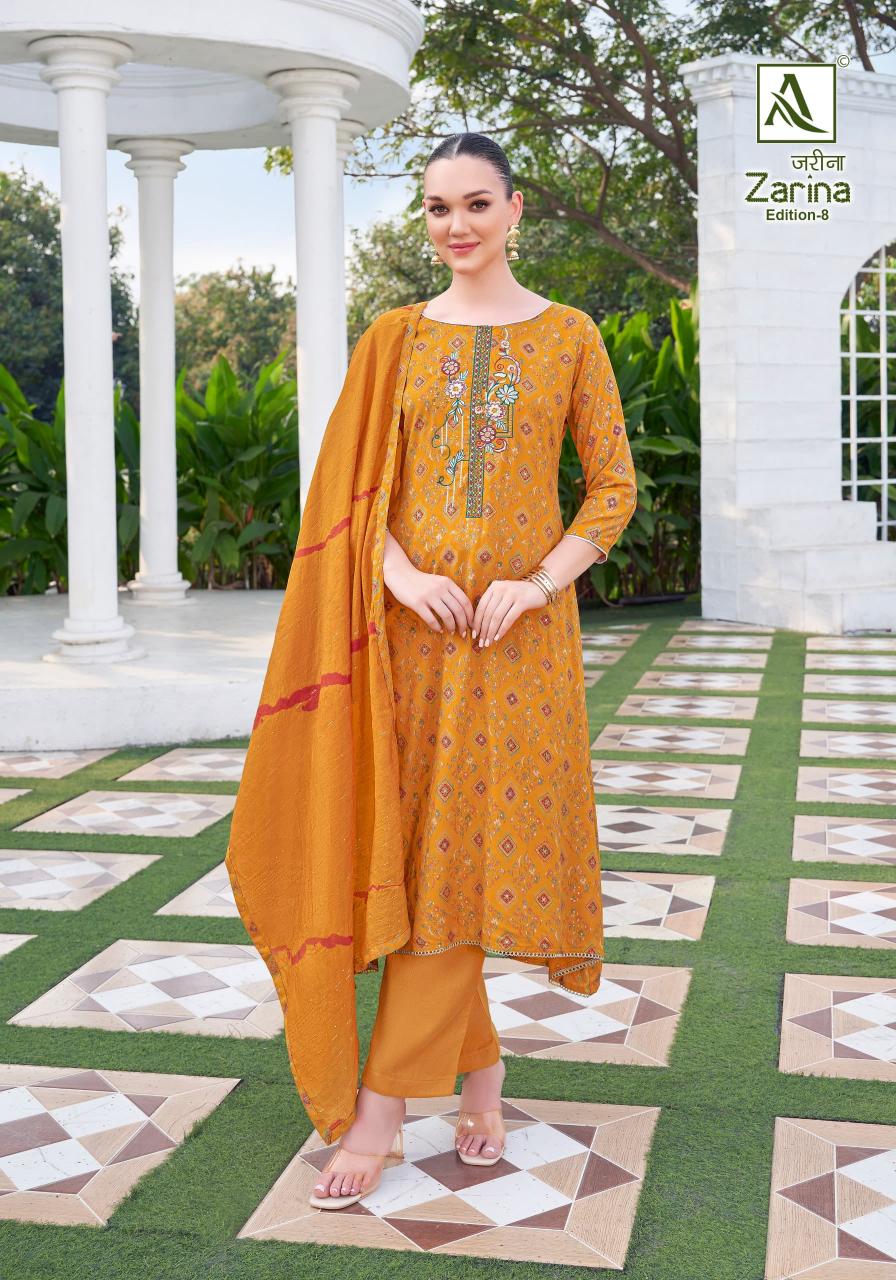 Looking for alok presents zarina vol 8 viscose rayon modern pakistani 3pcs dress Full Catalouge at Best Price? Buy Now alok presents zarina vol 8 viscose rayon modern pakistani 3pcs dress at Wholesale Rate of Rs 4194 with Total 6 Pcs from authroized dealer and supplier of Alok Suit Brand. Cost of Each piece is just only Rs 699 which is very low and affordable price to resale the product in your retail store. rrgandhi is Surat based Wholesale Supplier & Dealer of Alok Suit Brand. Click on Brand name to Know more about Brand's products.