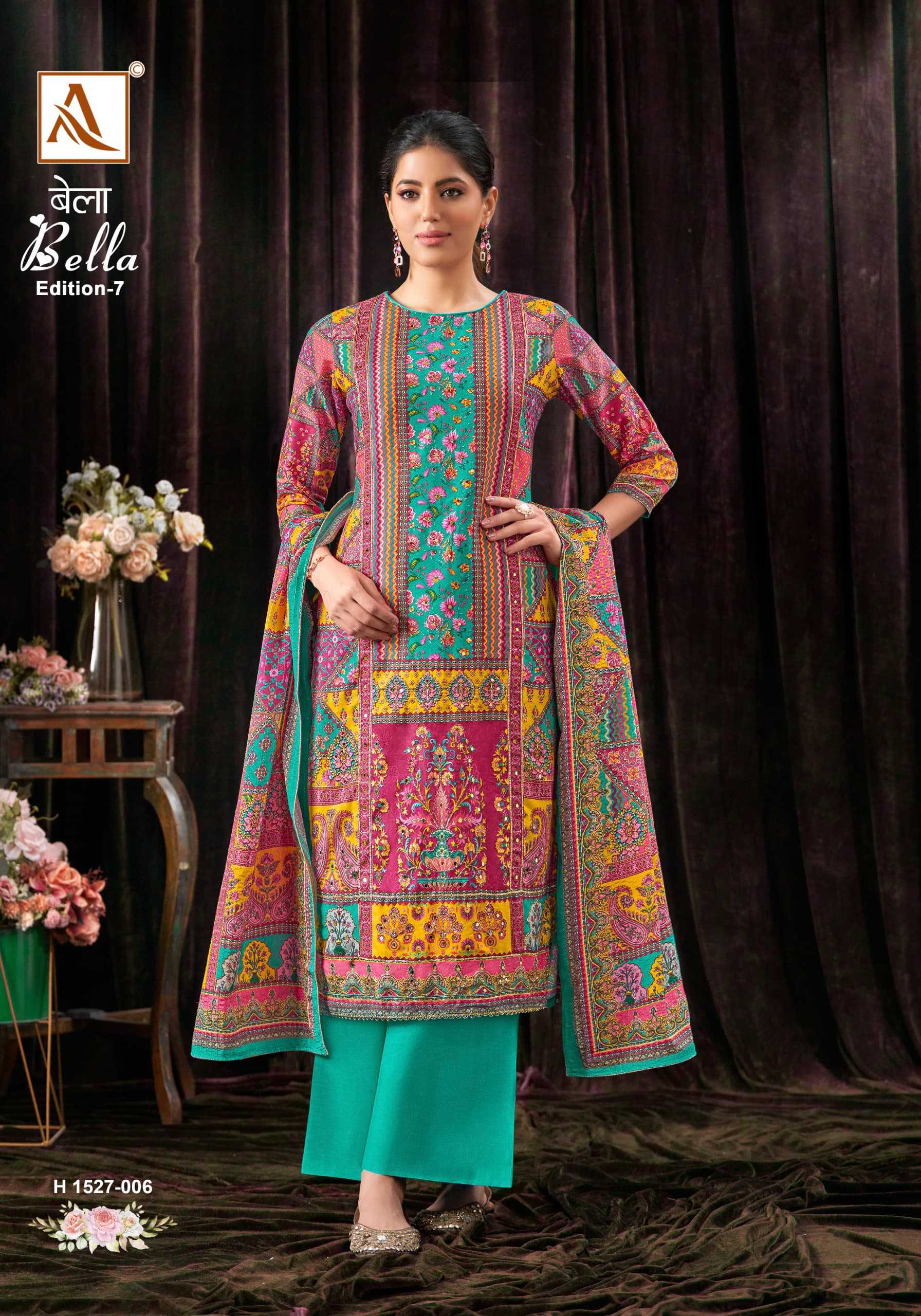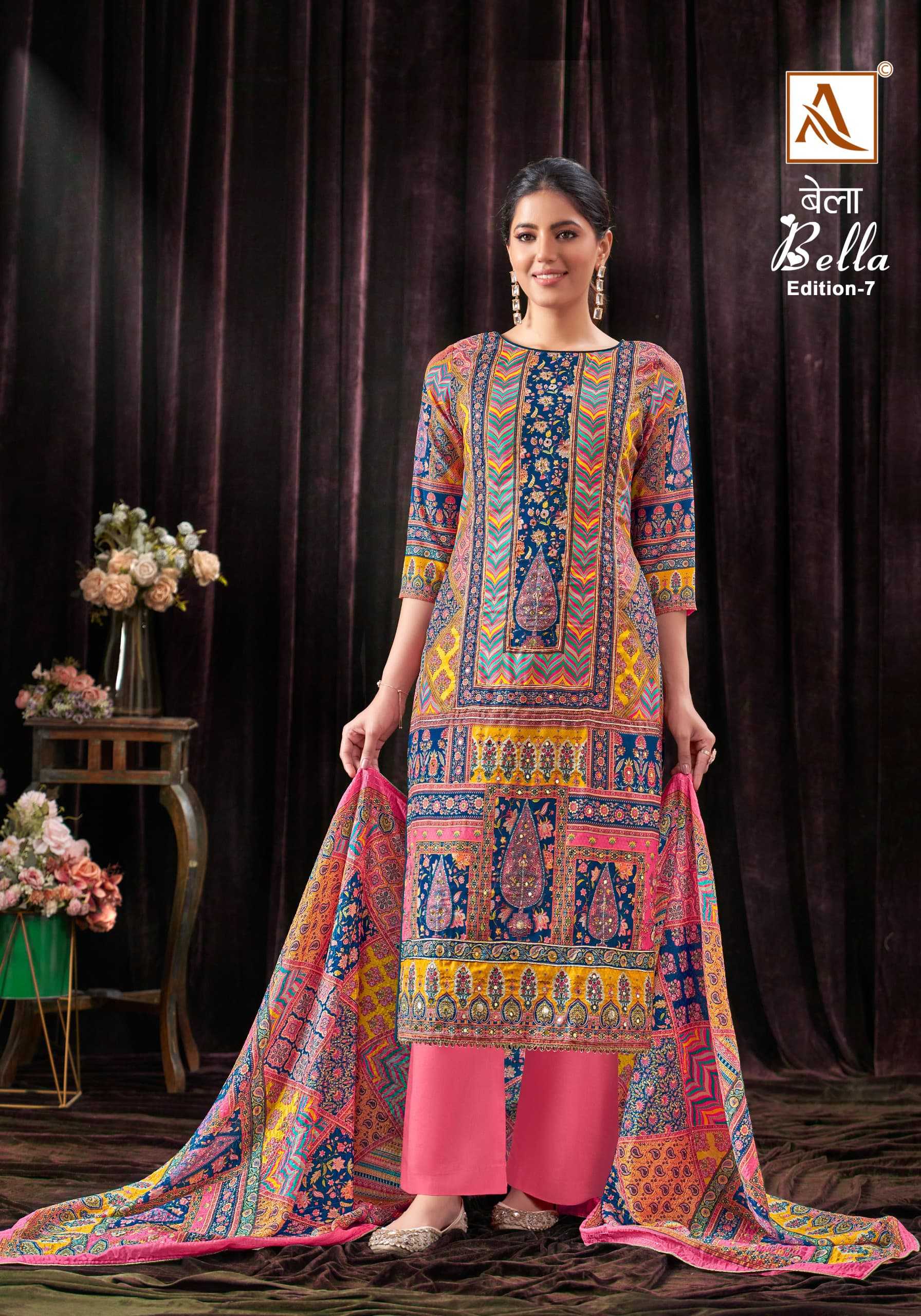 Looking for alok suit bella vol 7 new launch simple maslin pakistani style salwar kameez Full Catalouge at Best Price? Buy Now alok suit bella vol 7 new launch simple maslin pakistani style salwar kameez at Wholesale Rate of Rs 4146 with Total 6 Pcs from authroized dealer and supplier of Alok Suit Brand. Cost of Each piece is just only Rs 691 which is very low and affordable price to resale the product in your retail store. rrgandhi is Surat based Wholesale Supplier & Dealer of Alok Suit Brand. Click on Brand name to Know more about Brand's products.