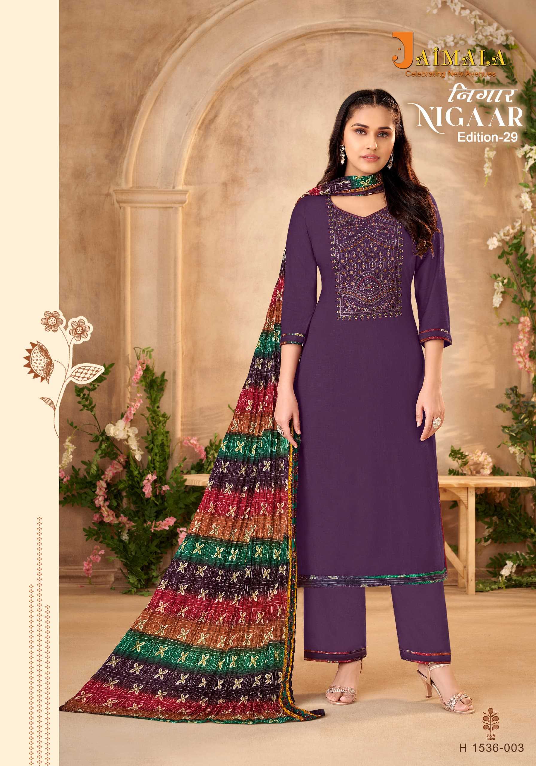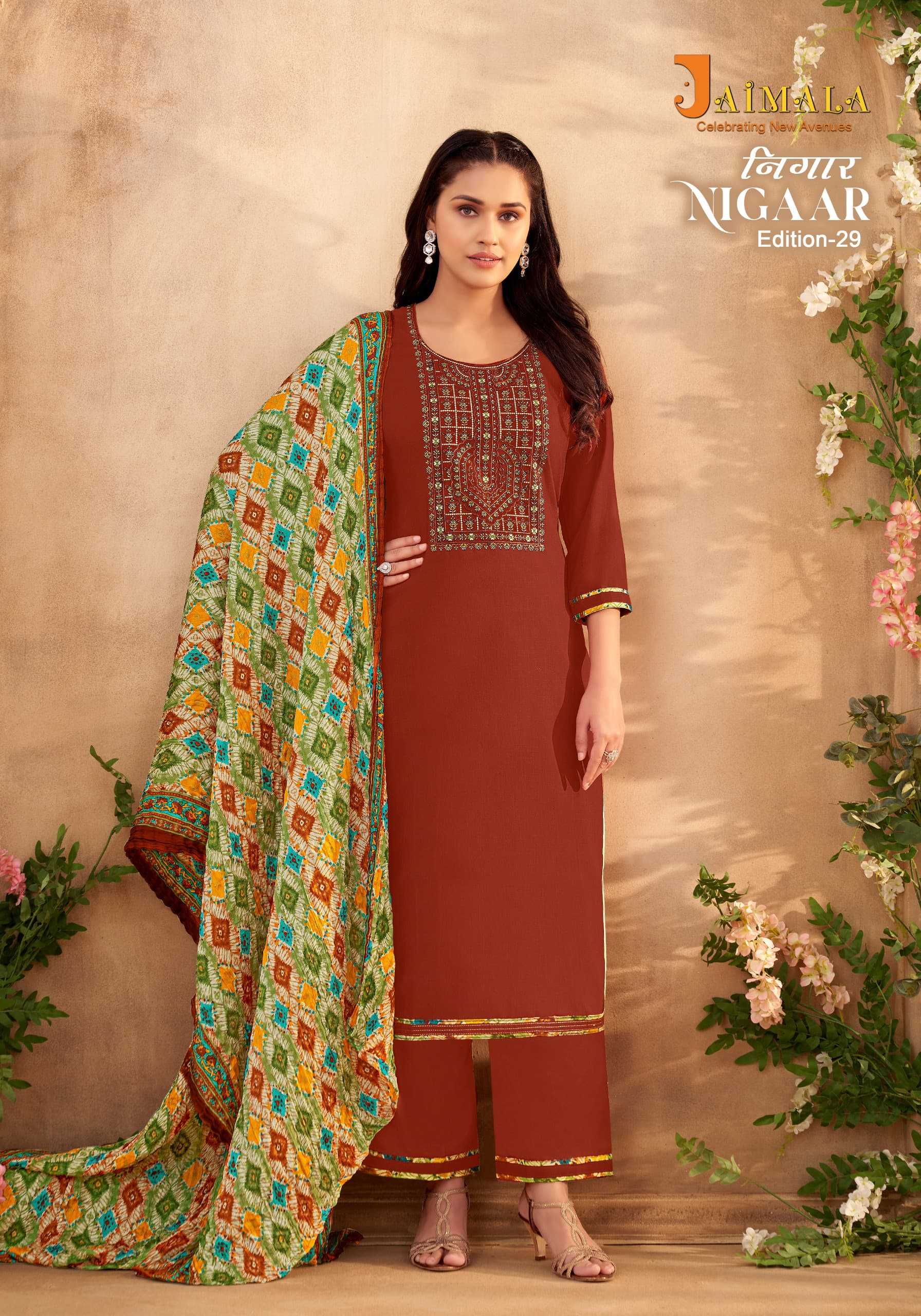 Looking for alok suit nigaar 29 rayon hit design embroidery swarovski work salwar kameez Full Catalouge at Best Price? Buy Now alok suit nigaar 29 rayon hit design embroidery swarovski work salwar kameez at Wholesale Rate of Rs 4792 with Total 8 Pcs from authroized dealer and supplier of Alok Suit Brand. Cost of Each piece is just only Rs 599 which is very low and affordable price to resale the product in your retail store. rrgandhi is Surat based Wholesale Supplier & Dealer of Alok Suit Brand. Click on Brand name to Know more about Brand's products.