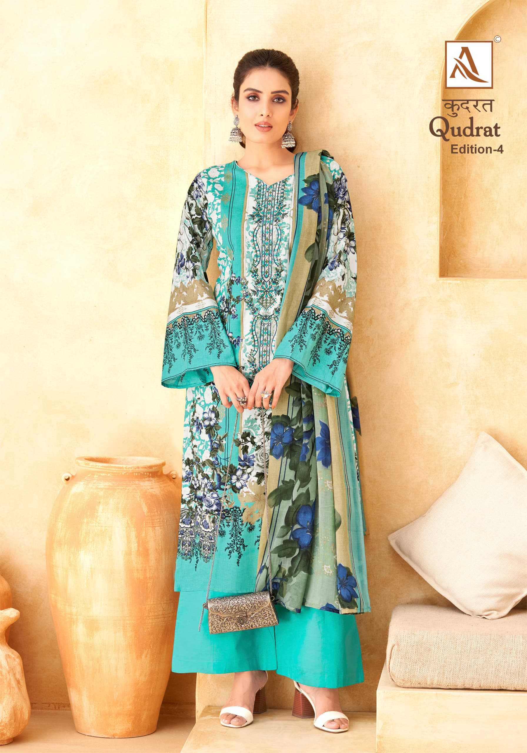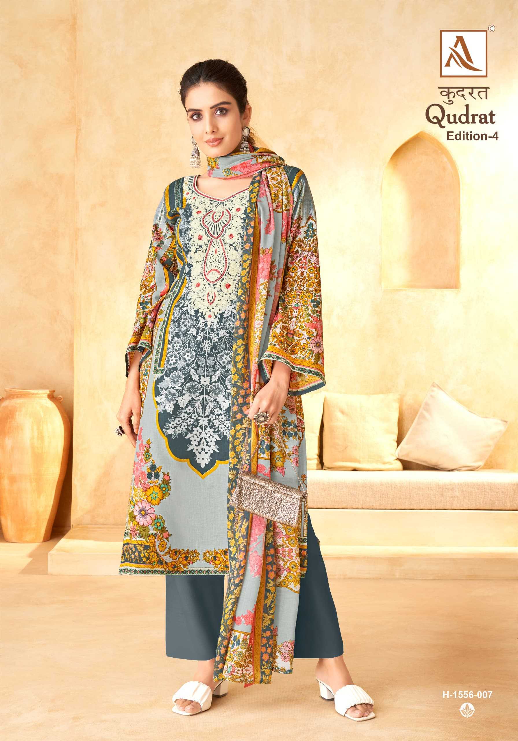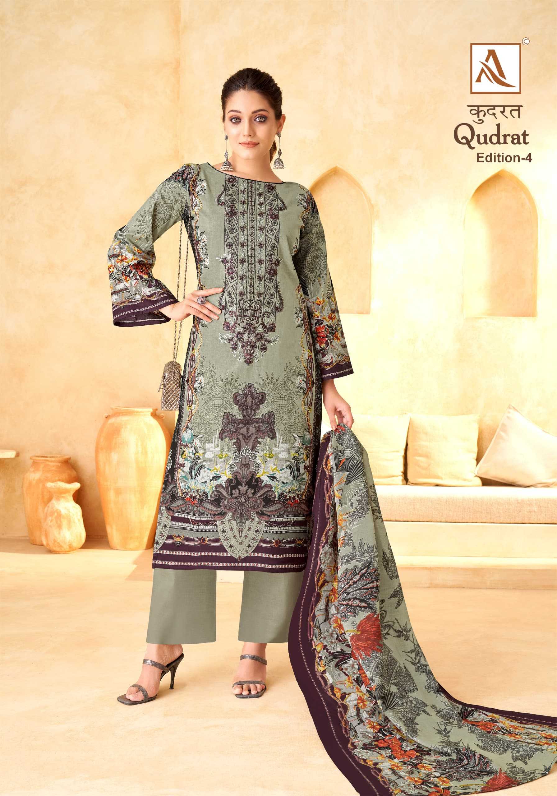 Looking for alok suit presents qudrat vol 4 hit fancy modern pakistani salwar suit exports Full Catalouge at Best Price? Buy Now alok suit presents qudrat vol 4 hit fancy modern pakistani salwar suit exports at Wholesale Rate of Rs 4720 with Total 8 Pcs from authroized dealer and supplier of Alok Suit Brand. Cost of Each piece is just only Rs 590 which is very low and affordable price to resale the product in your retail store. rrgandhi is Surat based Wholesale Supplier & Dealer of Alok Suit Brand. Click on Brand name to Know more about Brand's products.