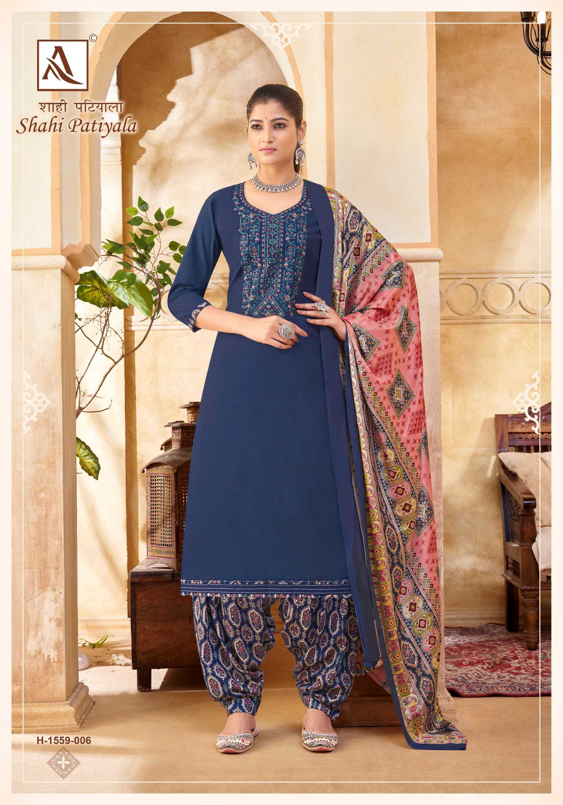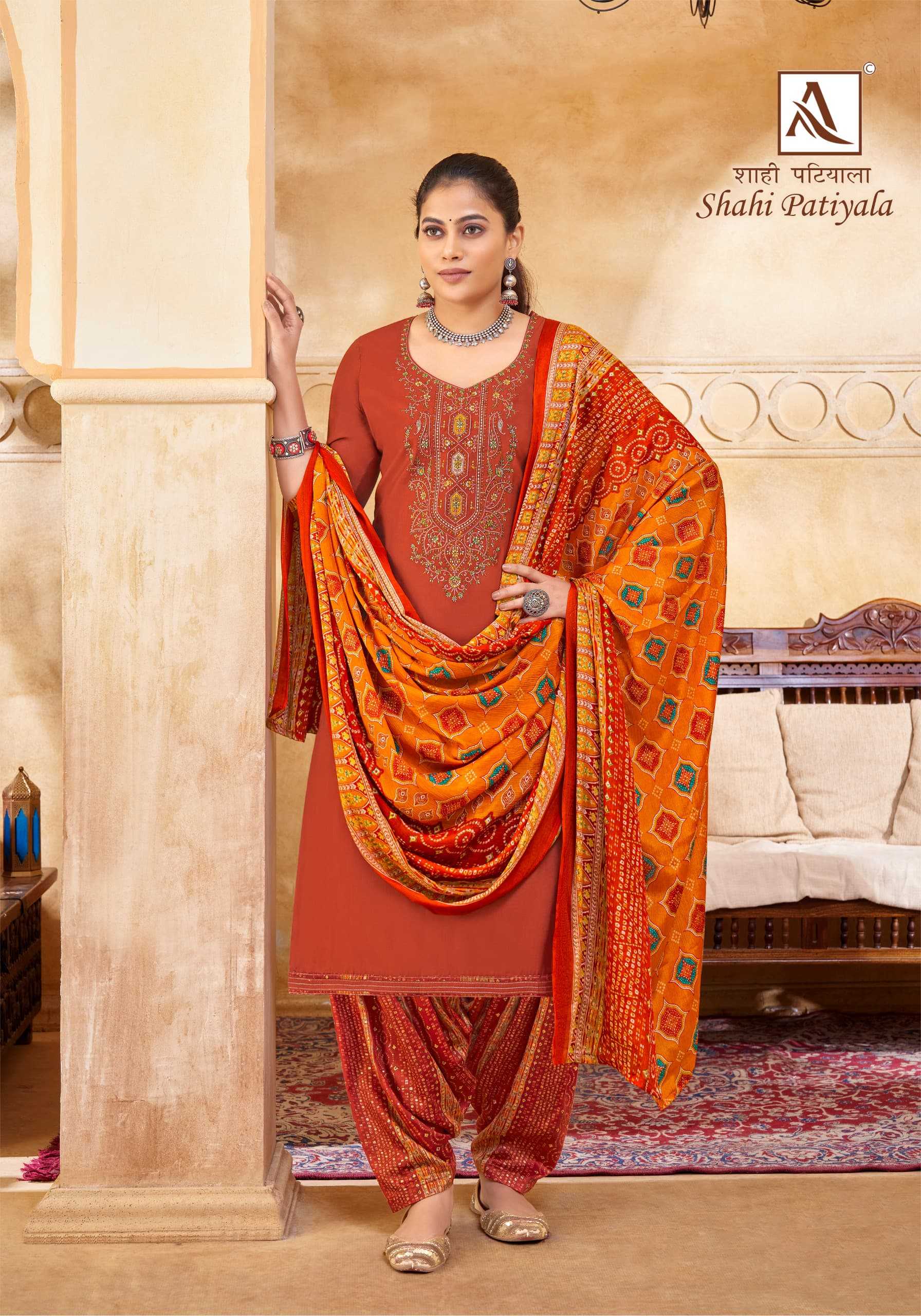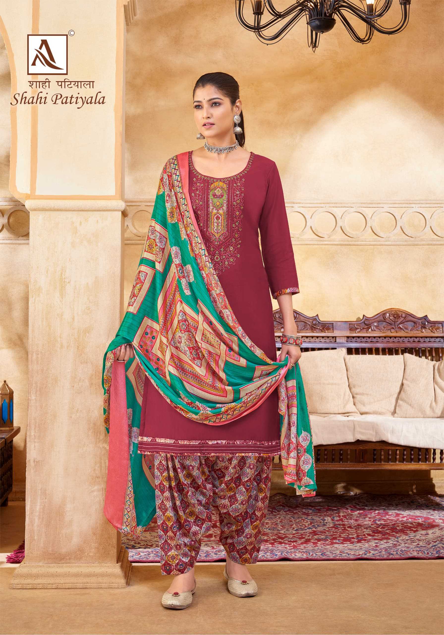 Looking for alok suit presents shahi patiyala launch embellished viscose salwar suit exports Full Catalouge at Best Price? Buy Now alok suit presents shahi patiyala launch embellished viscose salwar suit exports at Wholesale Rate of Rs 5990 with Total 10 Pcs from authroized dealer and supplier of Alok Suit Brand. Cost of Each piece is just only Rs 599 which is very low and affordable price to resale the product in your retail store. rrgandhi is Surat based Wholesale Supplier & Dealer of Alok Suit Brand. Click on Brand name to Know more about Brand's products.